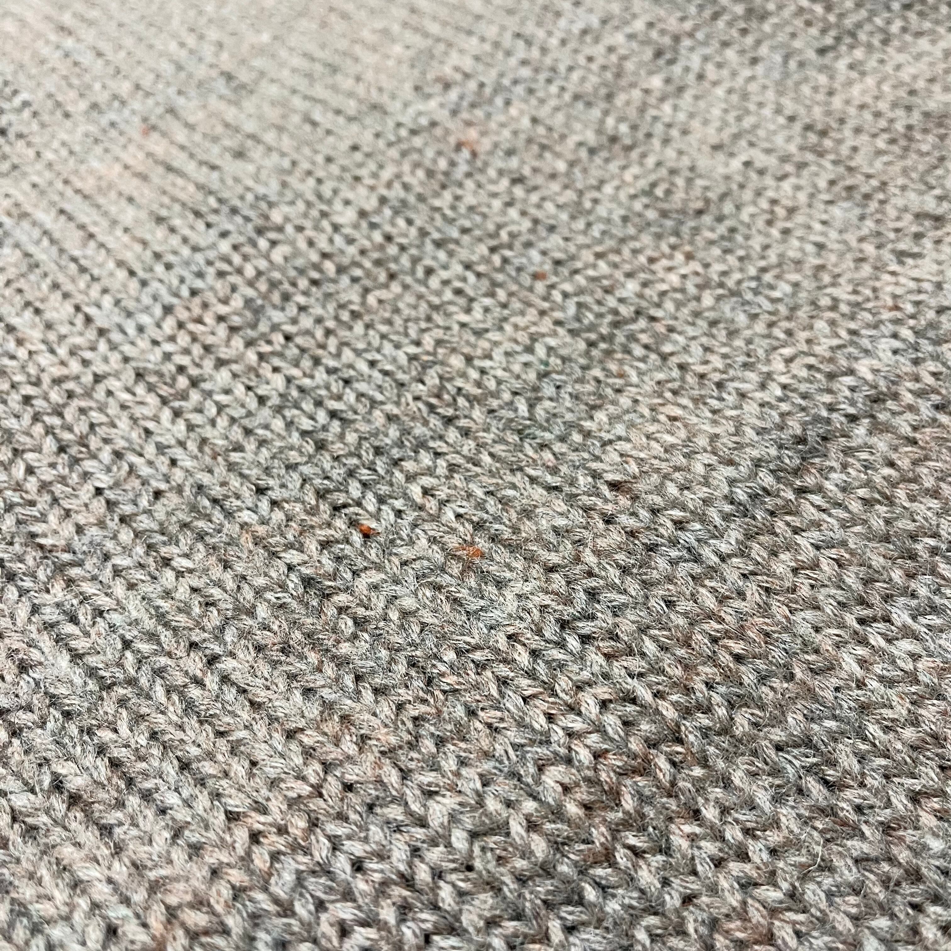 優しい色味のライトブラウンとライトグリーンの糸が使われておりとても素敵な雰囲気のあるニットです。