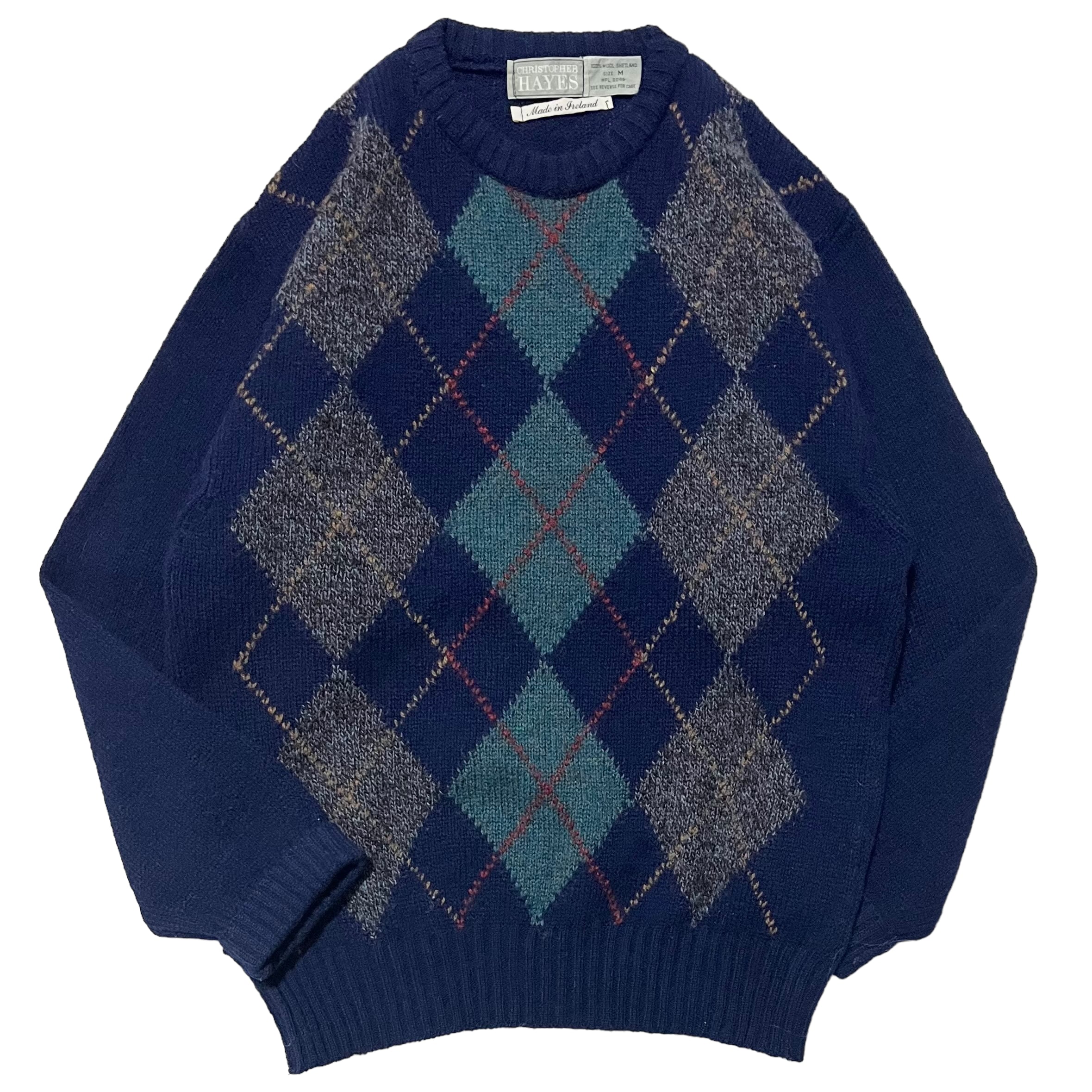 【Vintage】ヴィンテージ シェットランドニットセーター アーガイル柄 MADE IN IRELAND アイルランド製