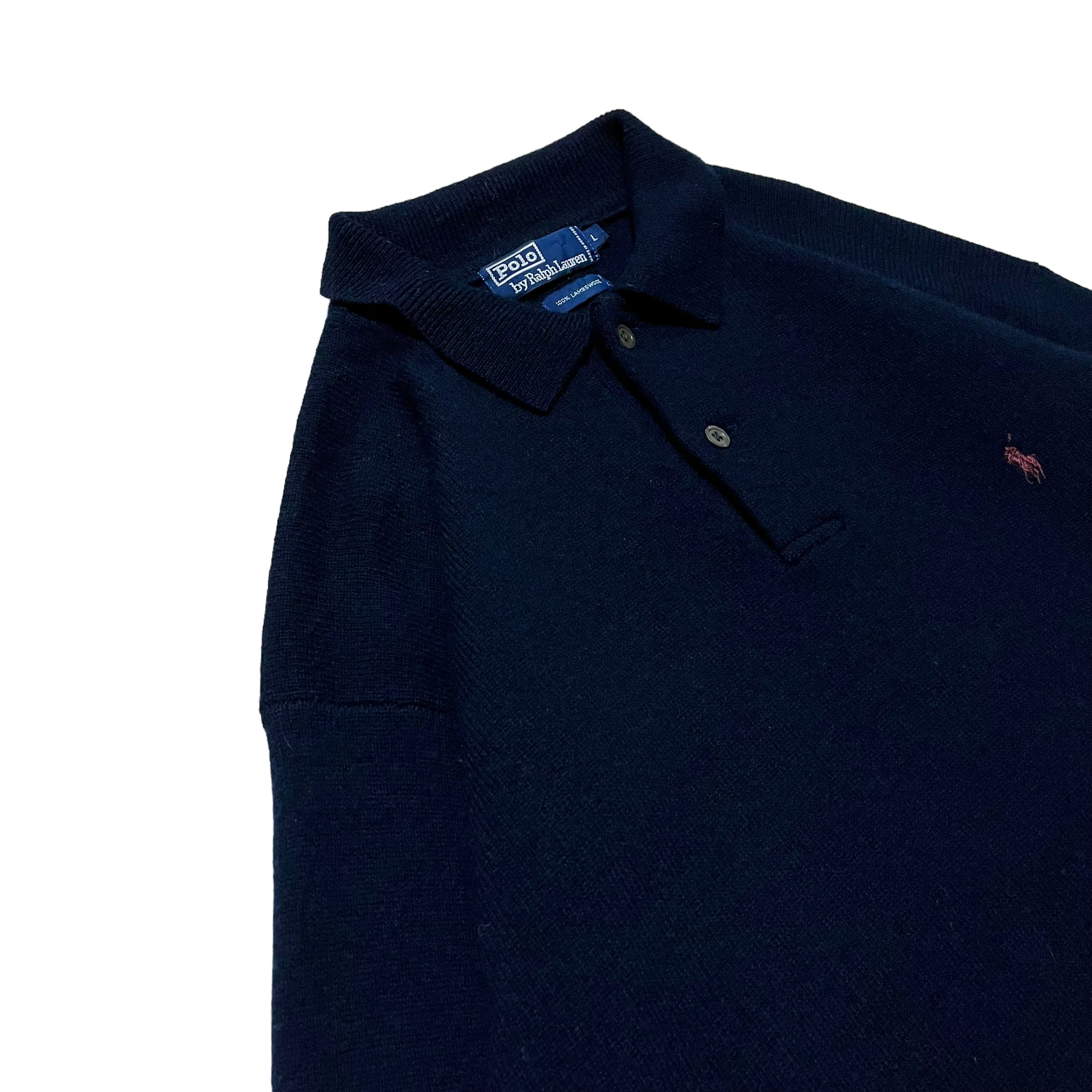 【Ralph Lauren】ラルフローレン ニットポロシャツ ラムウール ダークネイビー