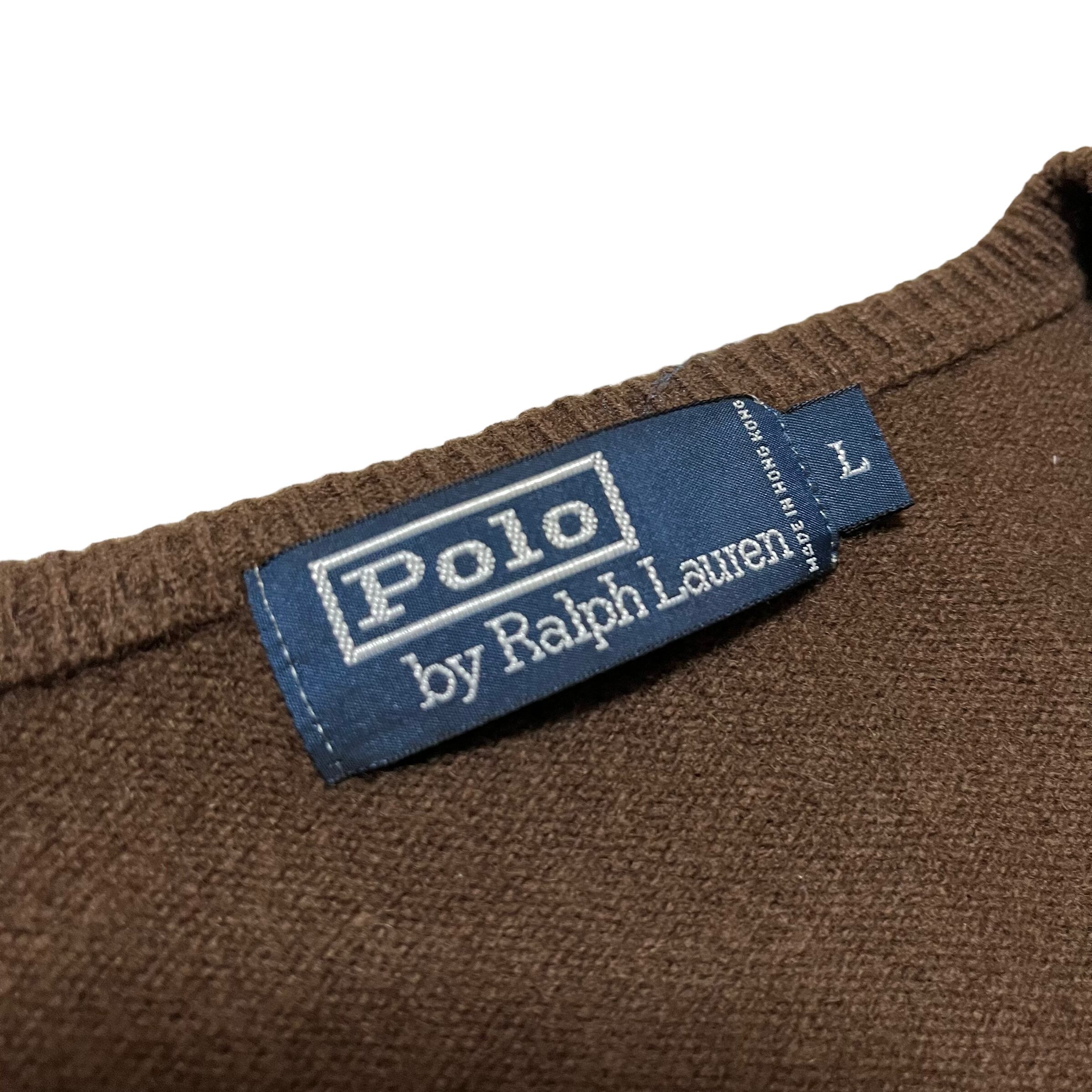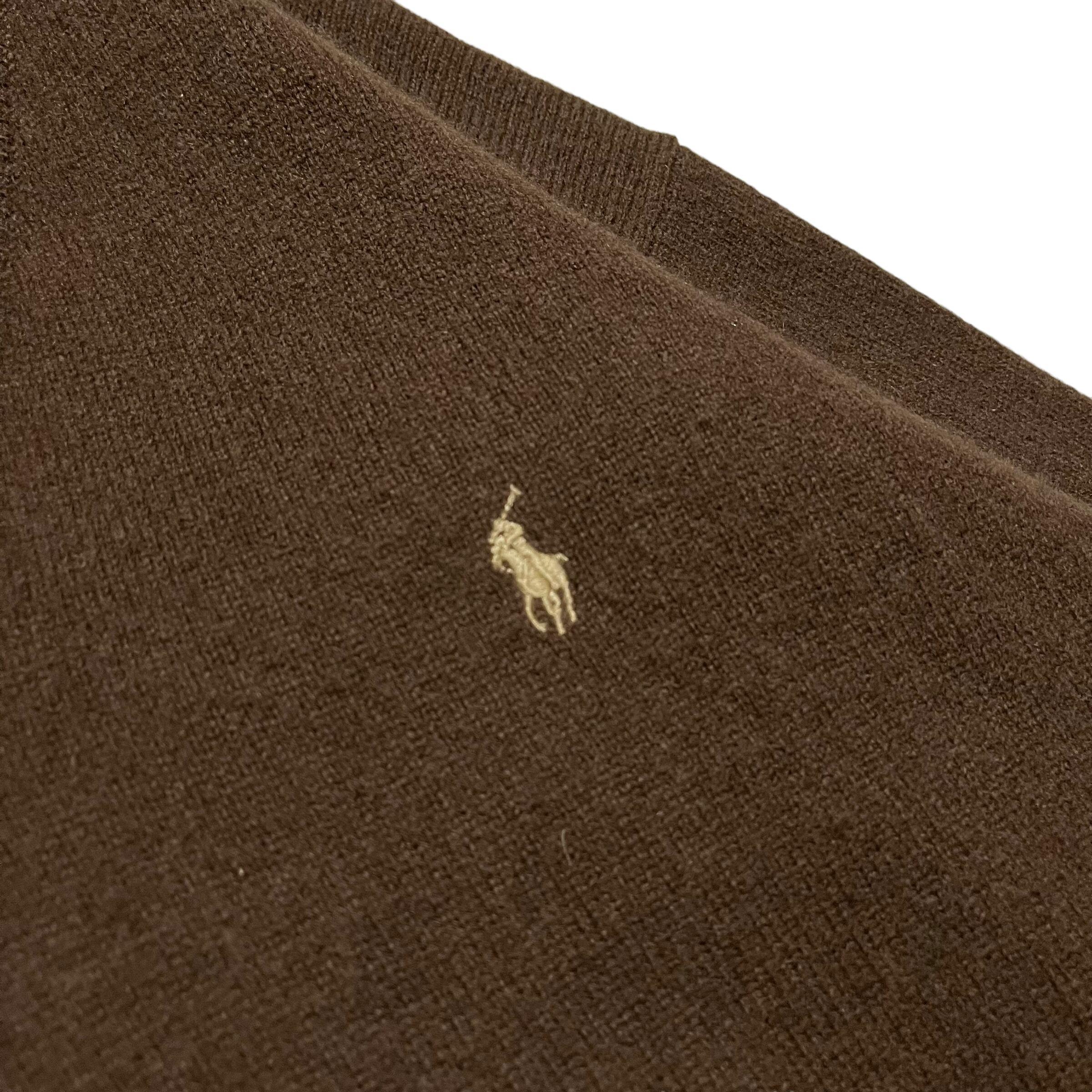 【Ralph Lauren】ラルフローレン Vネックラムウールニットセーター ブラウン