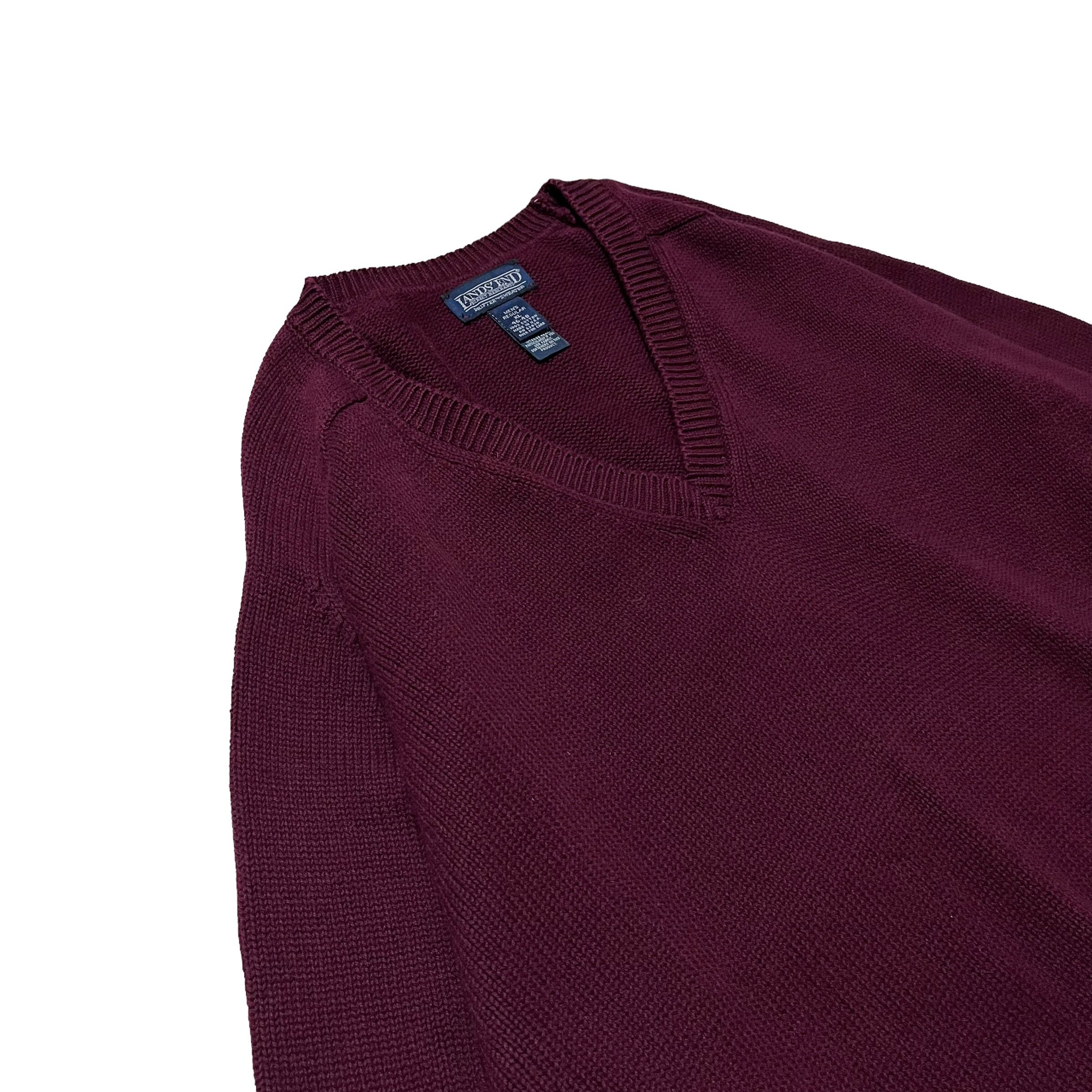 【LADNS' END】ランズエンド ラグランスリーブコットンニットセーター Vネック ビッグサイズ MADE IN USA アメリカ製