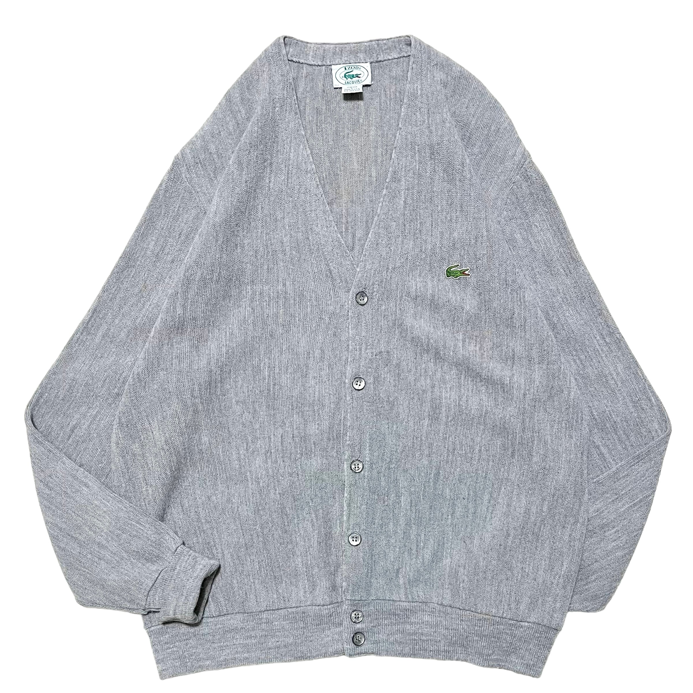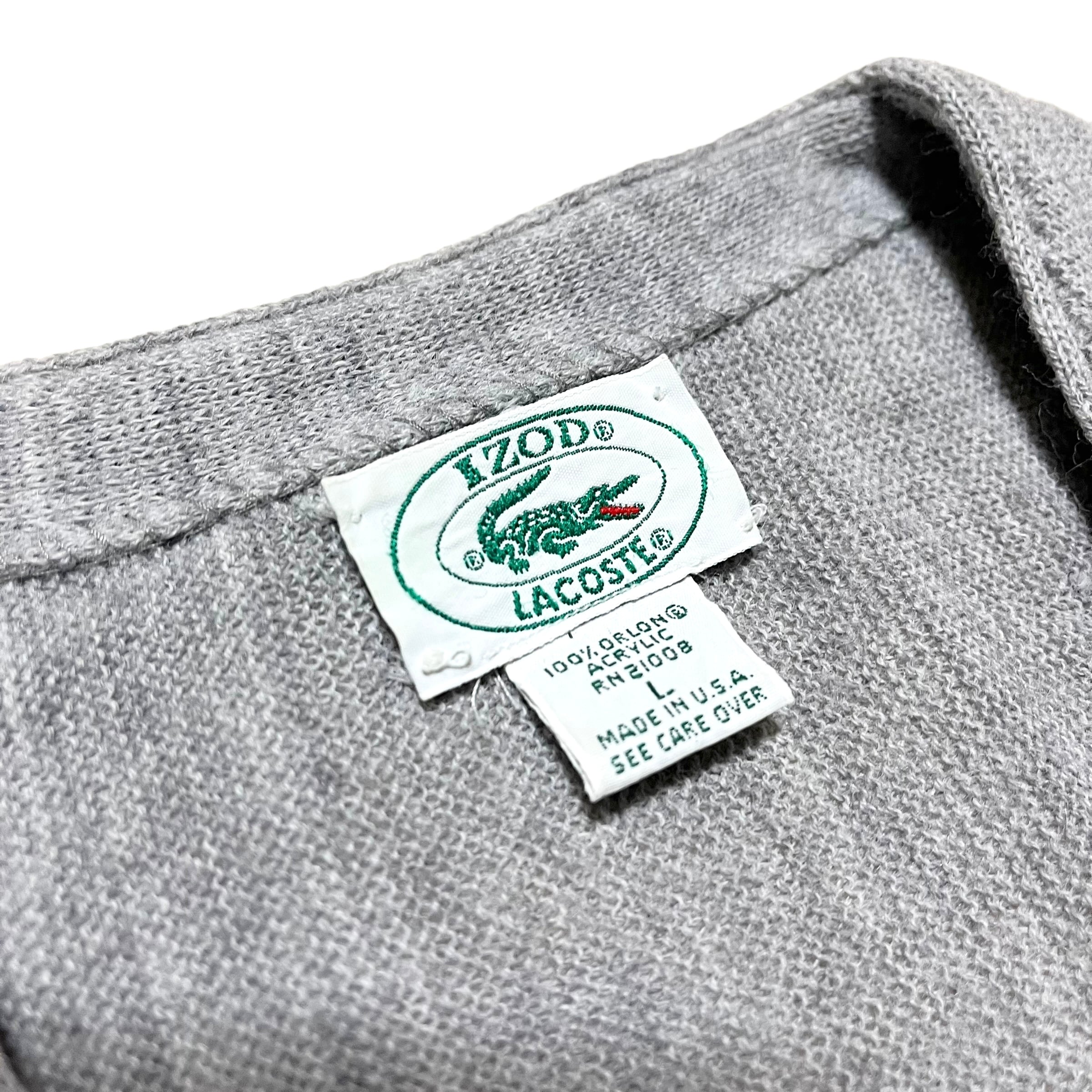 【LACOSTE】ラコステ アクリルカーディガン ライトグレー MADE IN USA アメリカ製