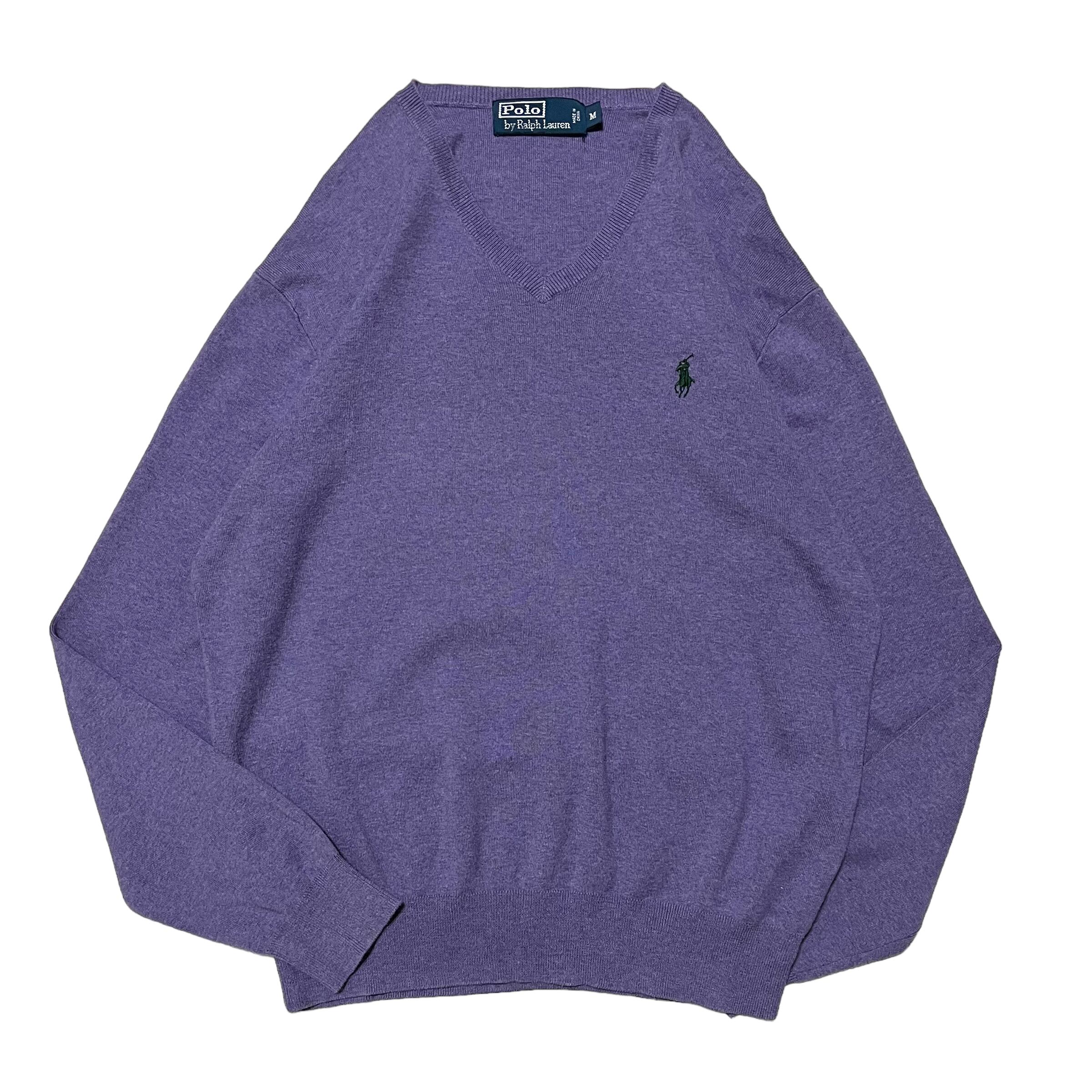 【Ralph Lauren】ラルフローレン Vネックコットンニットセーター ラベンダー