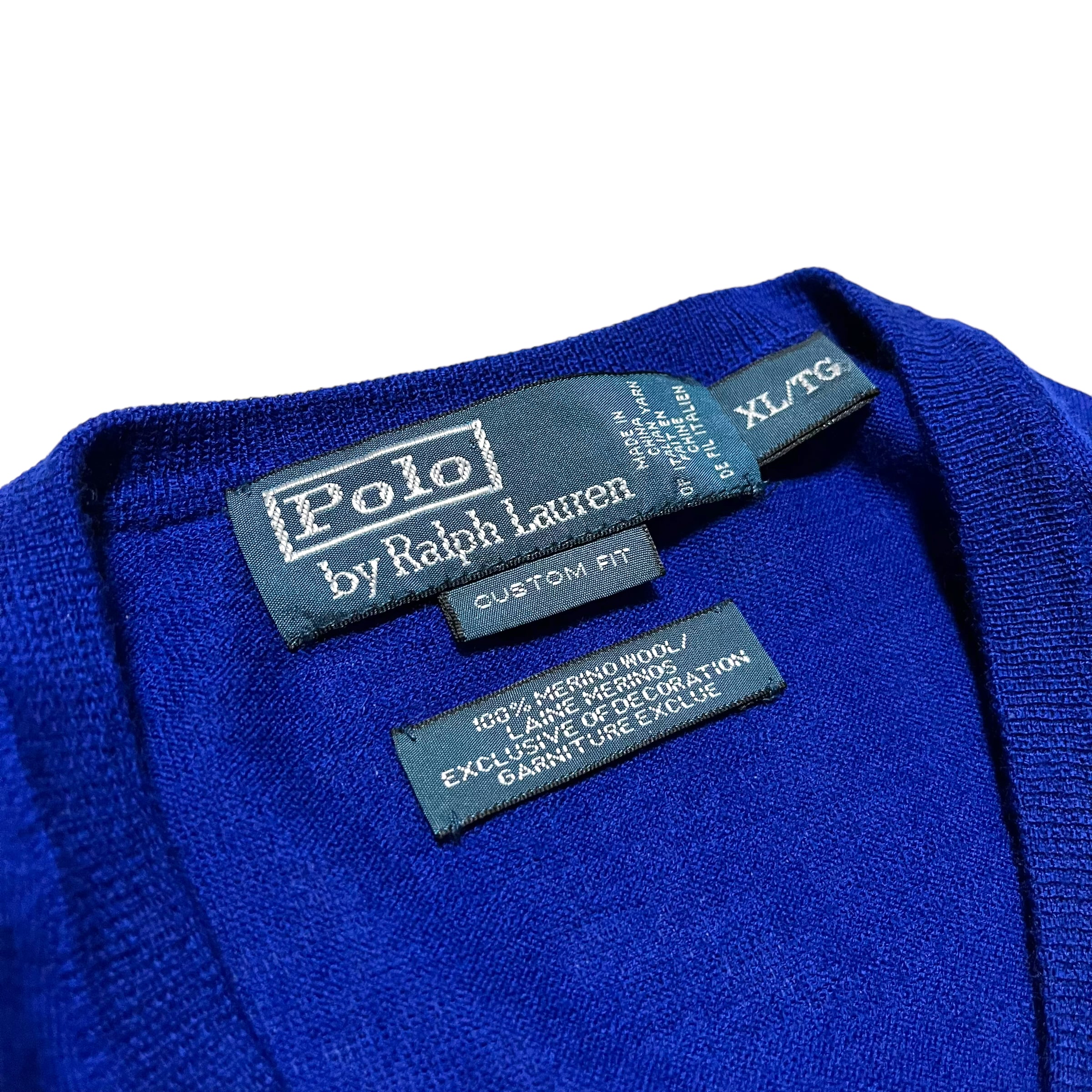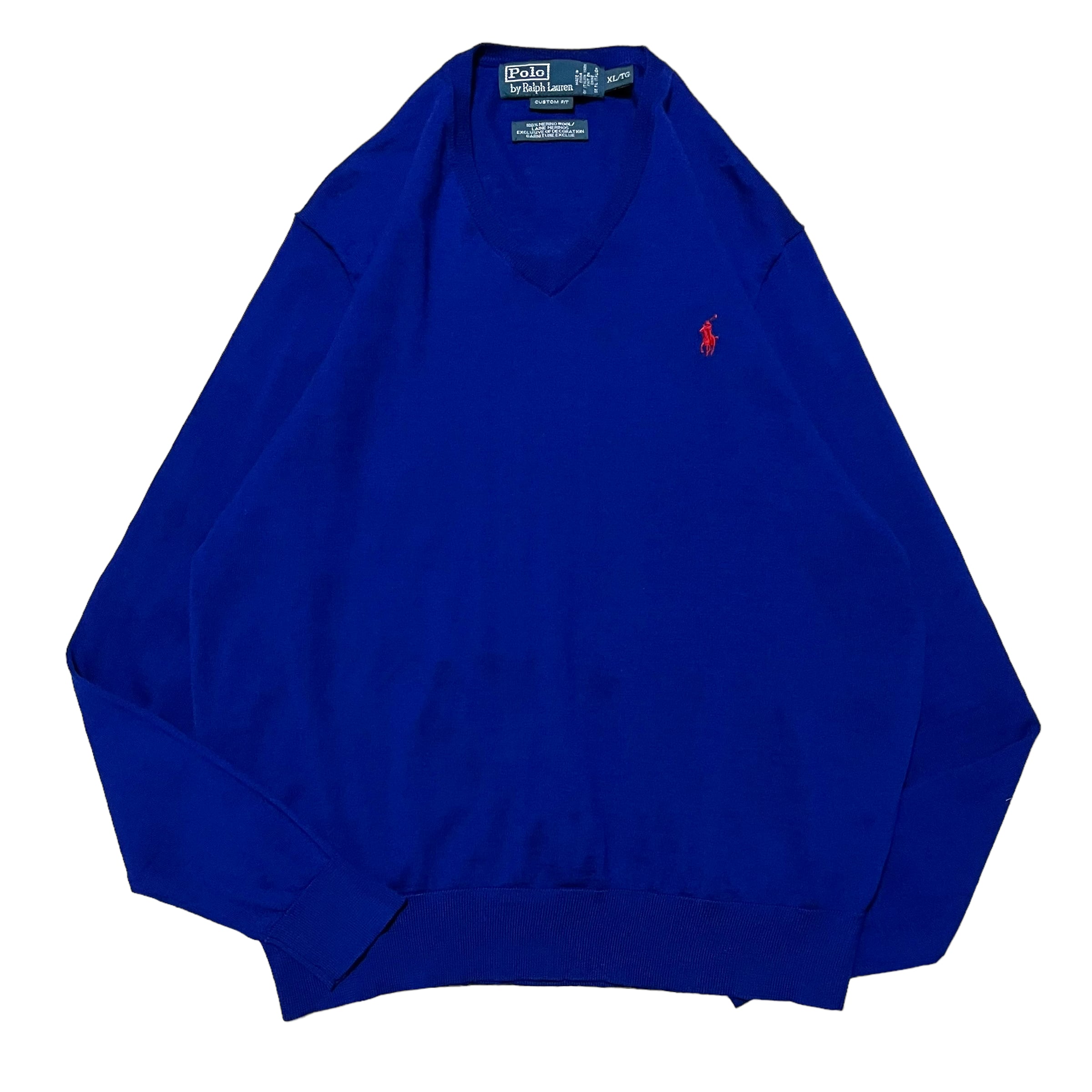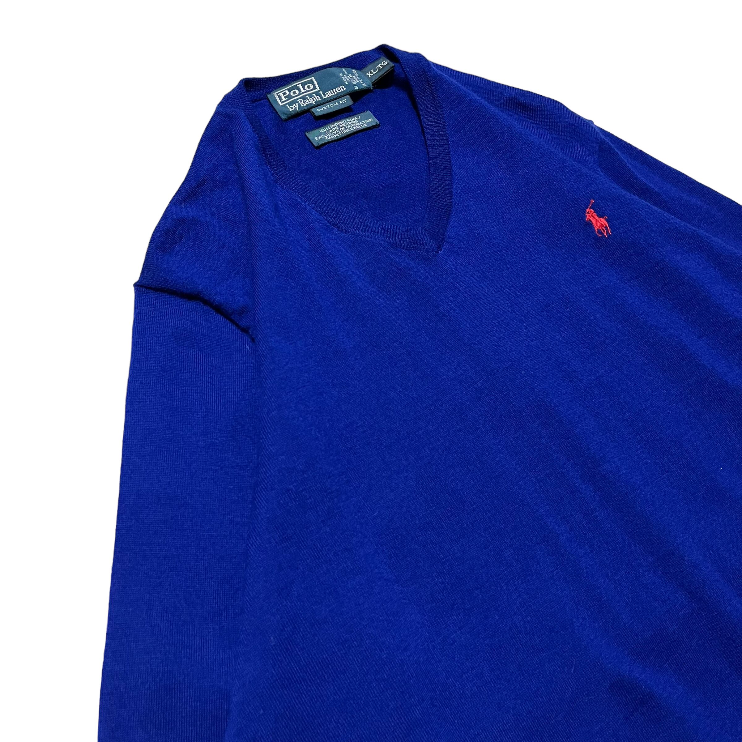 【Ralph Lauren】ラルフローレン Vネックメリノウールニットセーター ビッグサイズ ブルー