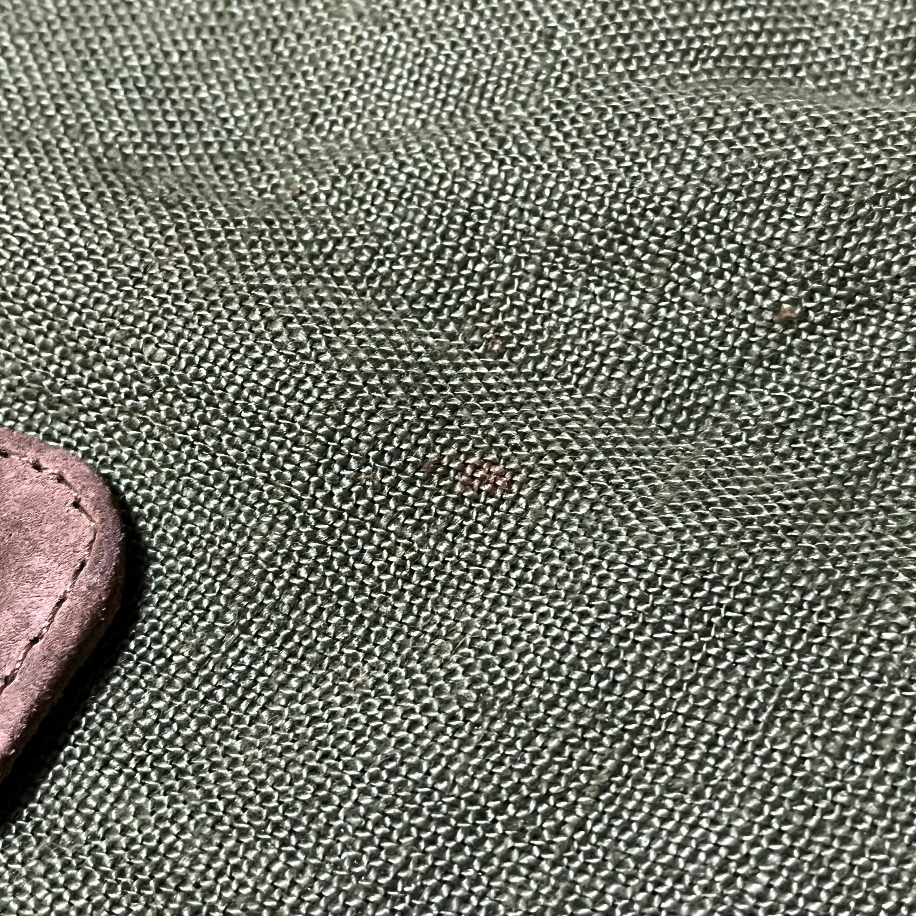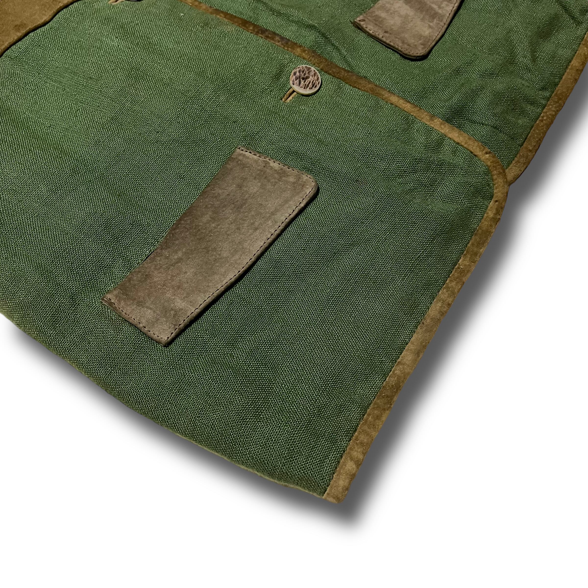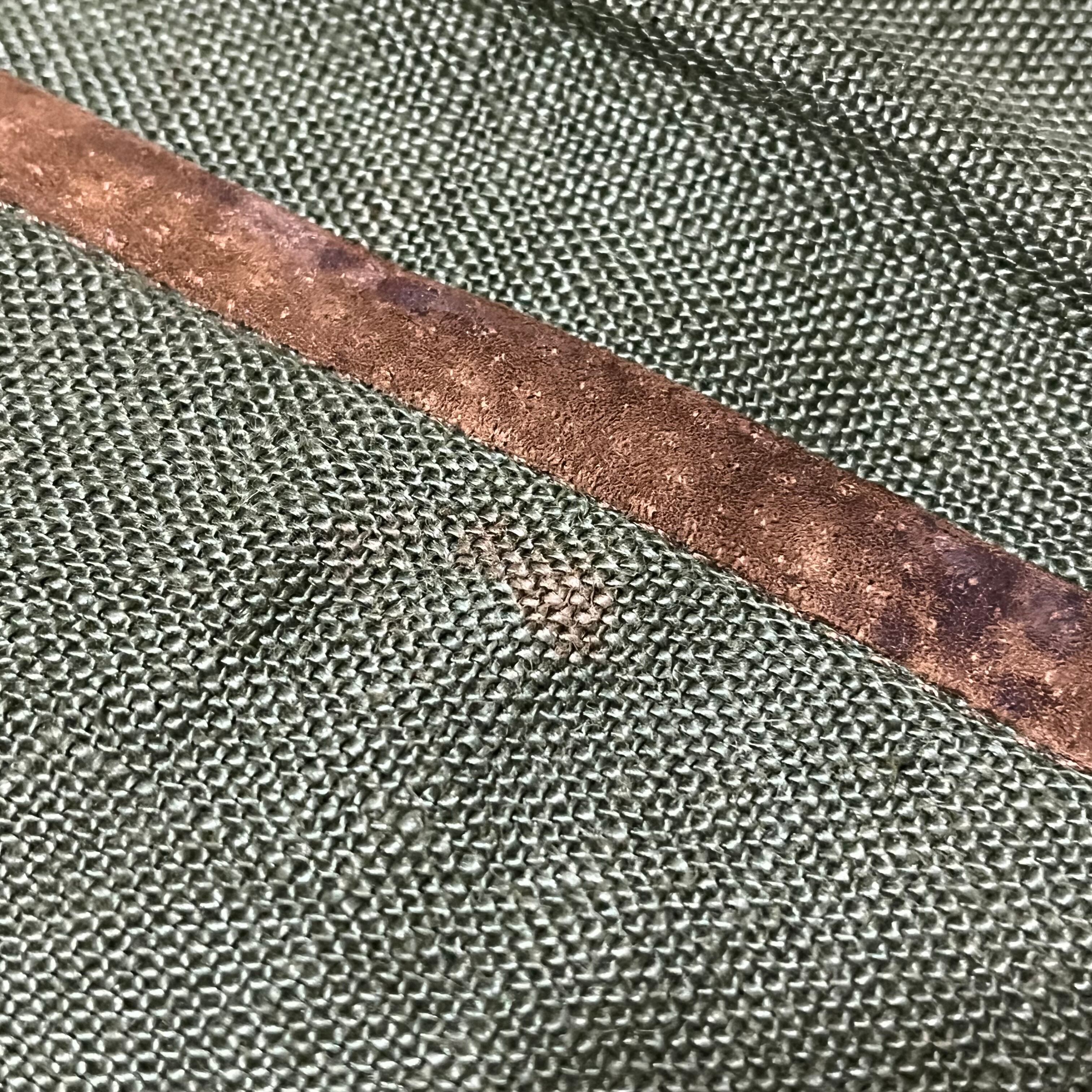 落ち着いたブラウンのレザーにグリーンのリネンの組み合わせがとても雰囲気があります。