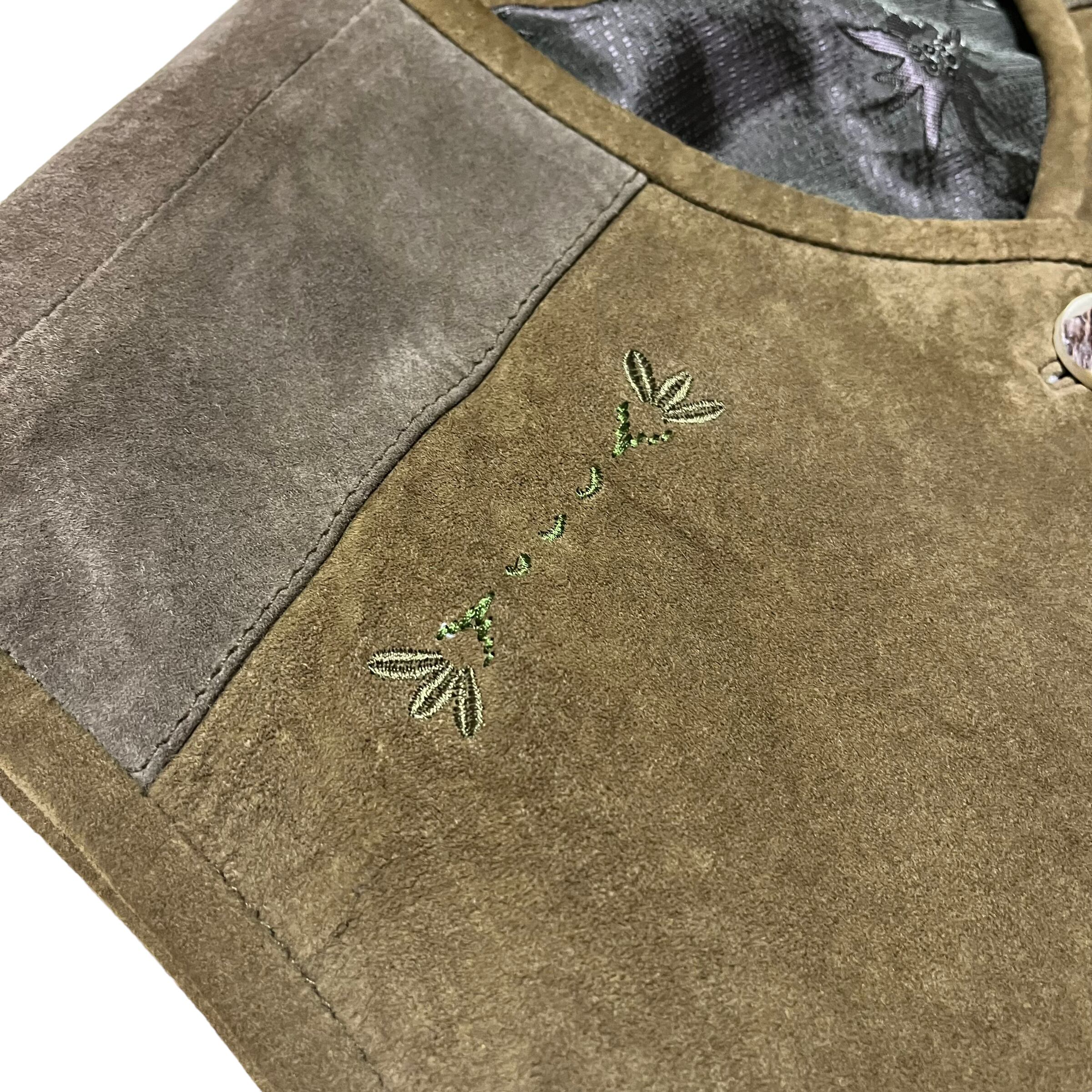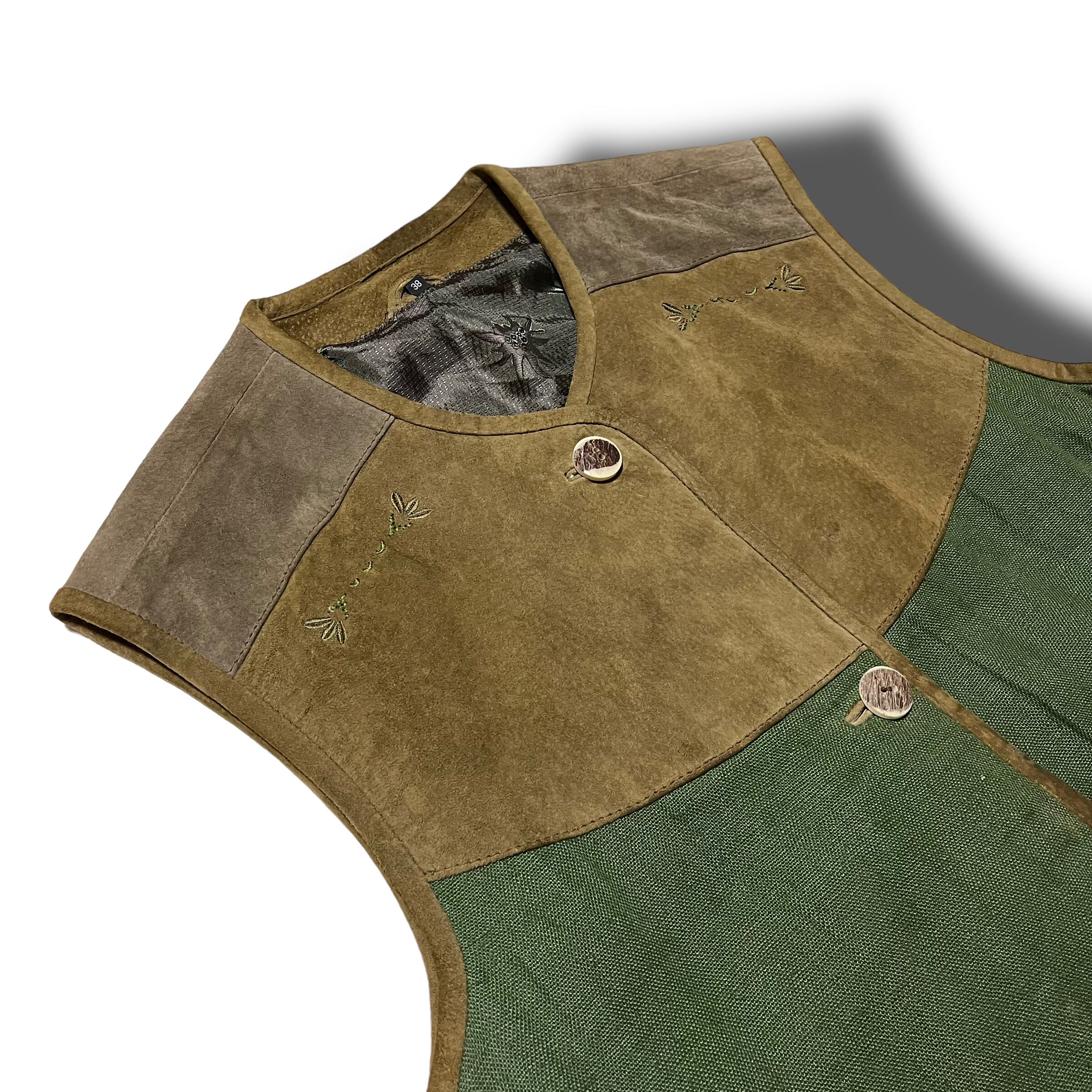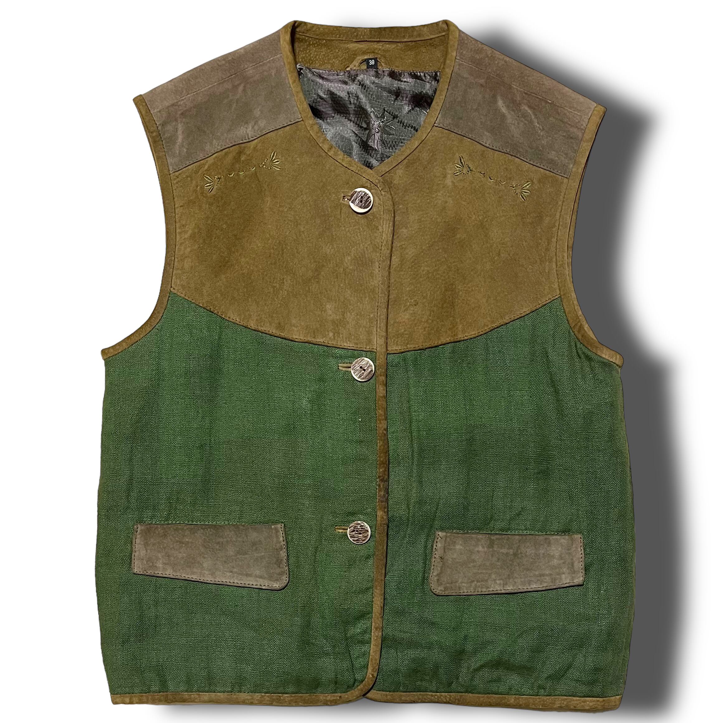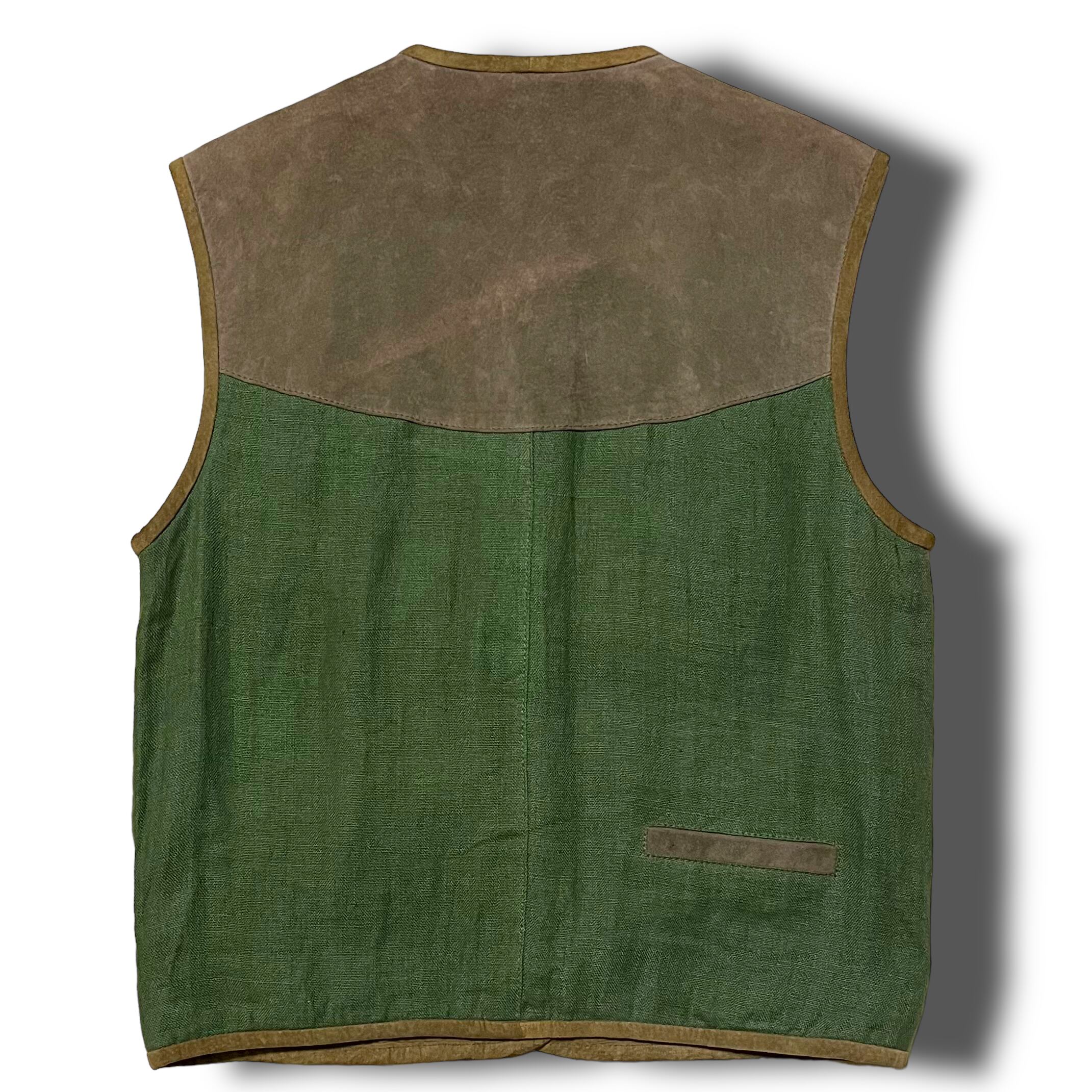 落ち着いたブラウンのレザーにグリーンのリネンの組み合わせがとても雰囲気があります。