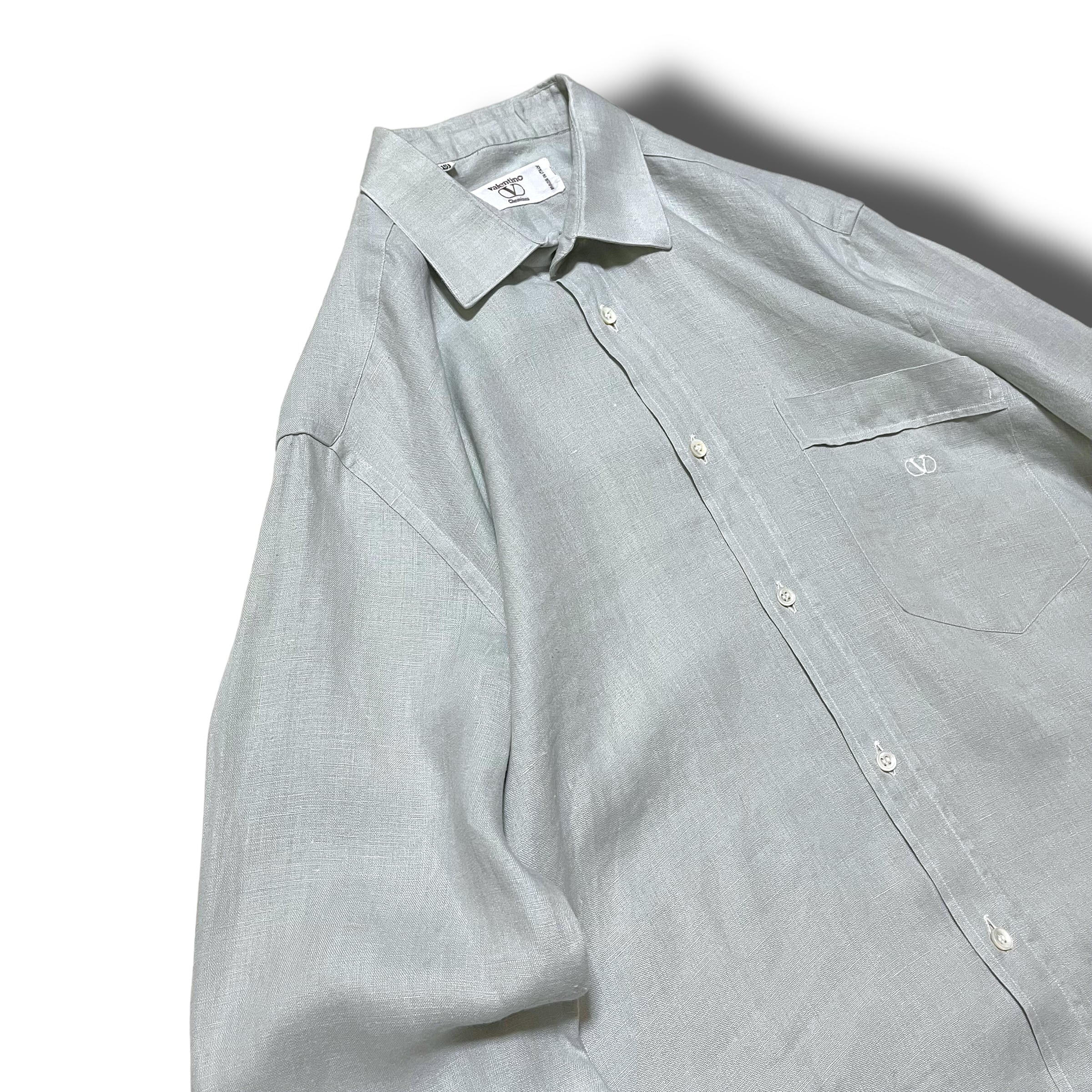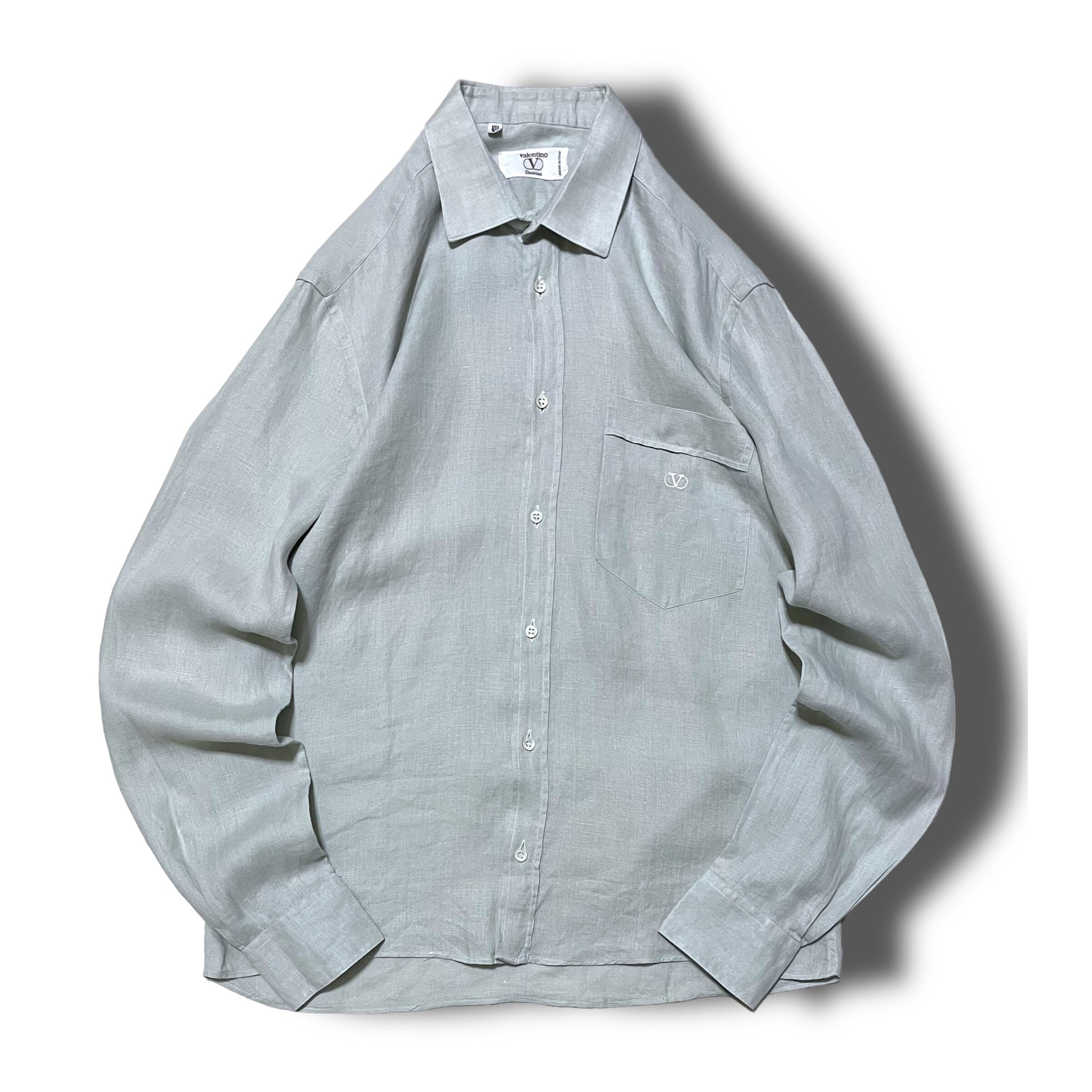 【Valentino】ヴァレンティノ ロングスリーブリネンシャツ ライトブルー MADE IN ITALY
