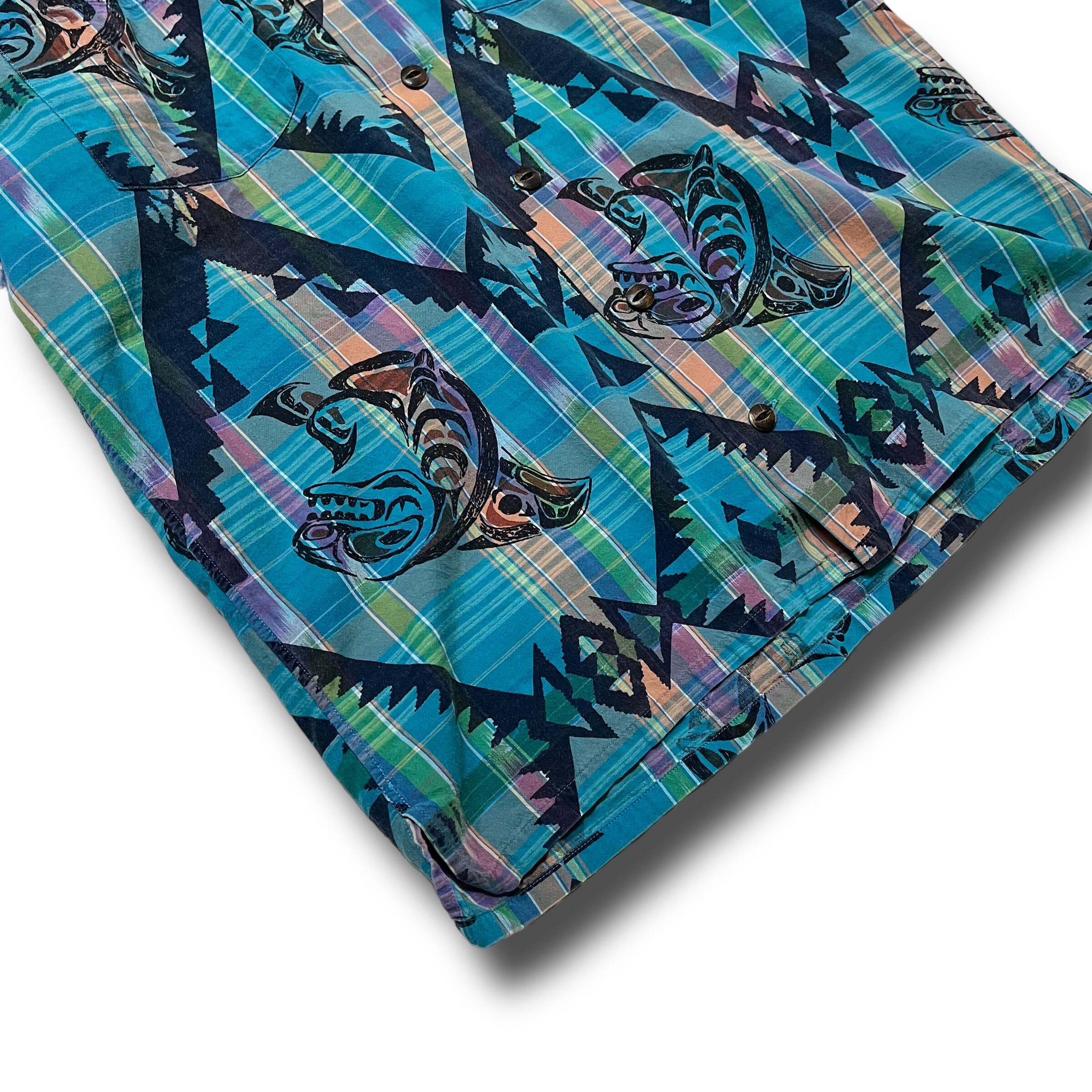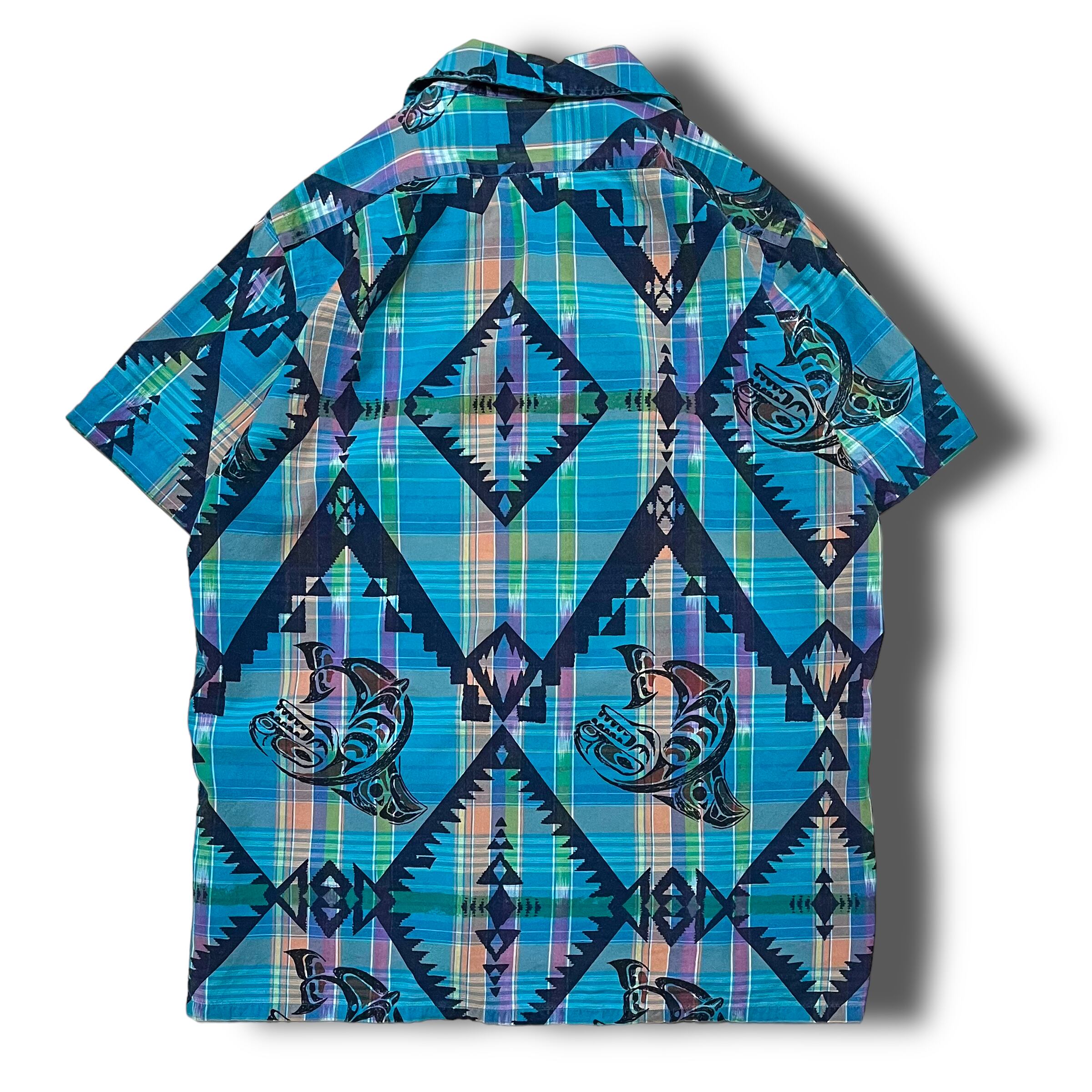 マドラスチェックに民族調の柄のデザインが入った珍しいデザインです。