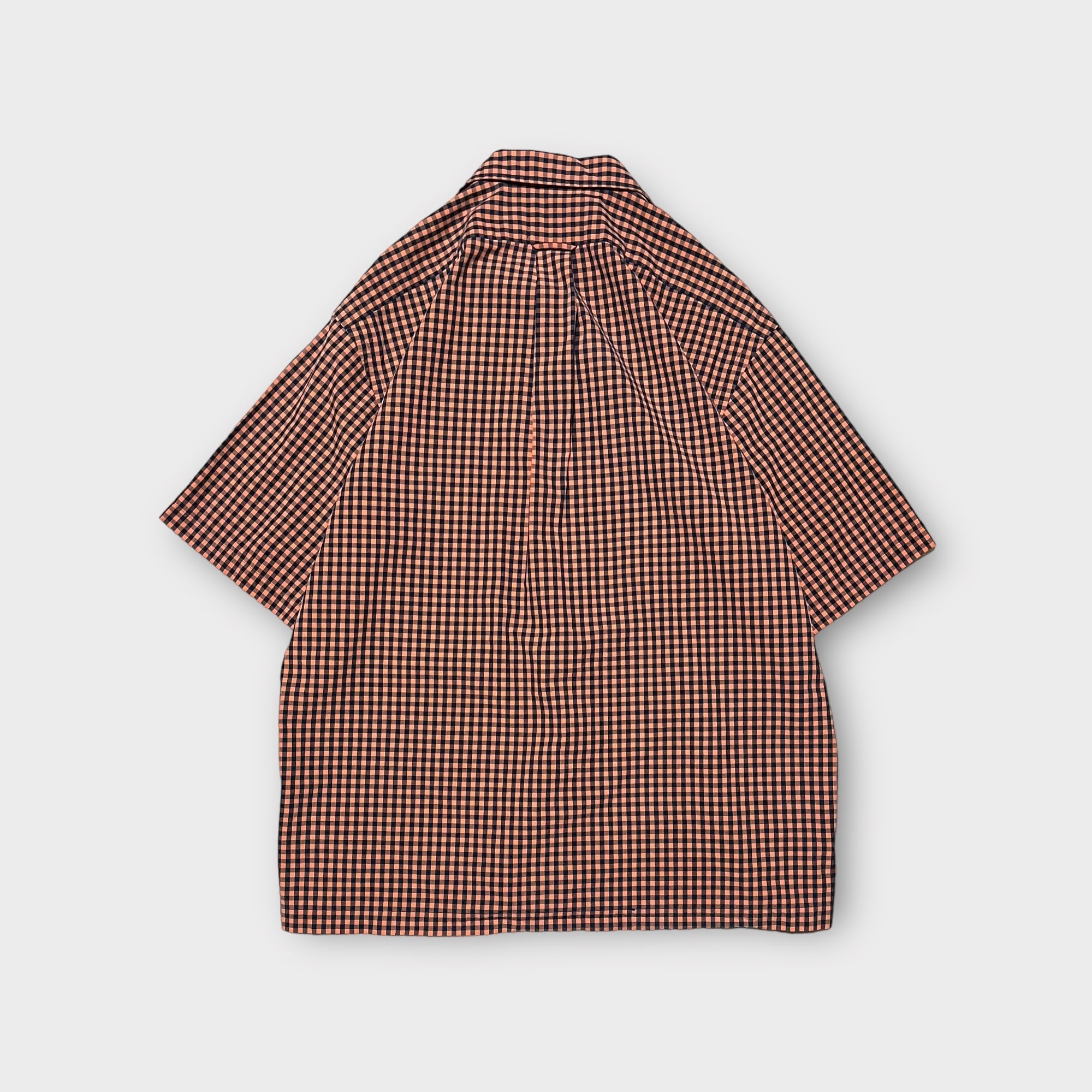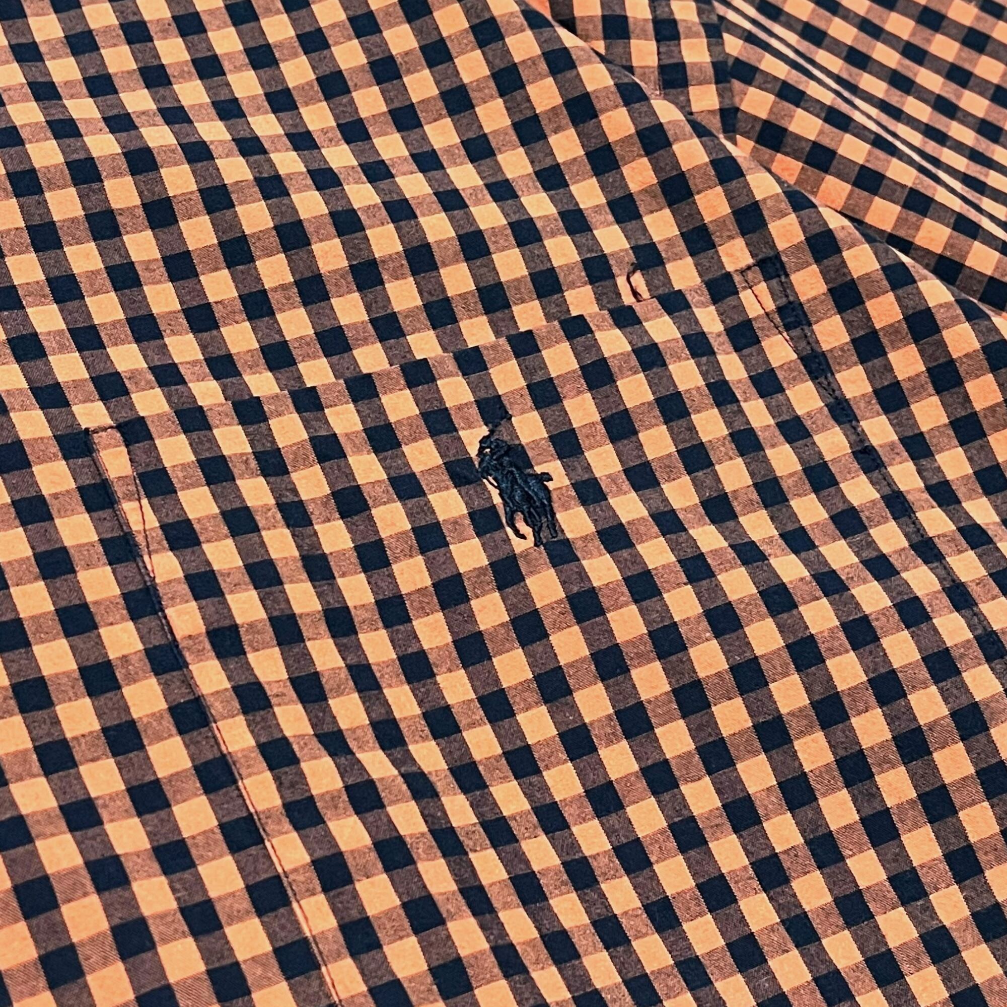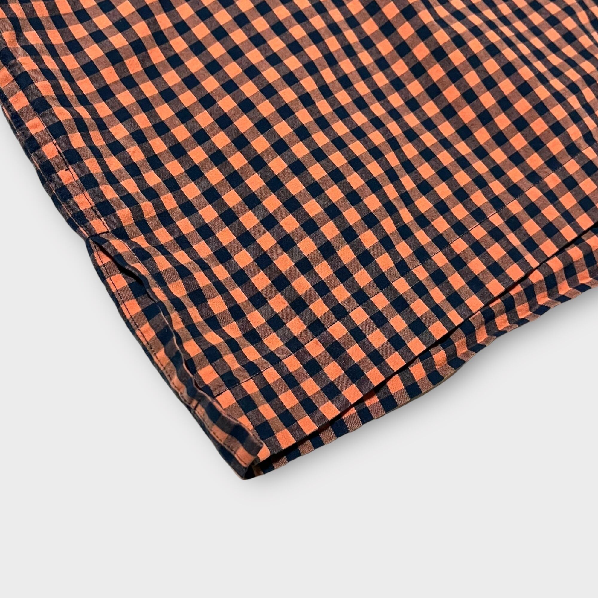 オレンジベースにダークネイビーのギンガムチェックの入ったシャツ