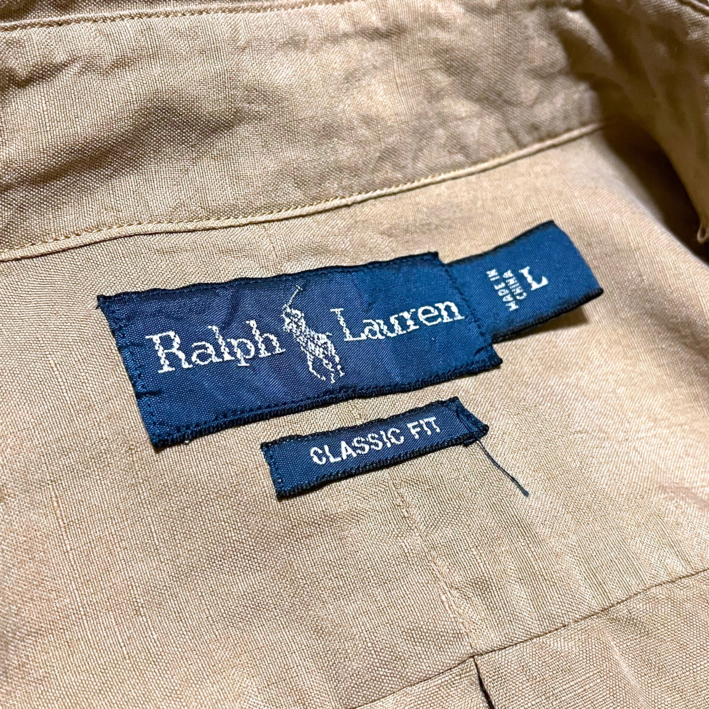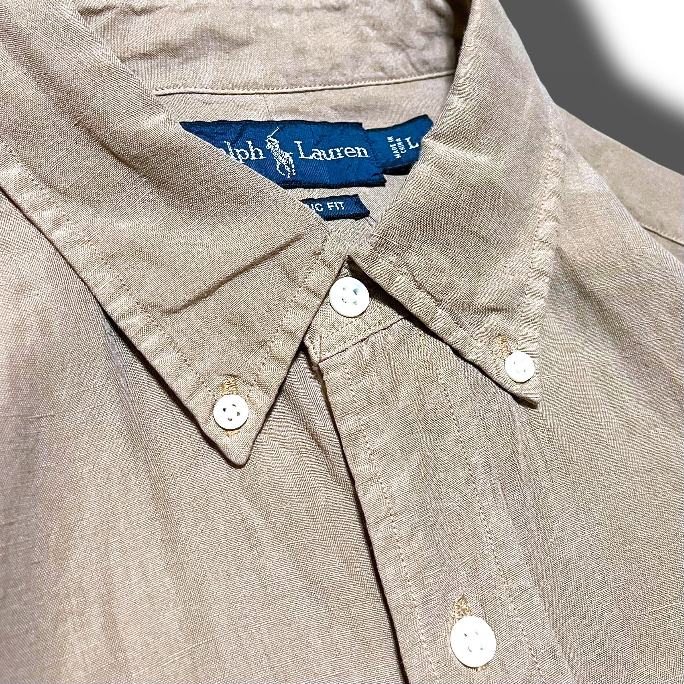【Ralph Lauren】シルクリネンボタンダウンシャツ ベージュ