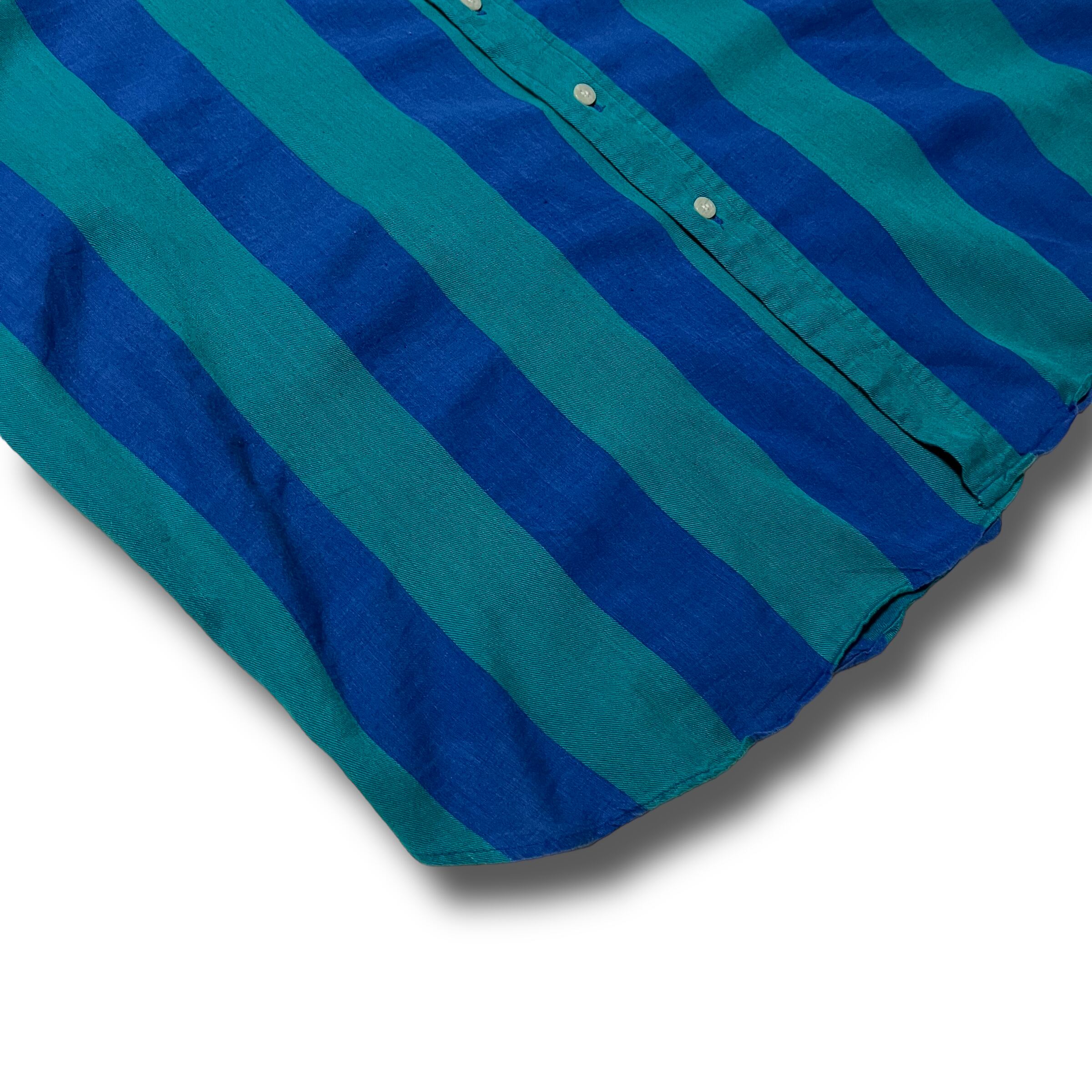 ブルーとグリーンのとても良い配色の太ピッチのストライプ!