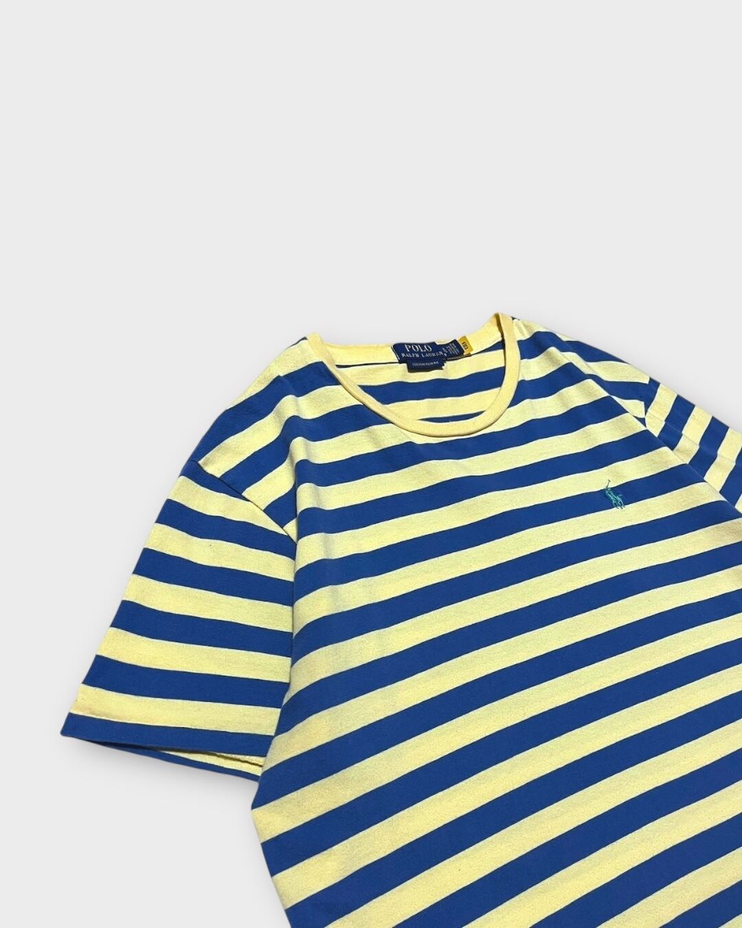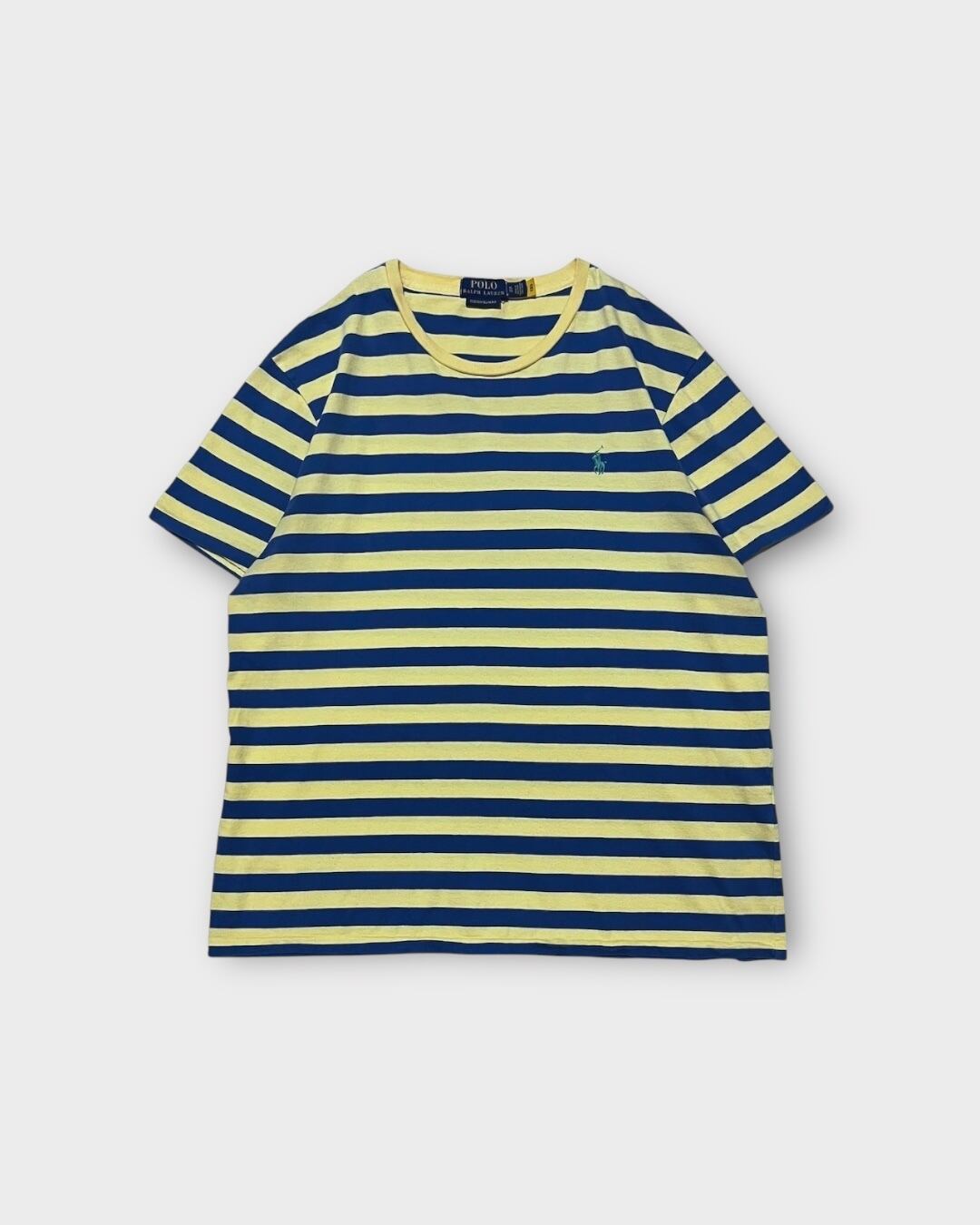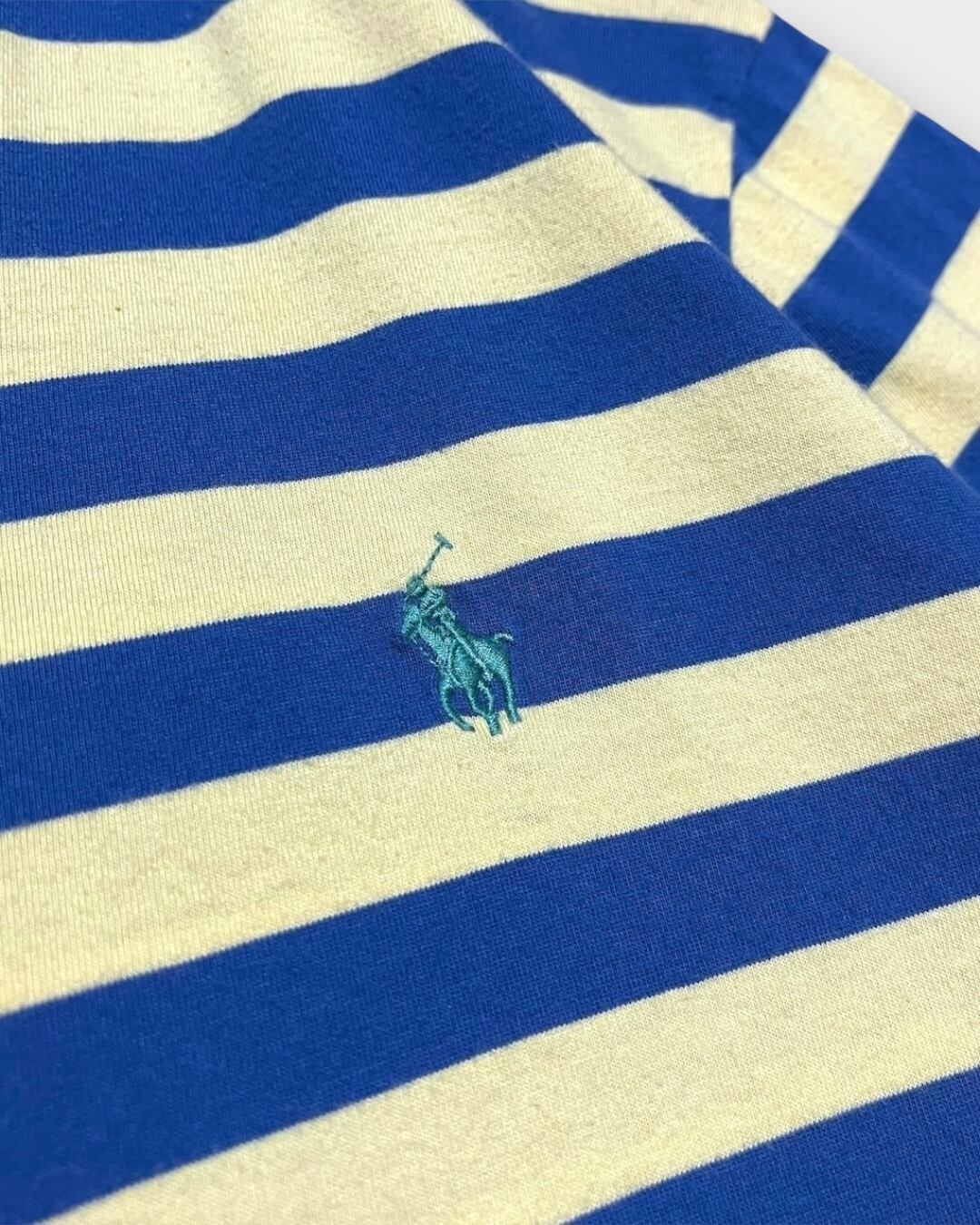 くすんだイエローとブルーの配色が絶妙な、Ralph LaurenのボーダーTシャツ。