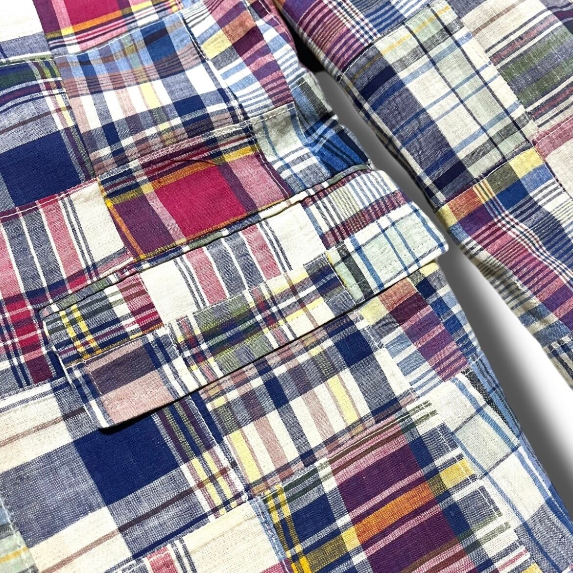【Abercrombie&Fitch】1980's アバクロ マドラスチェックパッチワークテーラードジャケット MADE IN USA