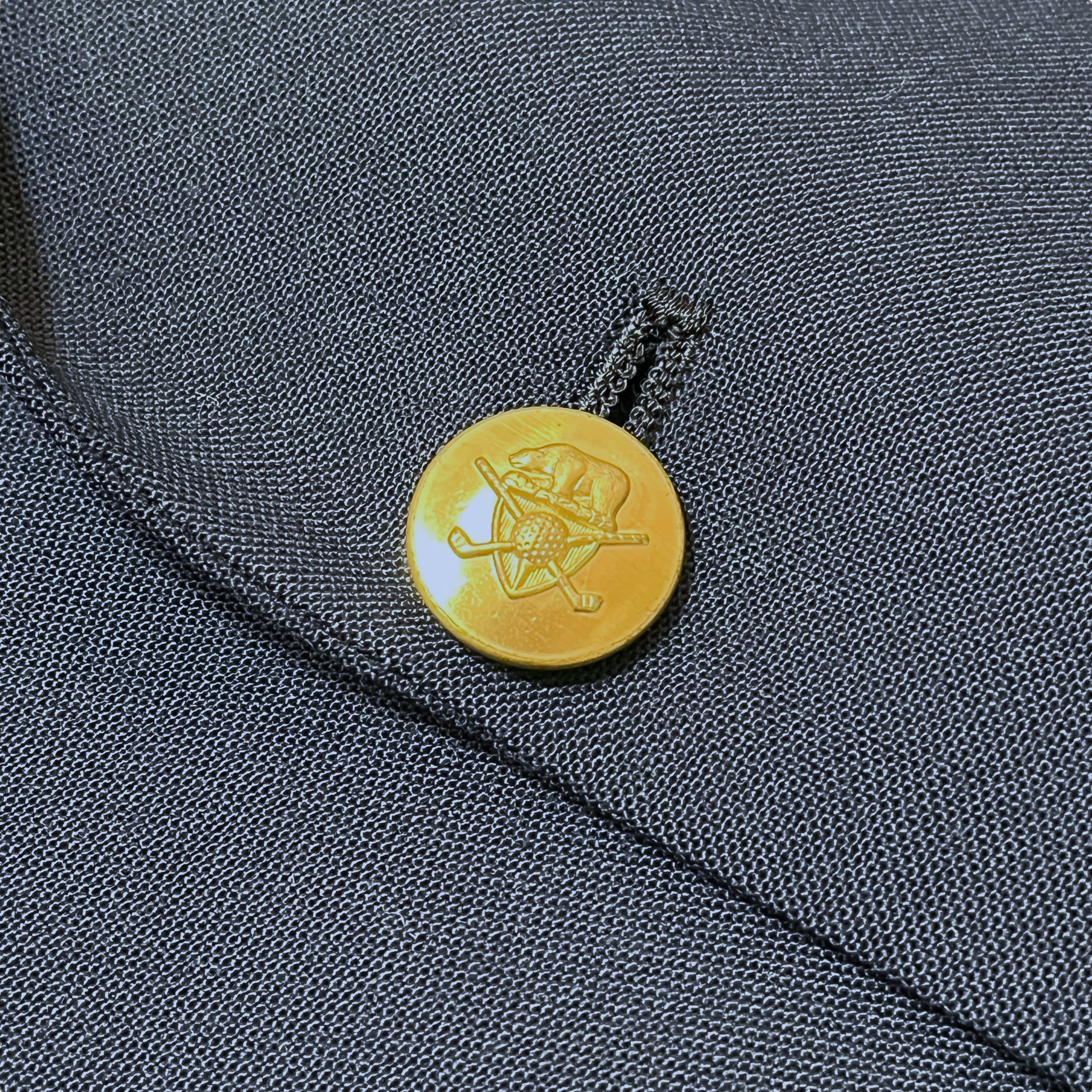ゴールドのメタルボタンにネイビーカラー、センターベントと王道なスタイル