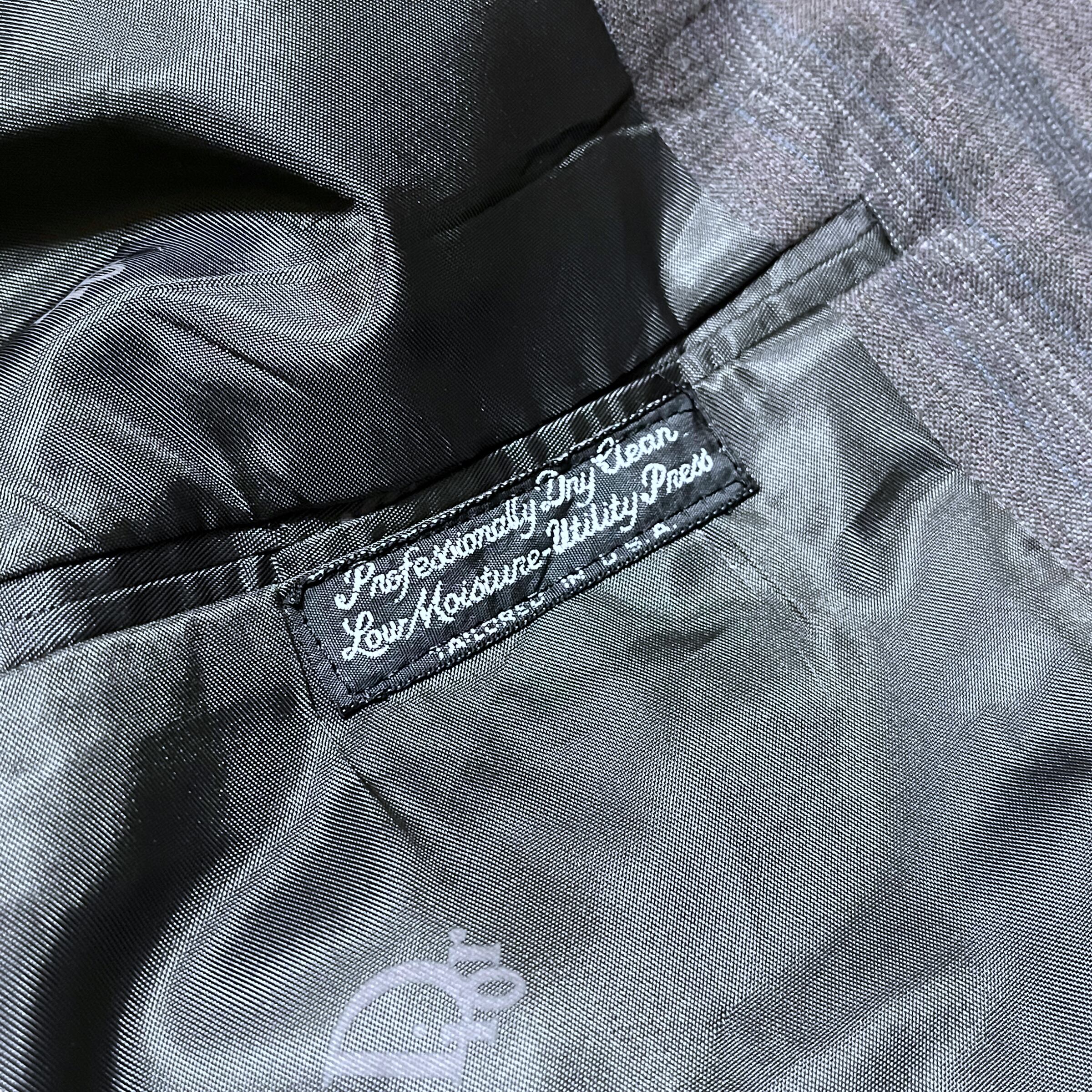落ち着いたグレーベースのカラーにブルーやブラウンの細いストライプの入ったとても上品な雰囲気のジャケット