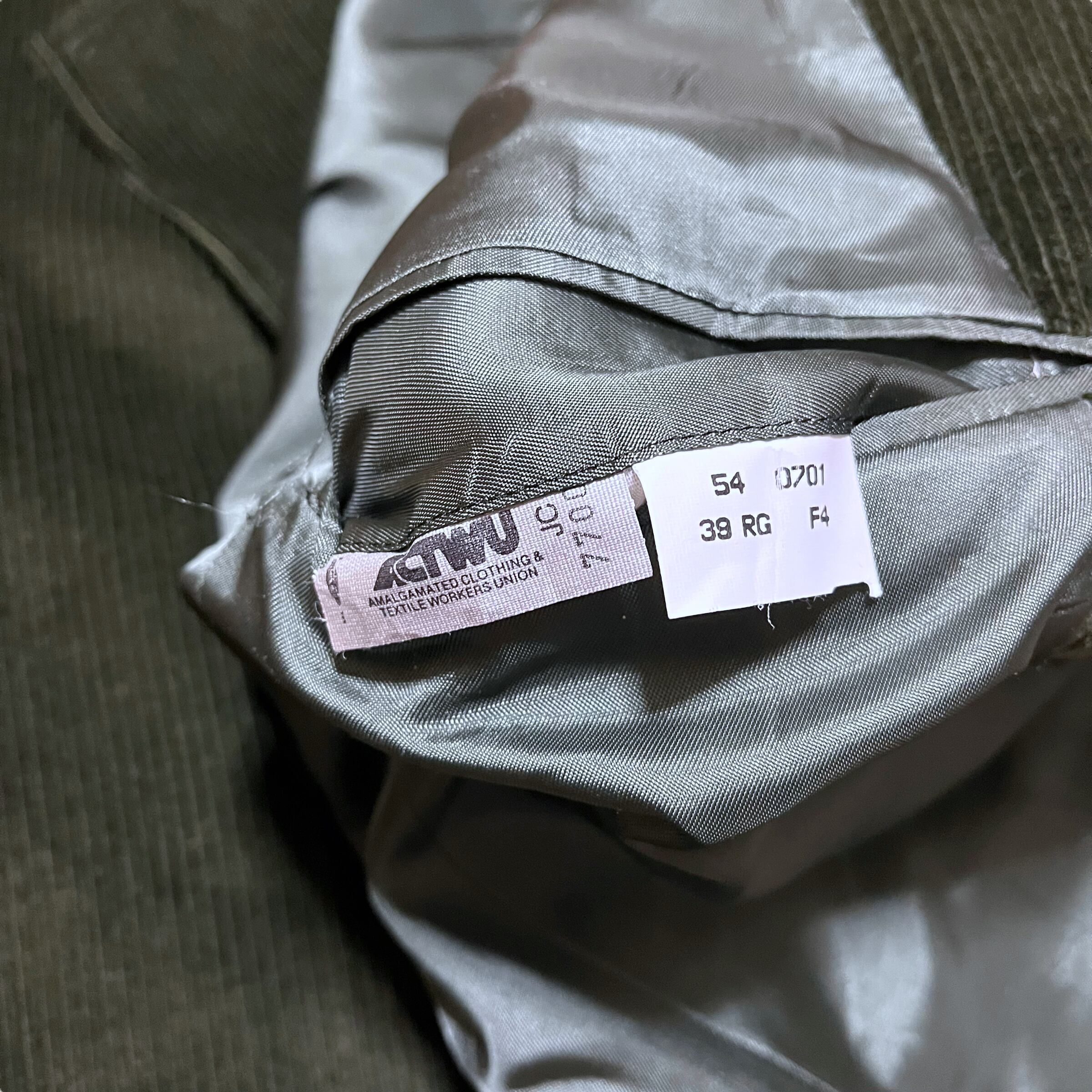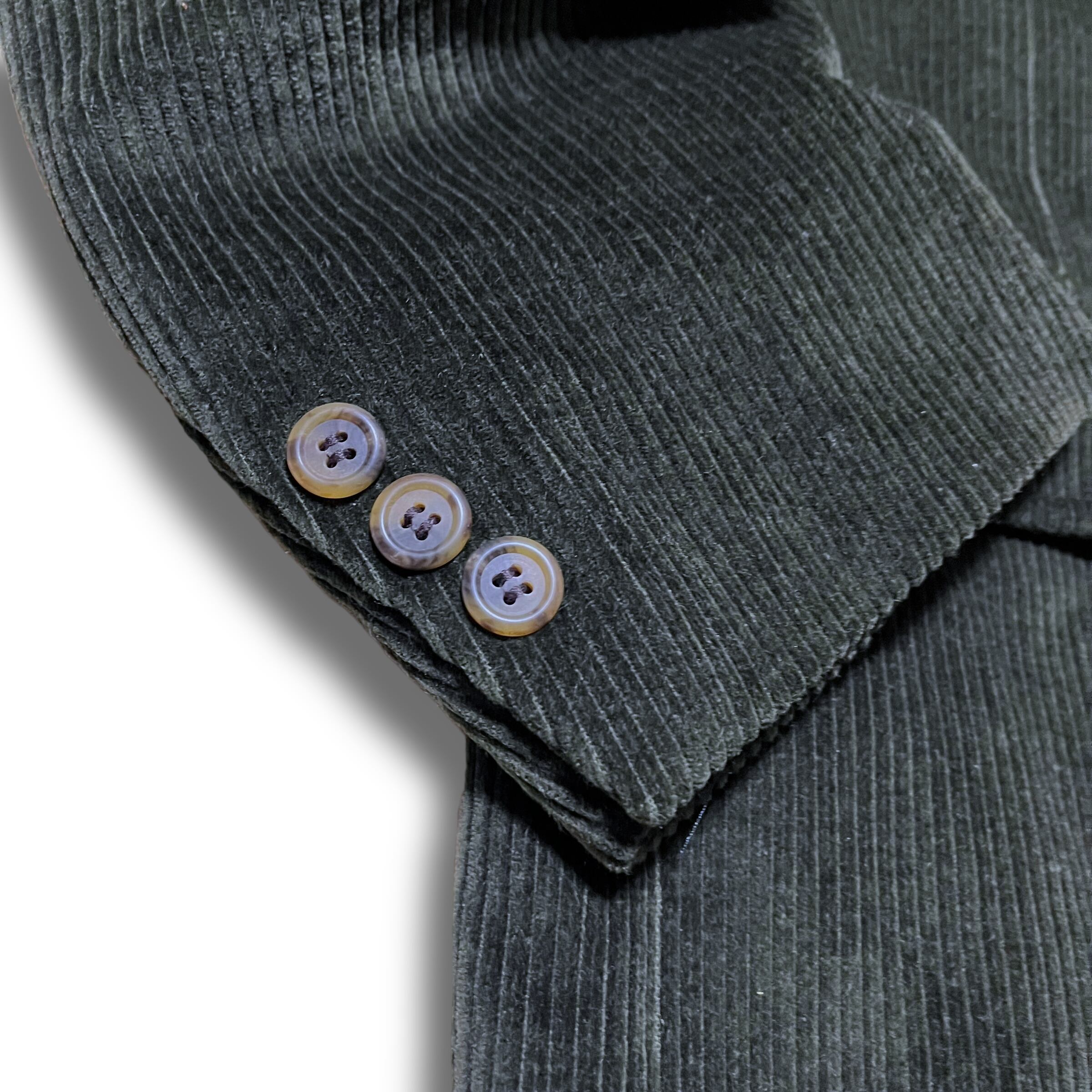 高級感を感じる光沢感のある太畝のダークグリーンのコーデュロイが使用されとても良い雰囲気です!