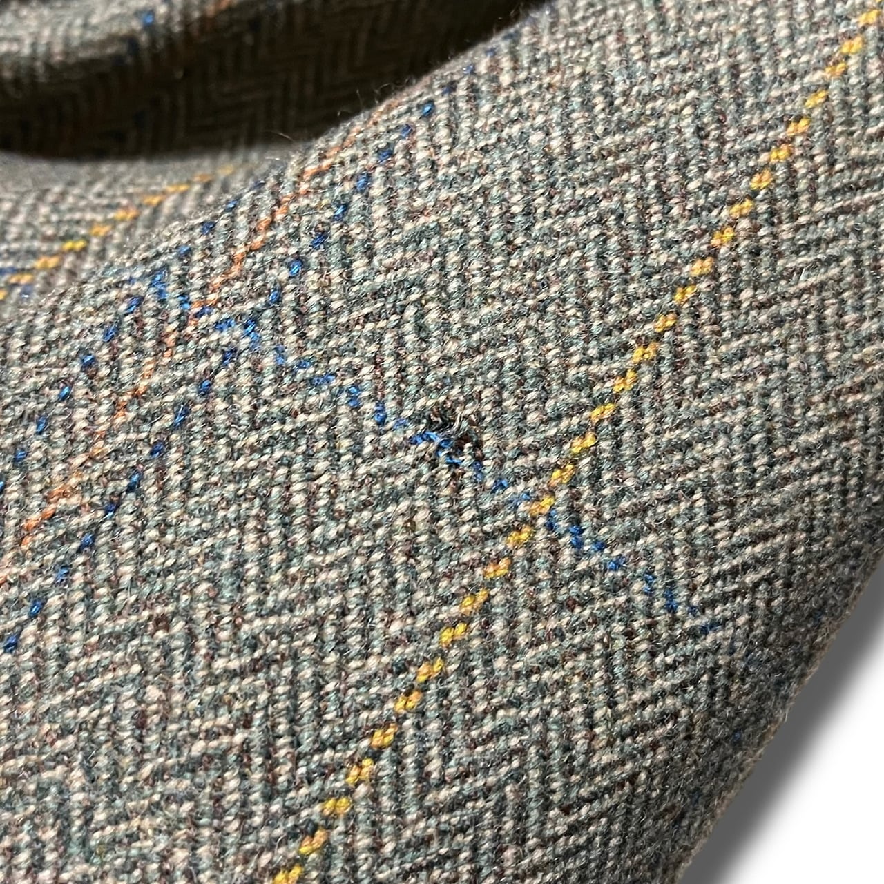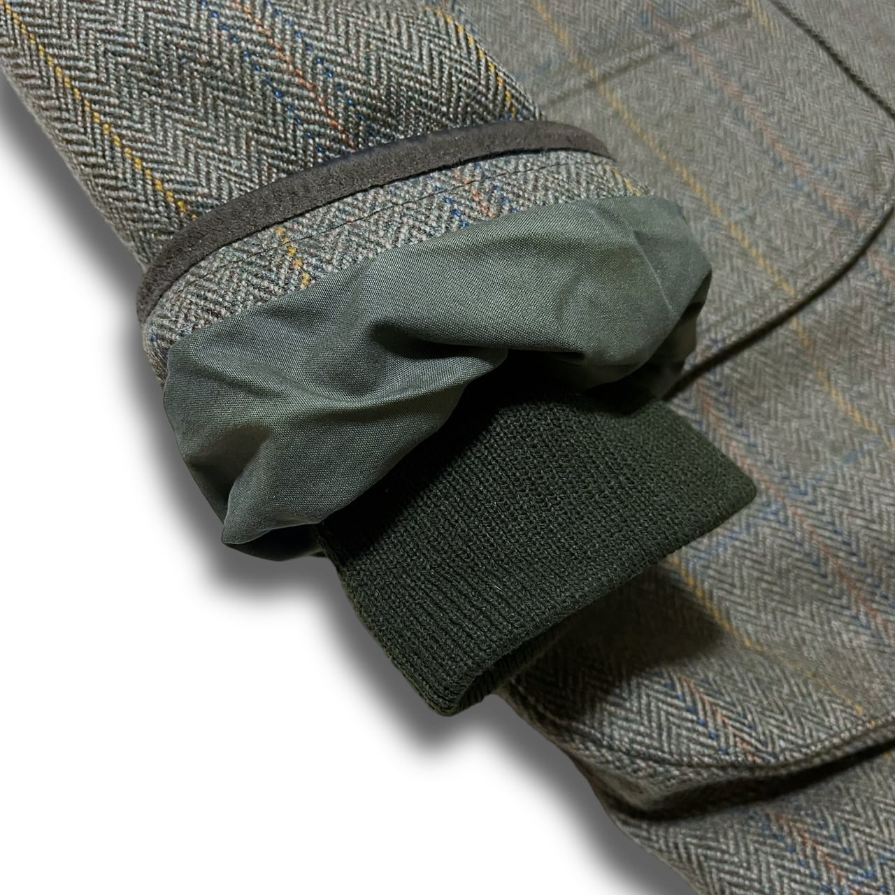 一枚袖のゆとりのあるスリーブに美しいヘリンボーンのチェックのとても上質なツイード生地