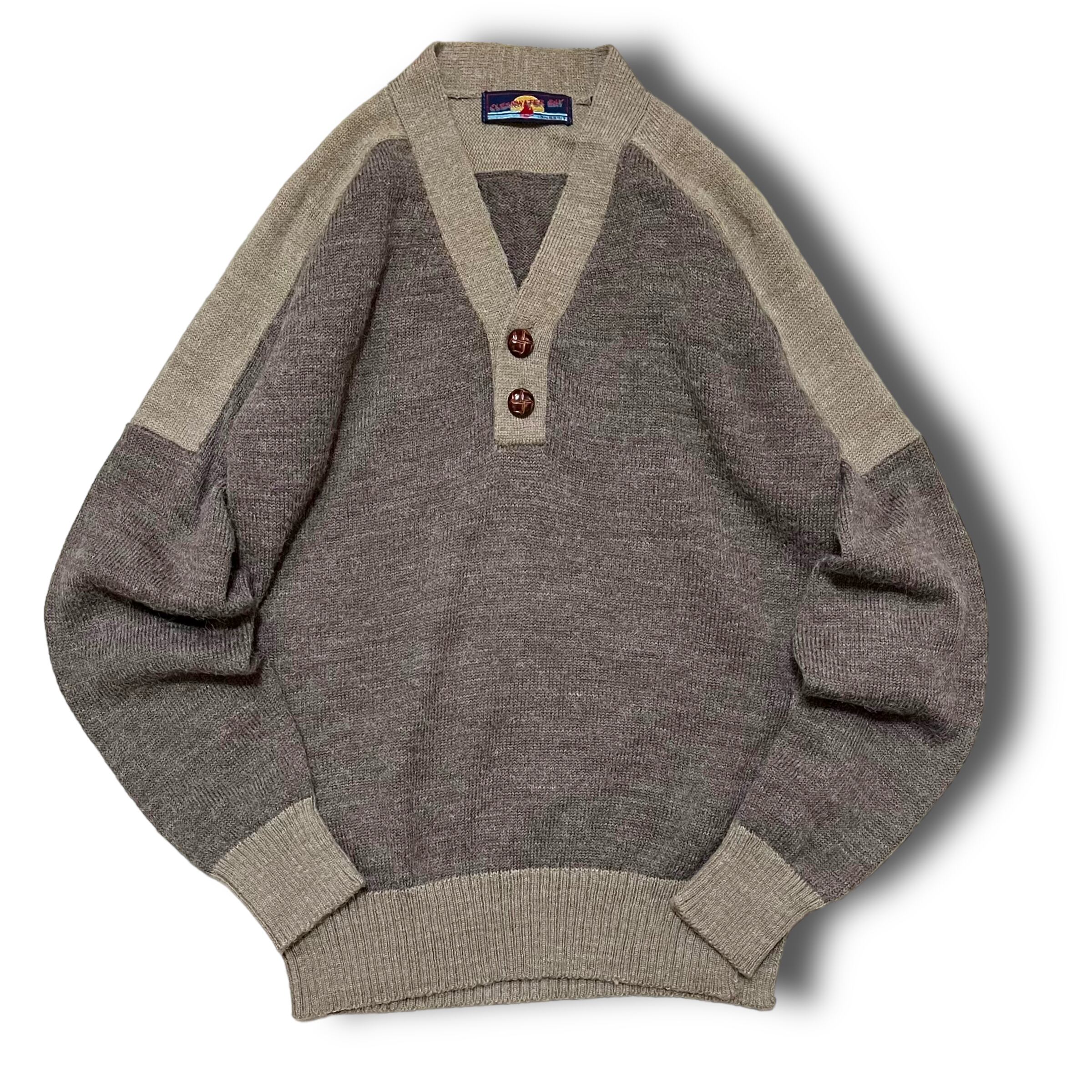 【Vintage】2トーンカラーヘンリーネックニットセーター
