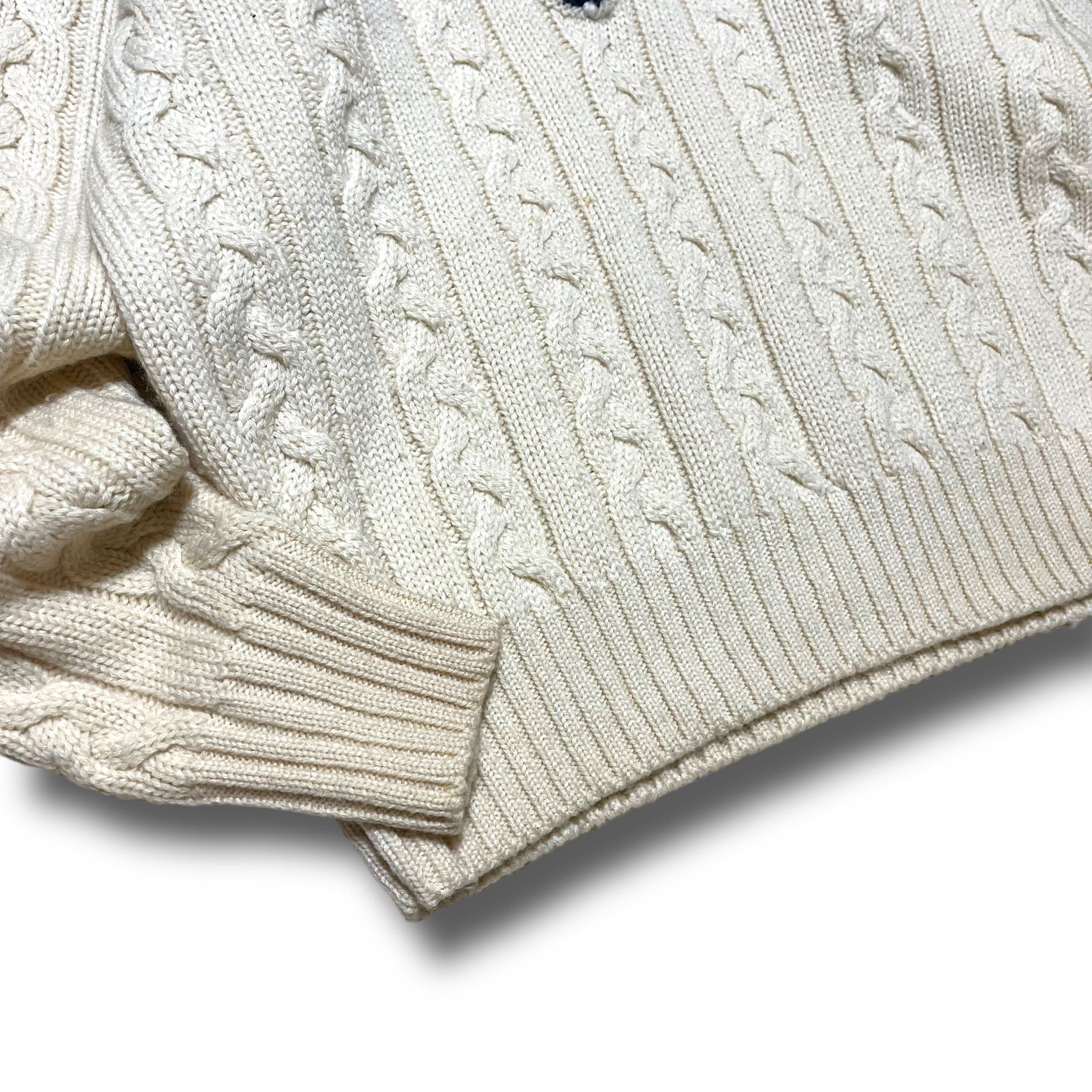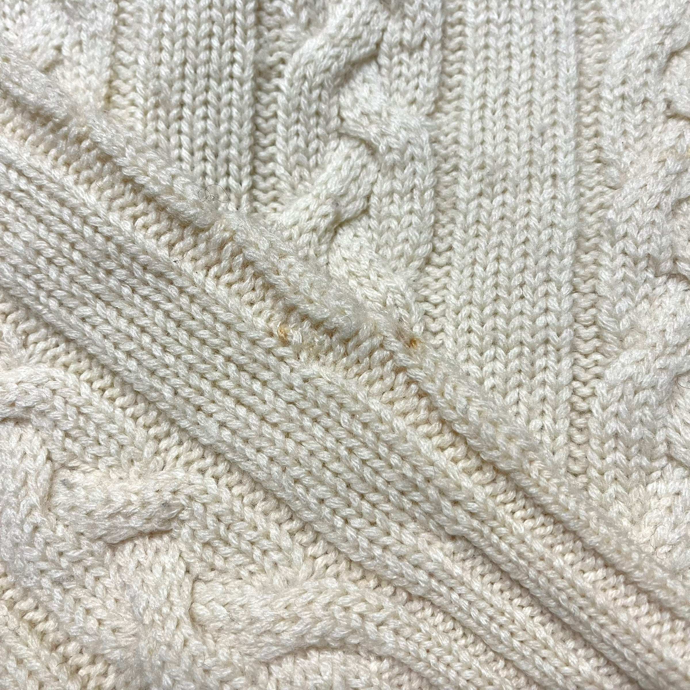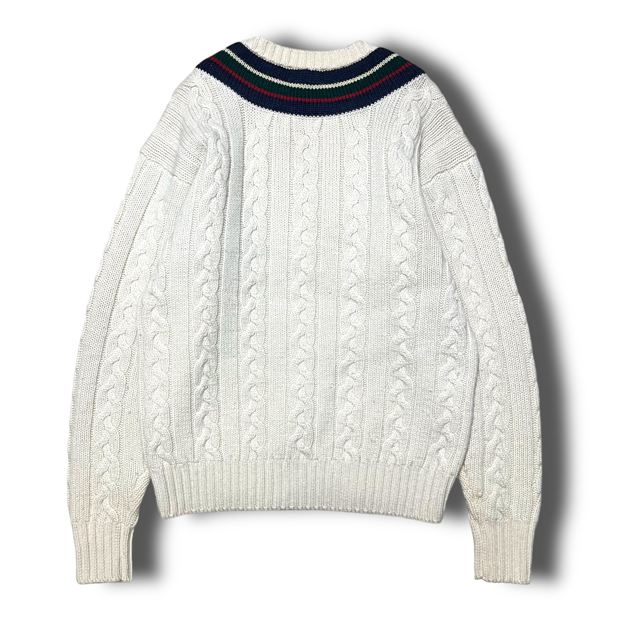 アイボリーベースにチルデンニットらしいラインの入ったクラシックなスタイルのニット