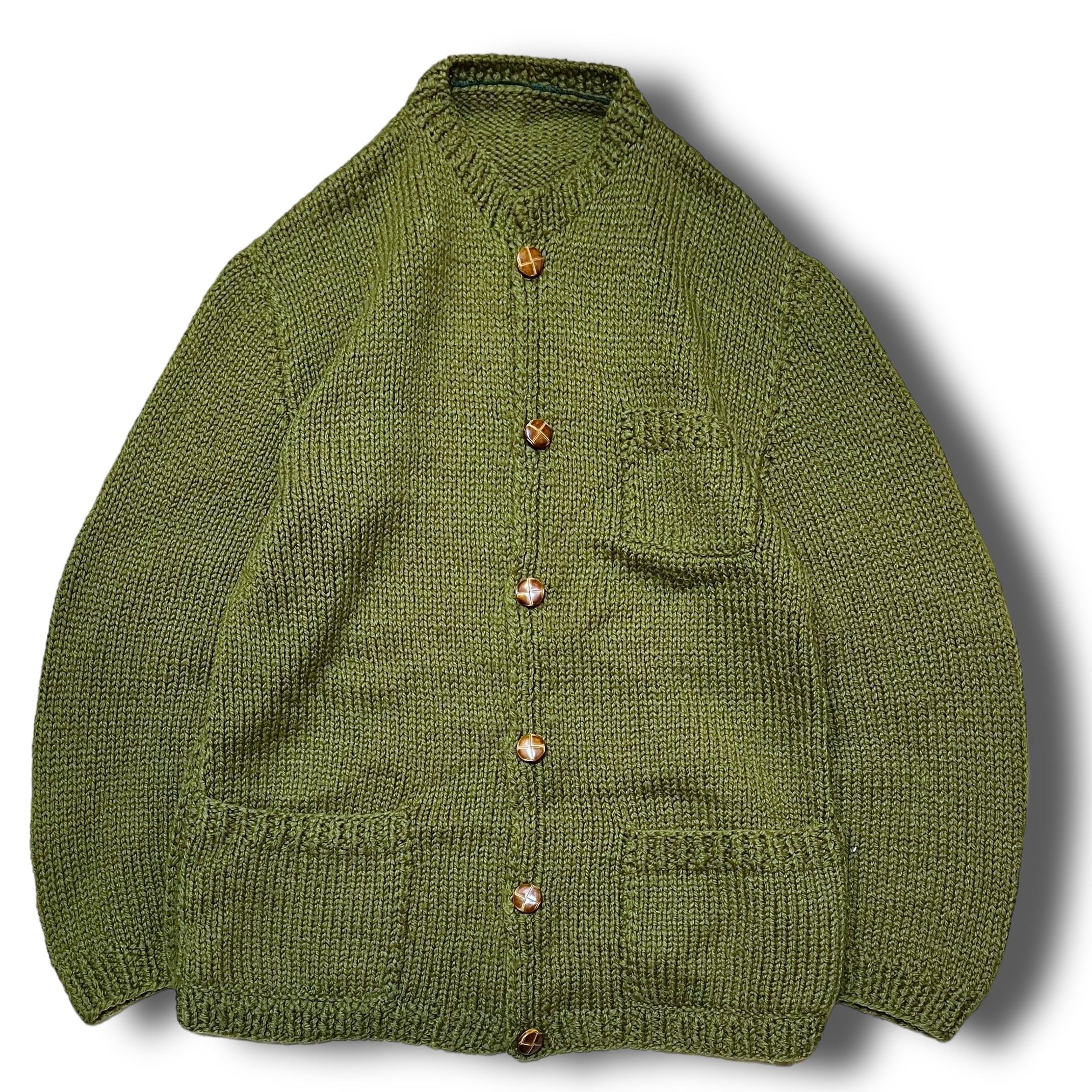 【Vintage】ノーカラーハンドニットカーディガン