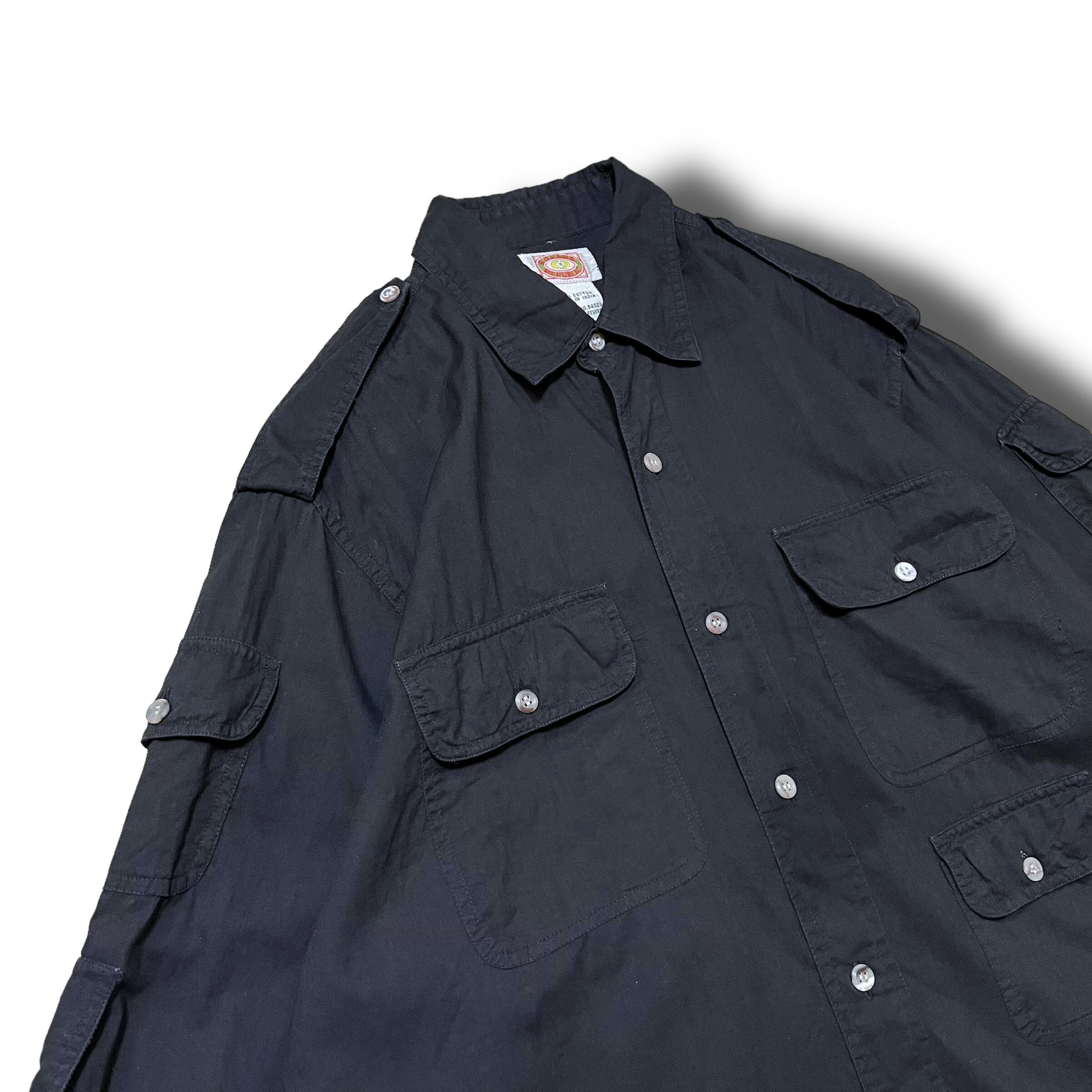 ブラックカラーのサファリシャツはほとんど見かけることもないので