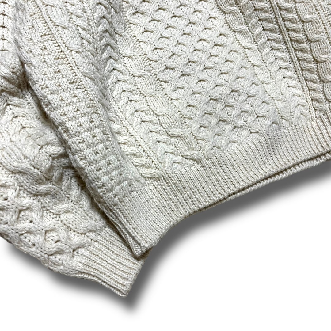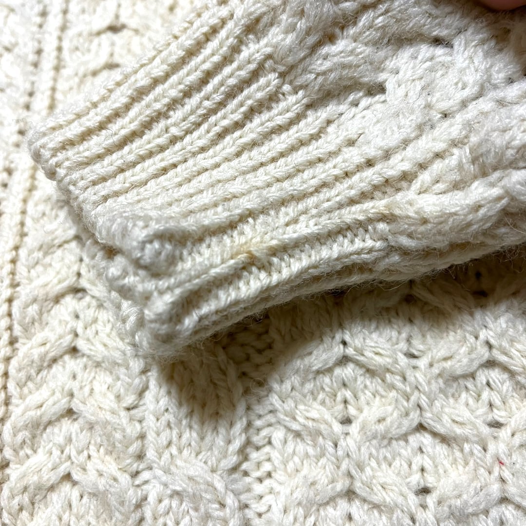 ニットの本場アイルランド製でほっこりとした温かみを感じられる雰囲気はアランニットの最大の魅力かと思います。