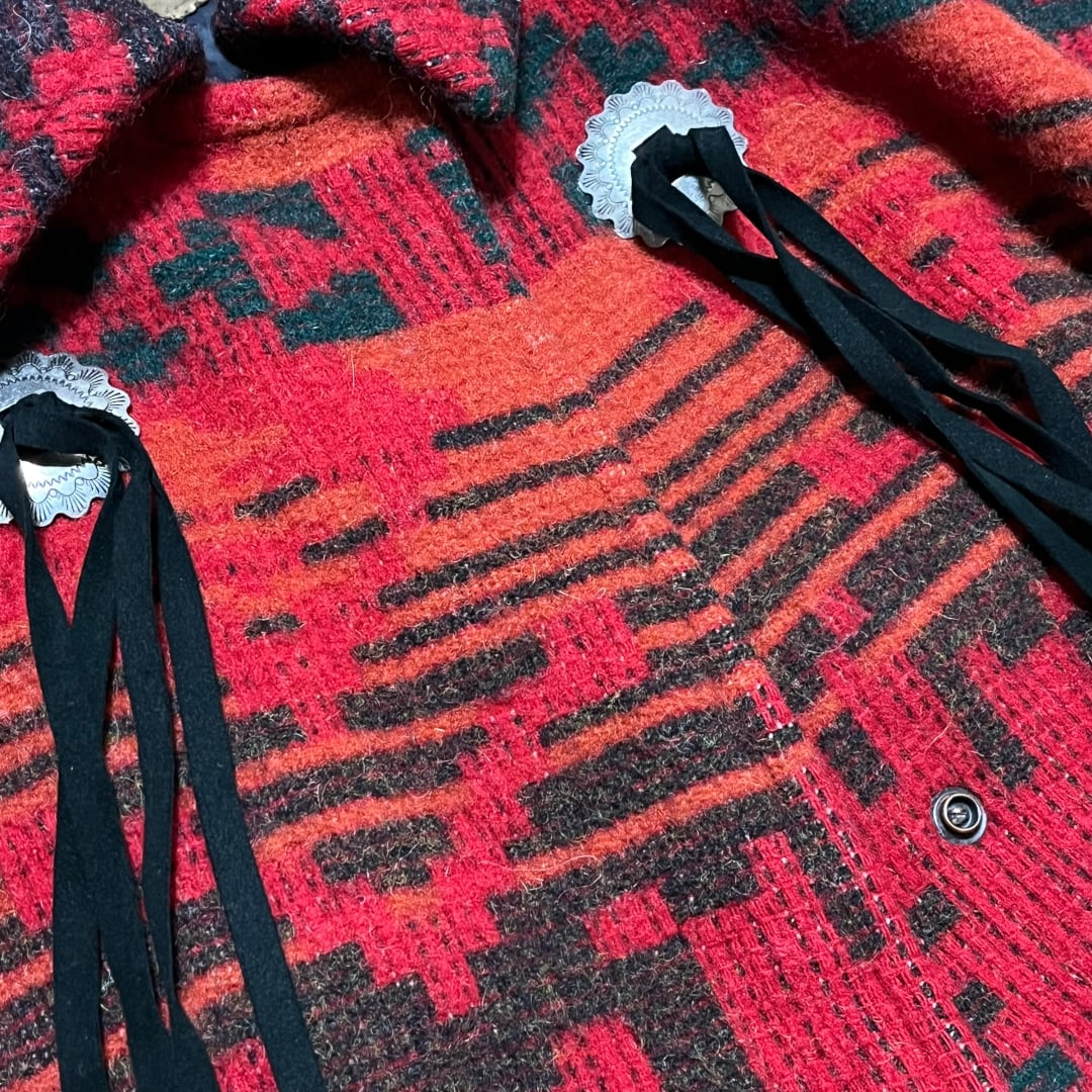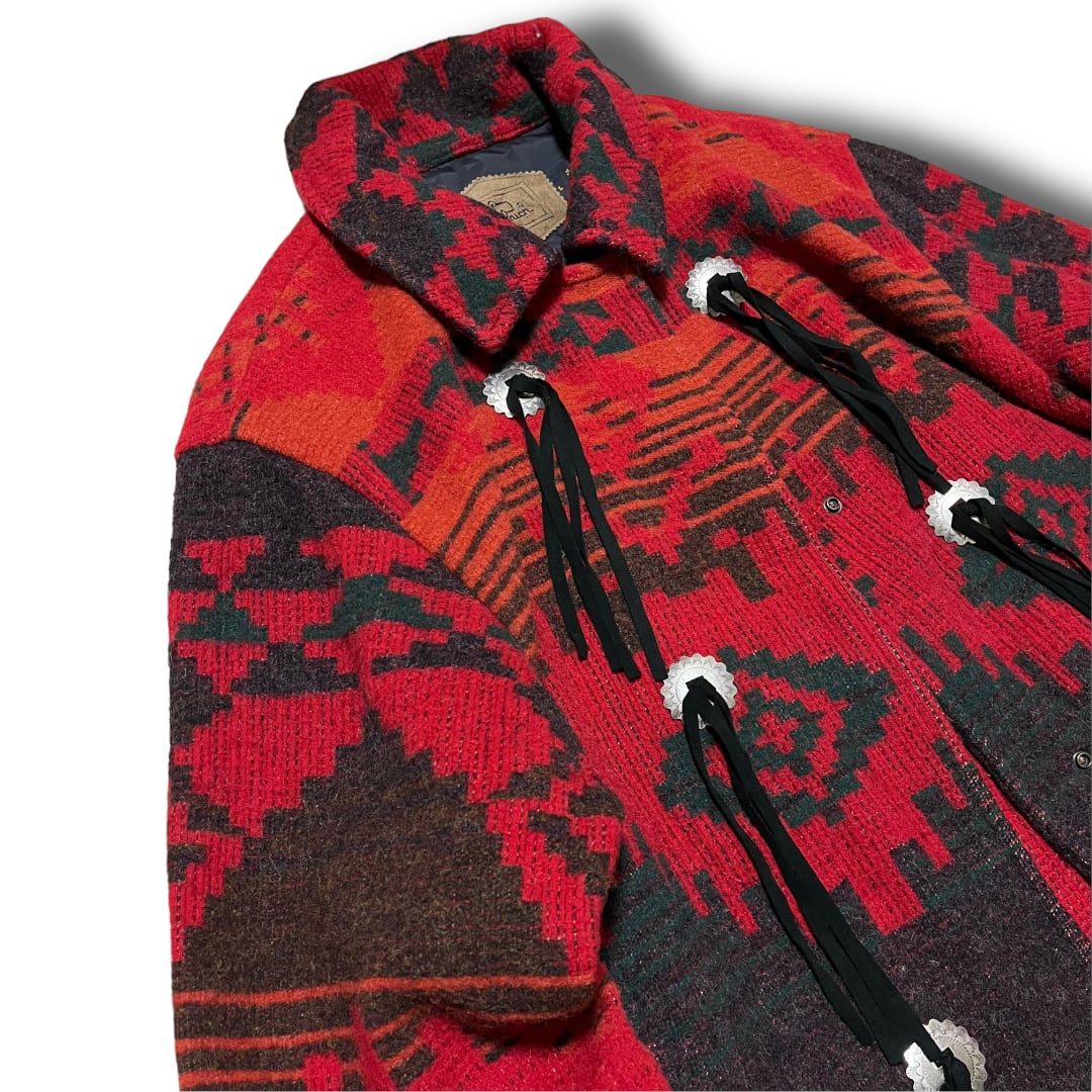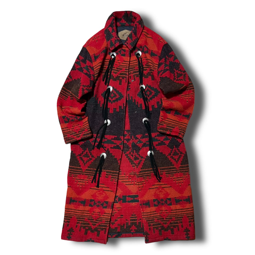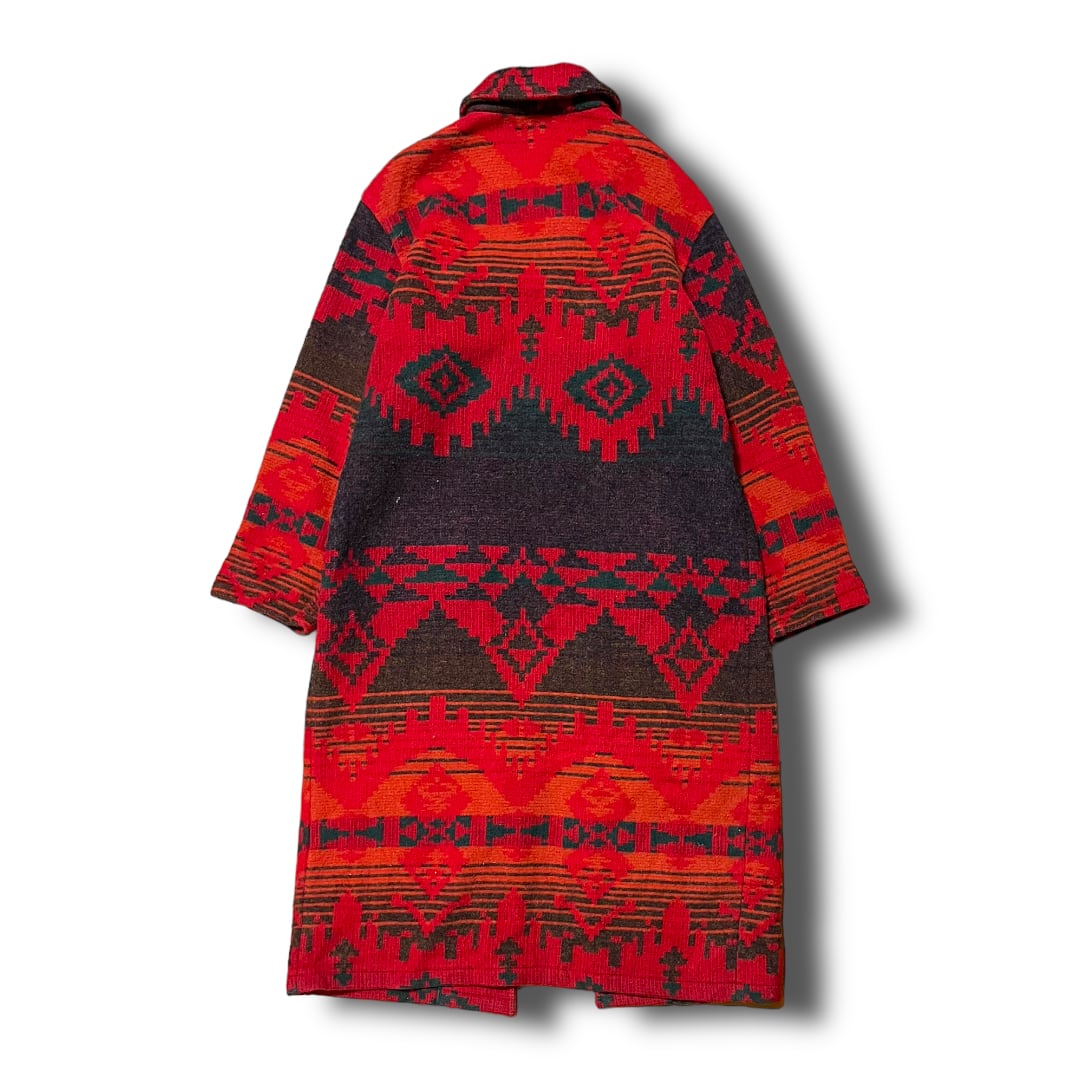 大判のネイティブ柄が描かれたブランケット生地を使用したウールコート