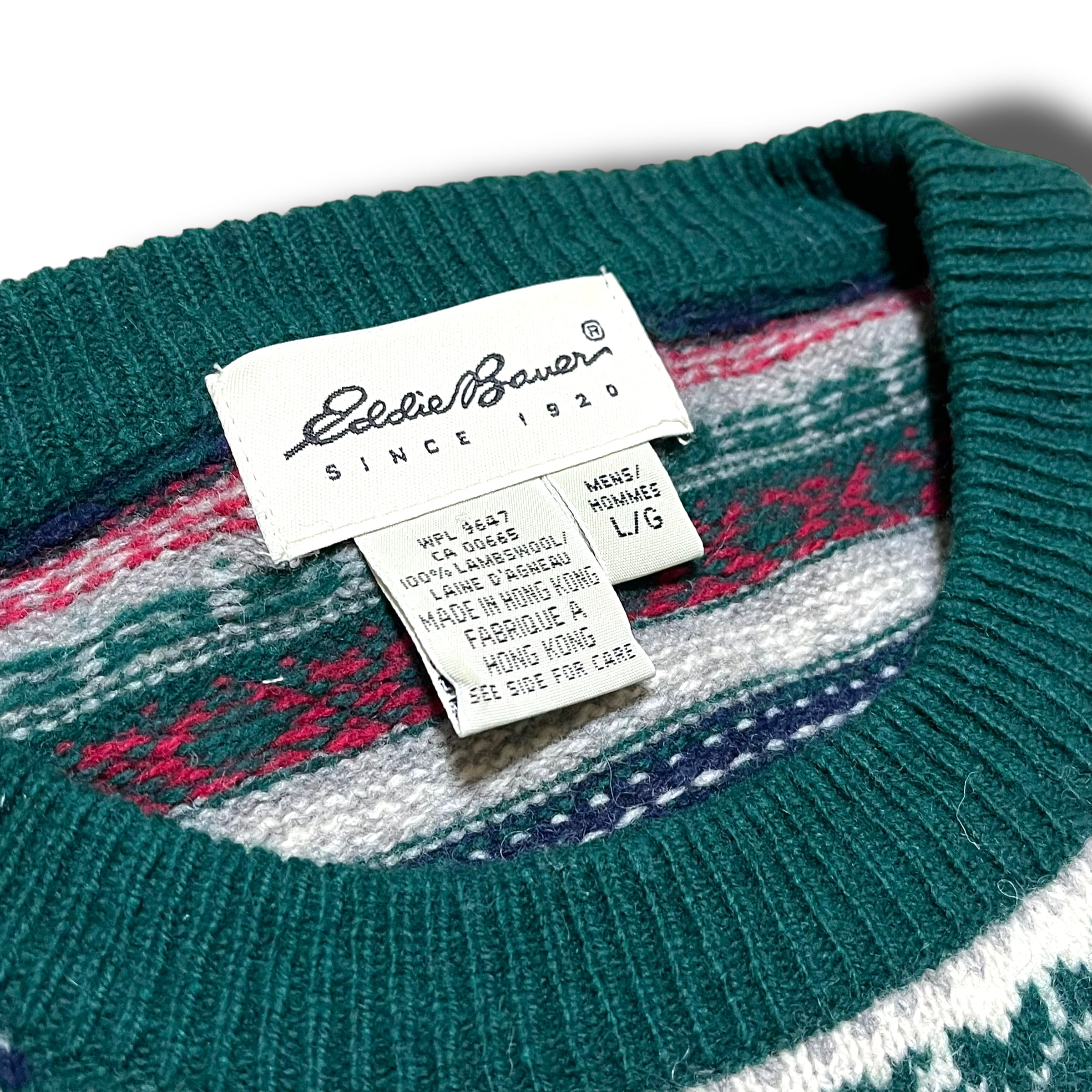 【Eddie Bauer】1990's フェアアイルラムウールニットセーター