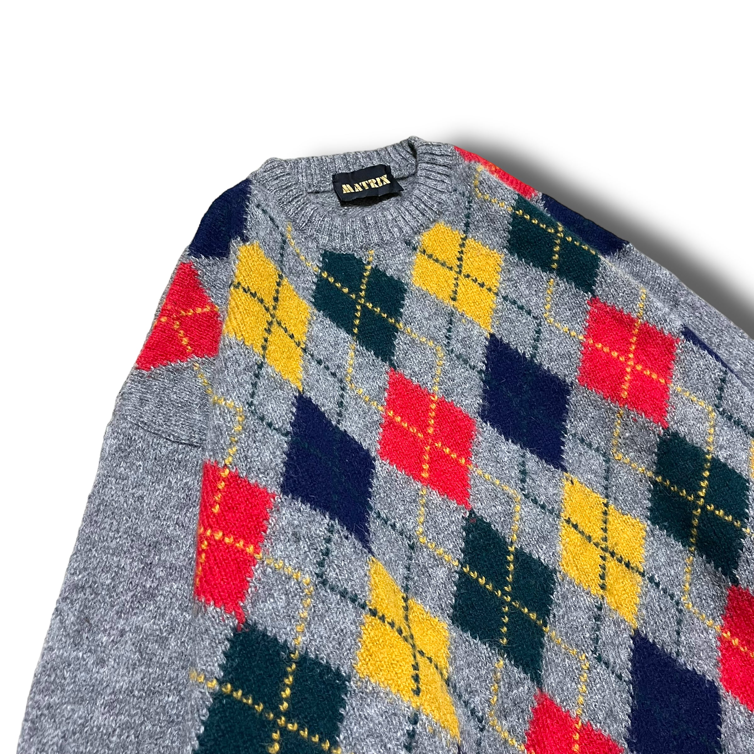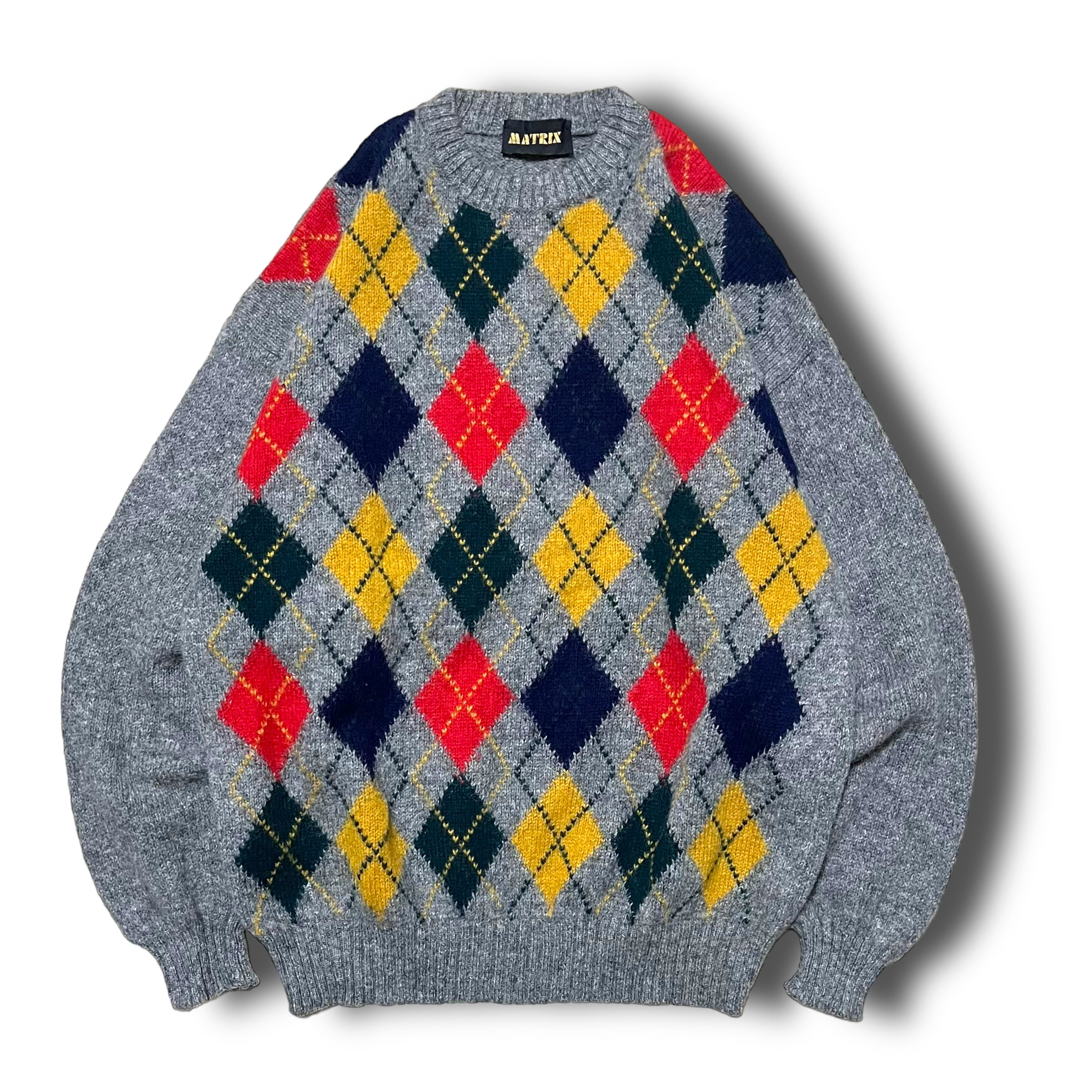 【Vintage】シェットランドウールアーガイルニットセーター MADE IN ITALY