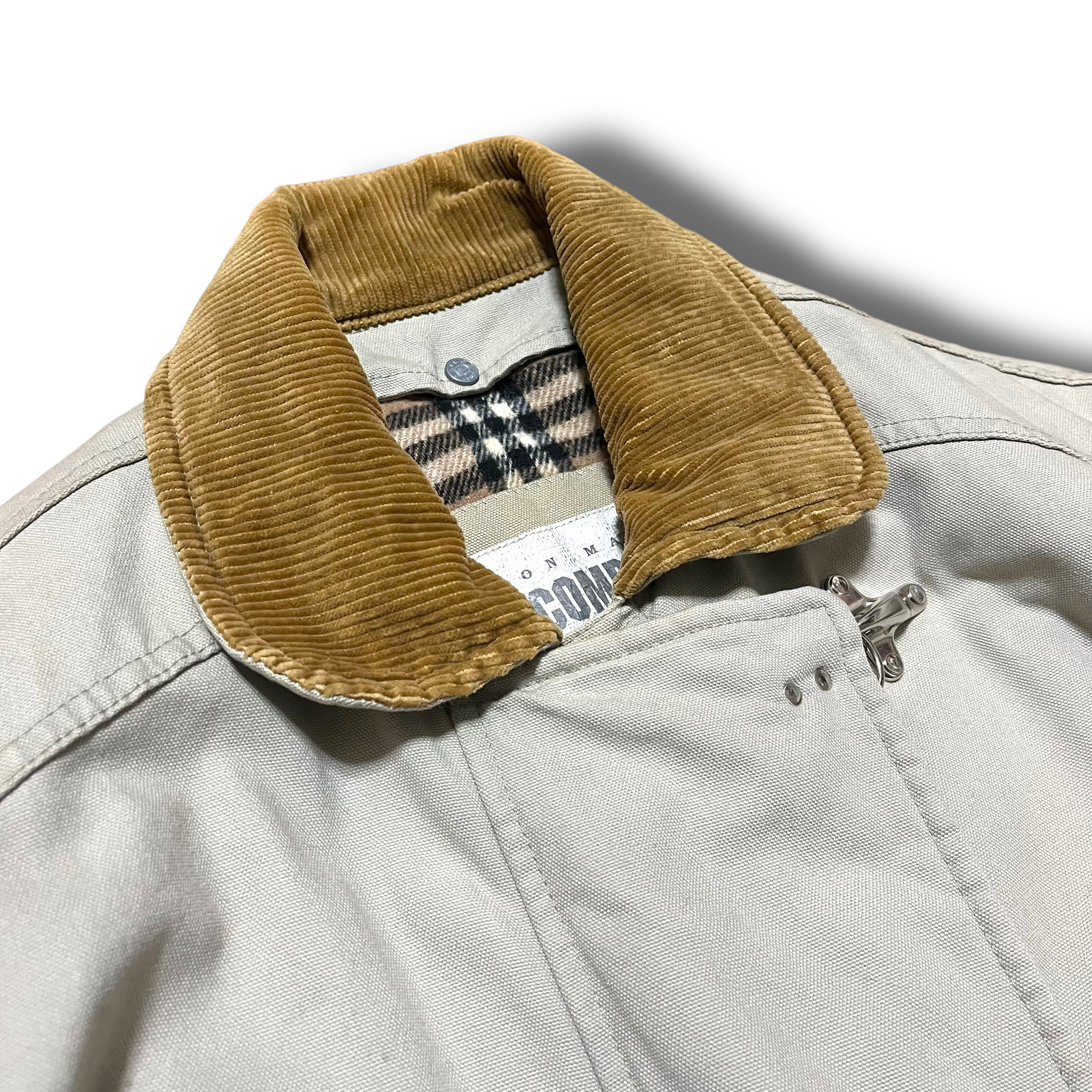 襟はコーデュロイ、袖口はレザーに切り替えがされています。