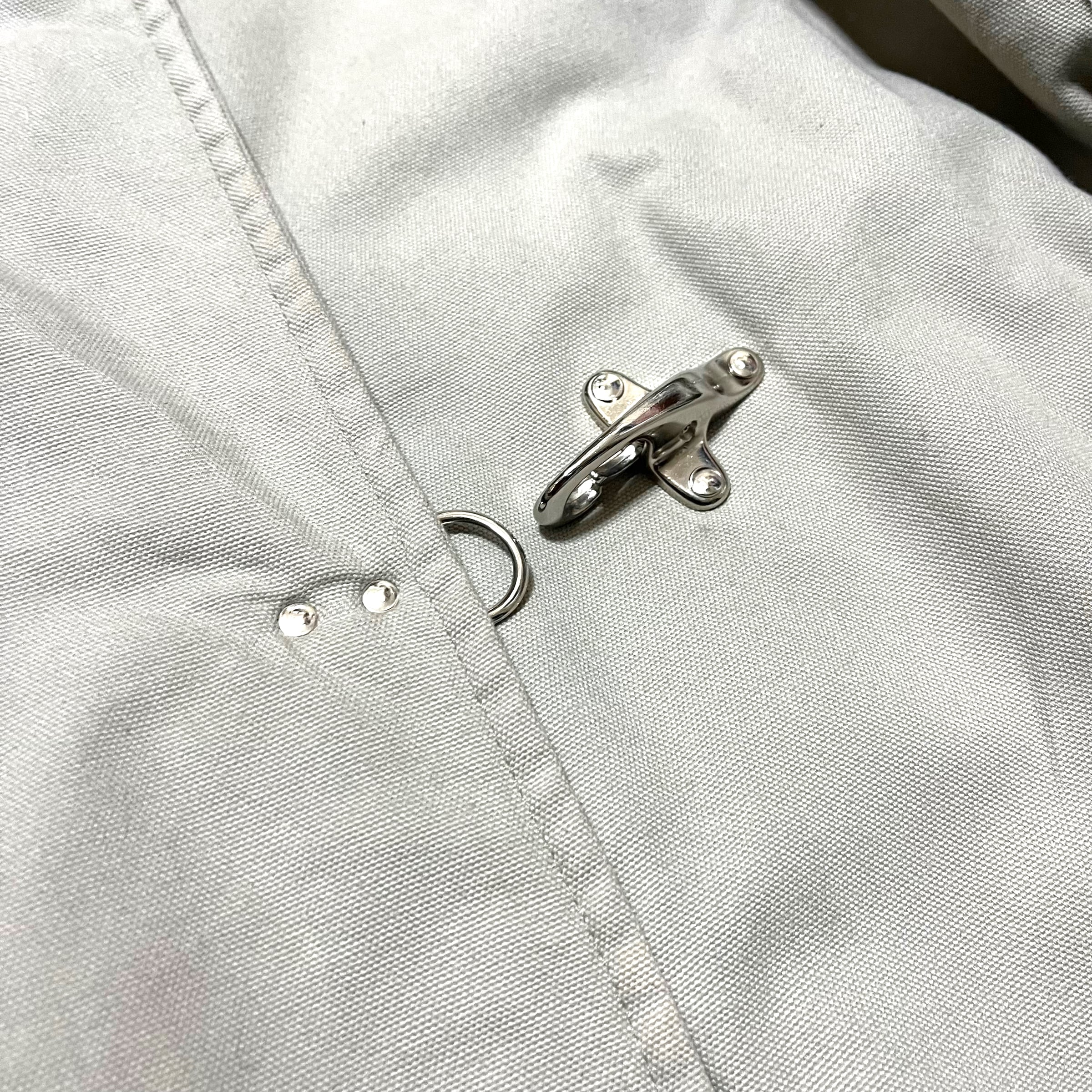 ファイヤージャケットの特徴的なフックタイプの金具が取り付けられる印象的なジャケット