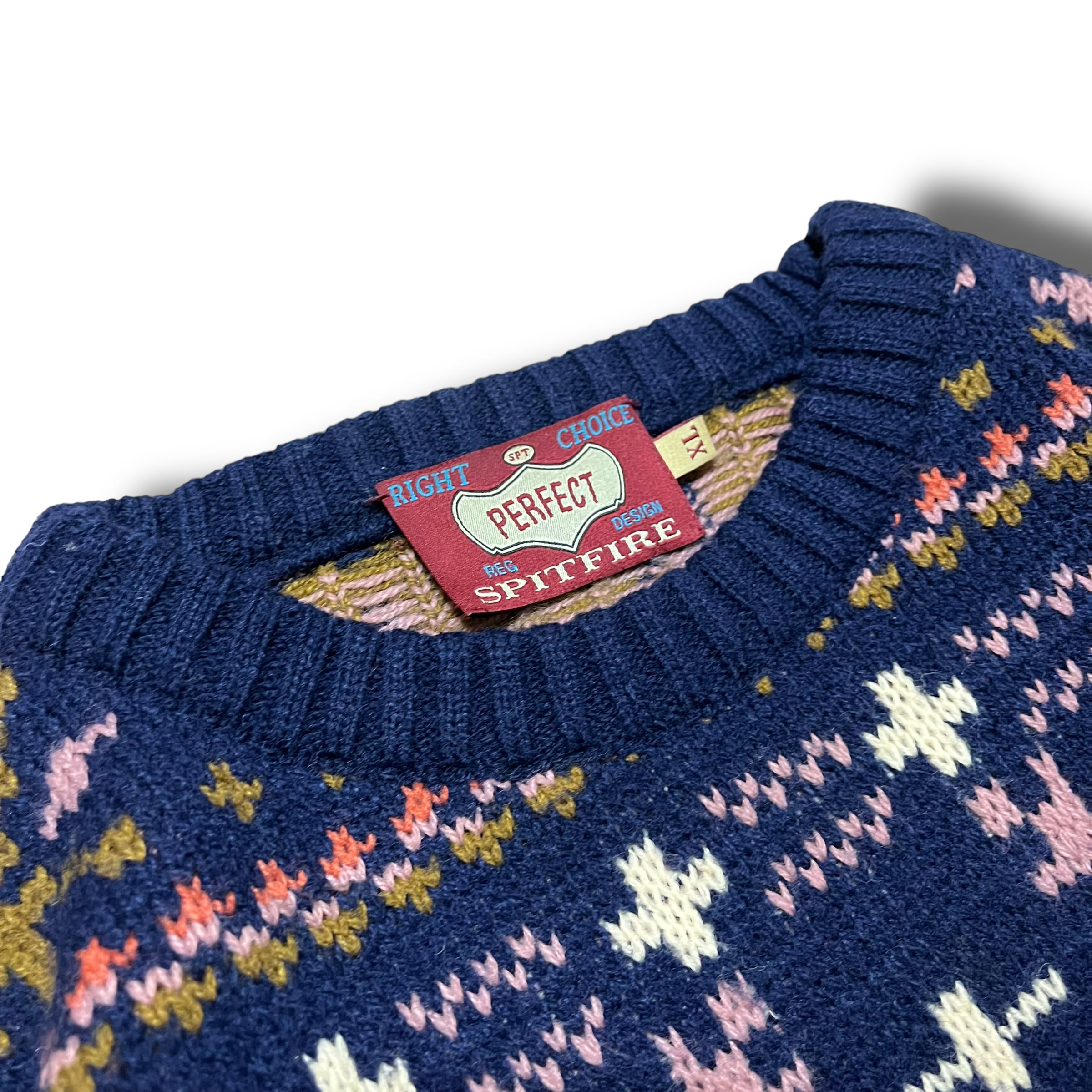 ネイビーベースにカラフルな色使いがとても魅力的なニット