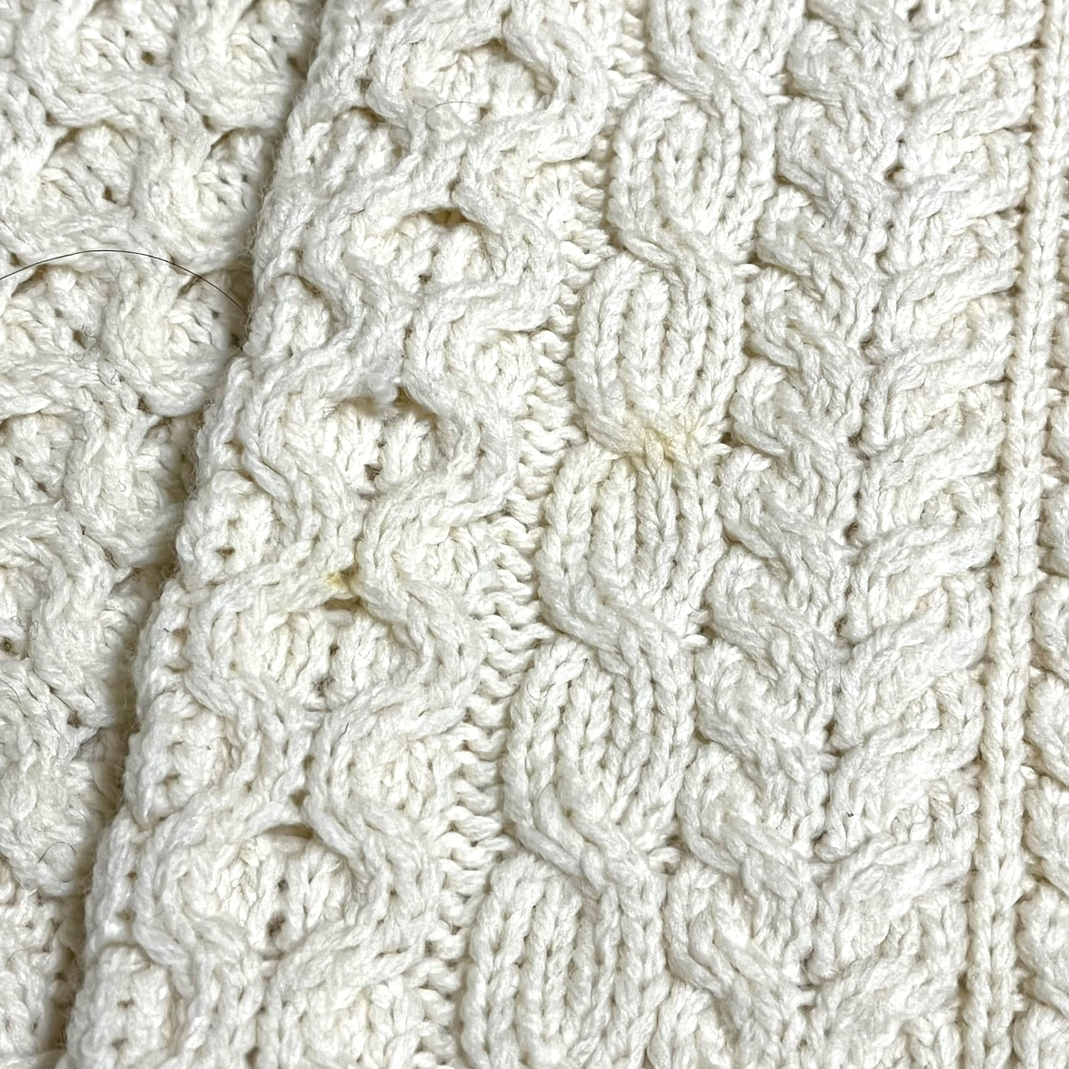 ニットの本場アイルランド製でほっこりとした温かみを感じられる雰囲気はアランニットの最大の魅力かと思います。