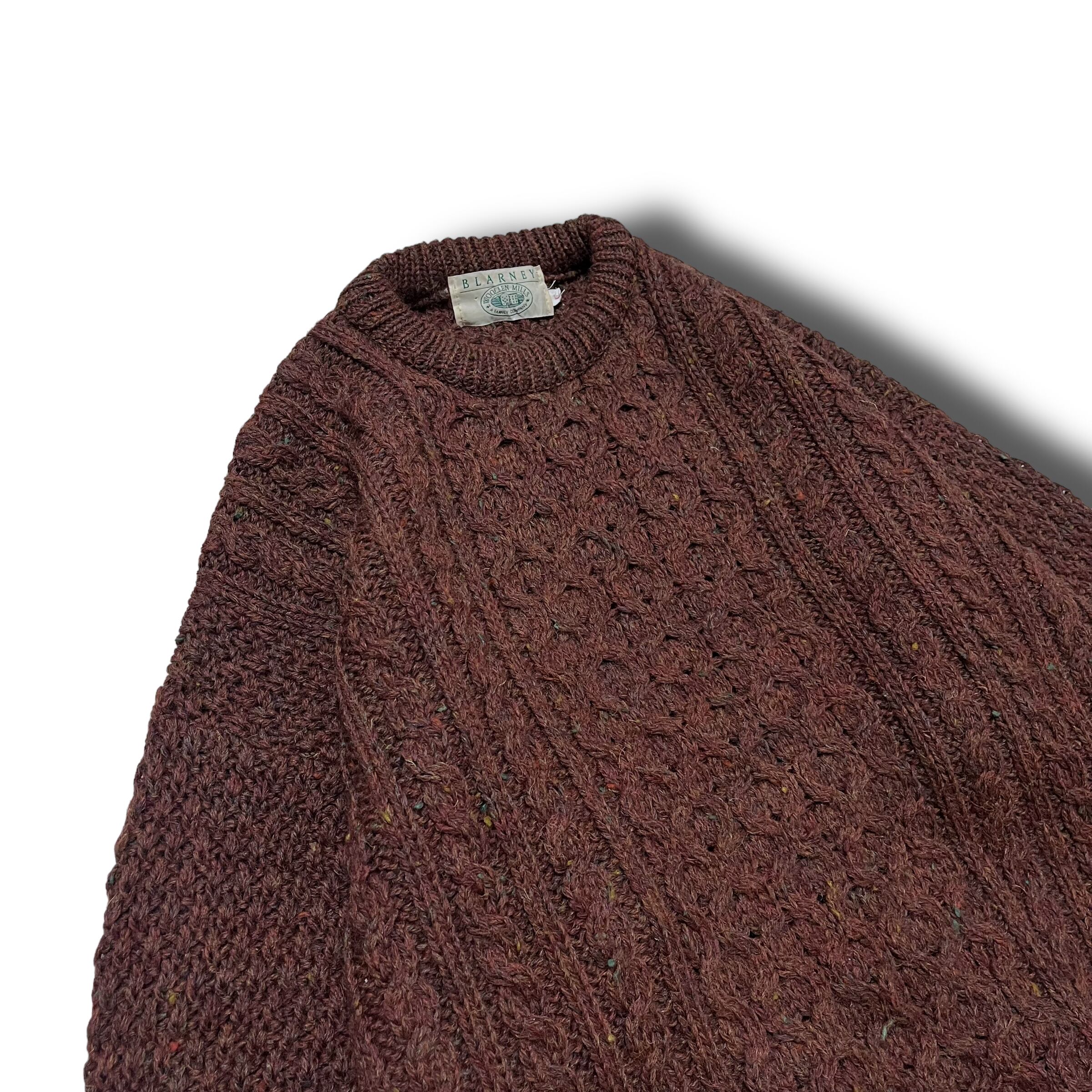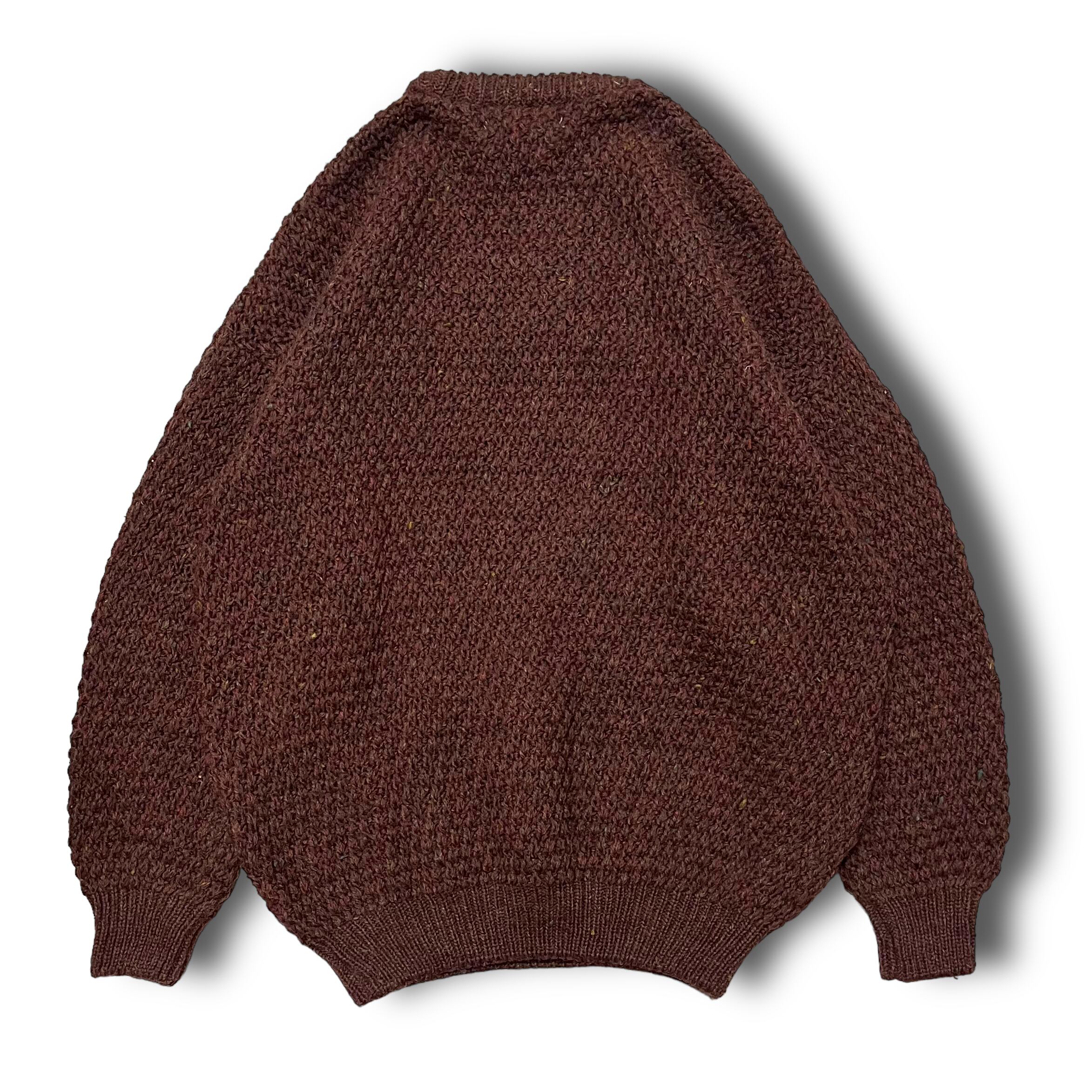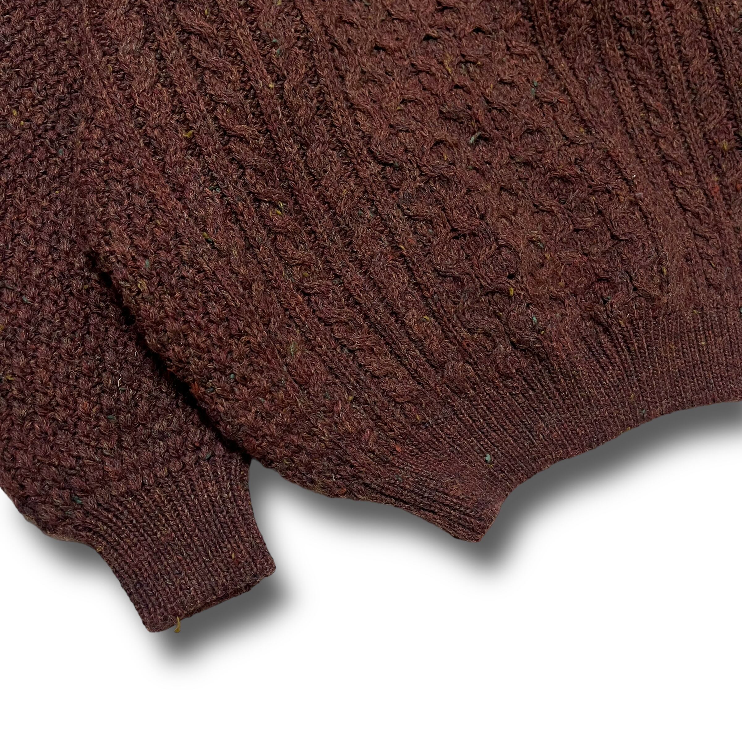 赤みのあるブラウンカラーにカラフルな色のカラーネップの入ったとても雰囲気の良いアランニット