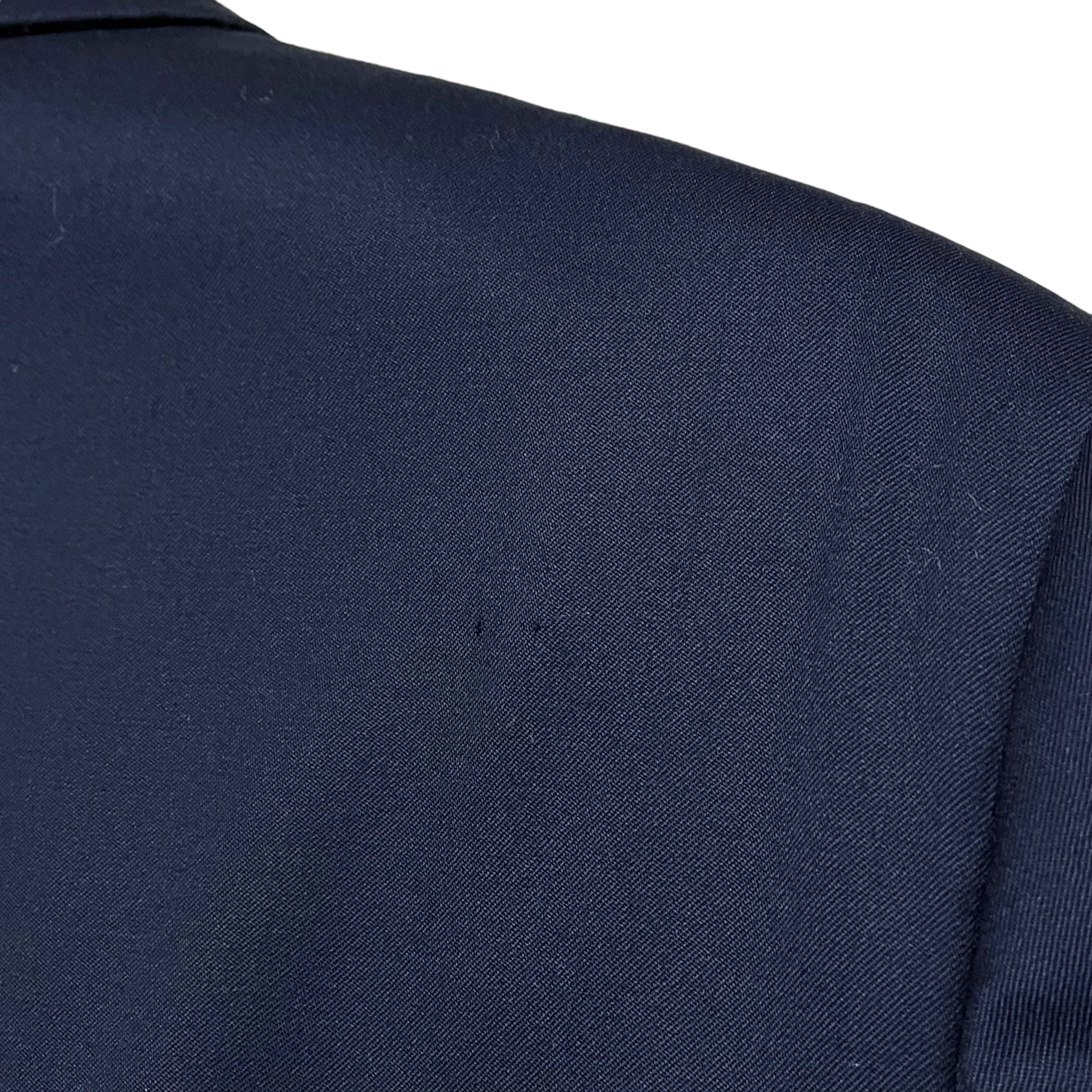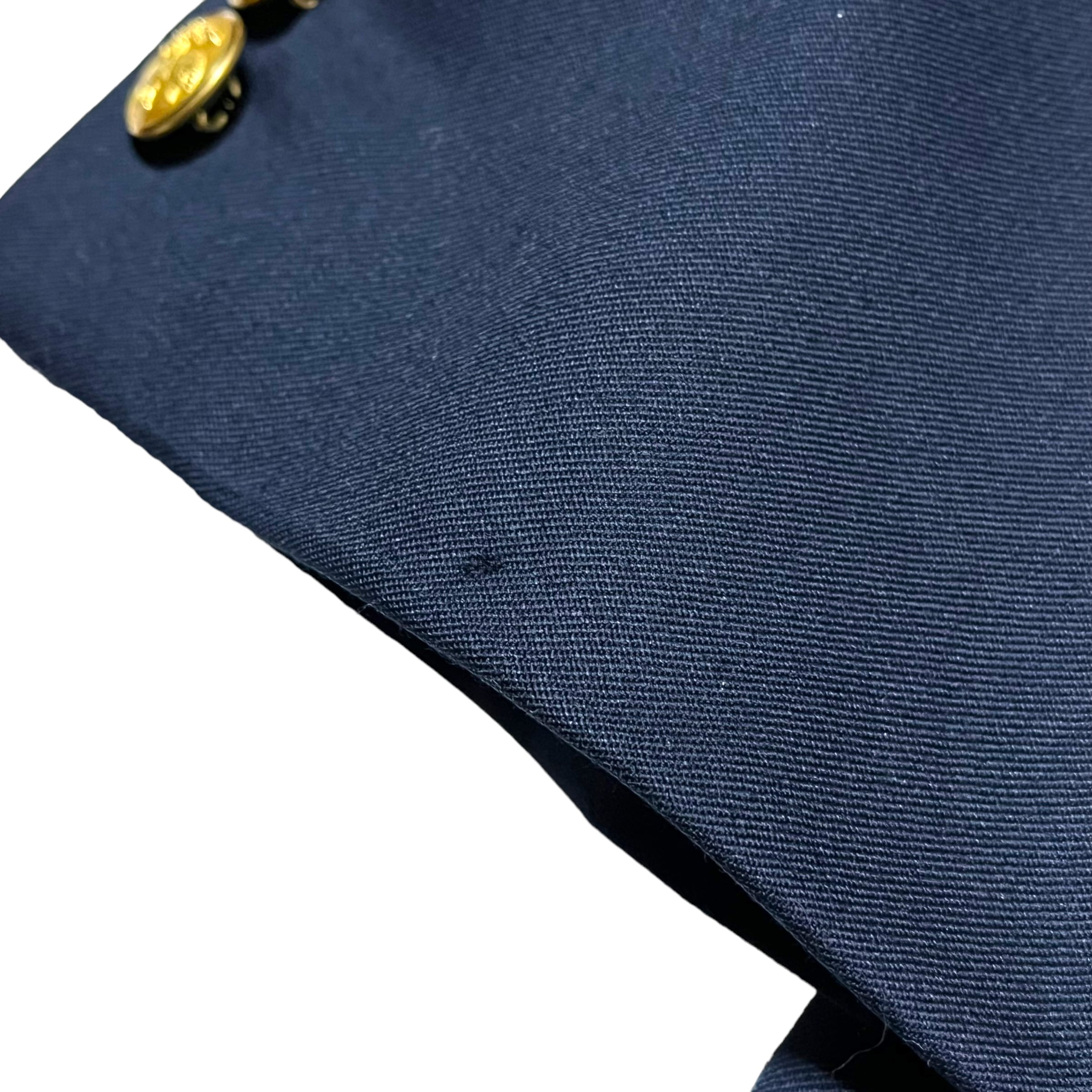 ダークネイビーのウールにブランドロゴの入った金ボタンのクラシックなスタイル