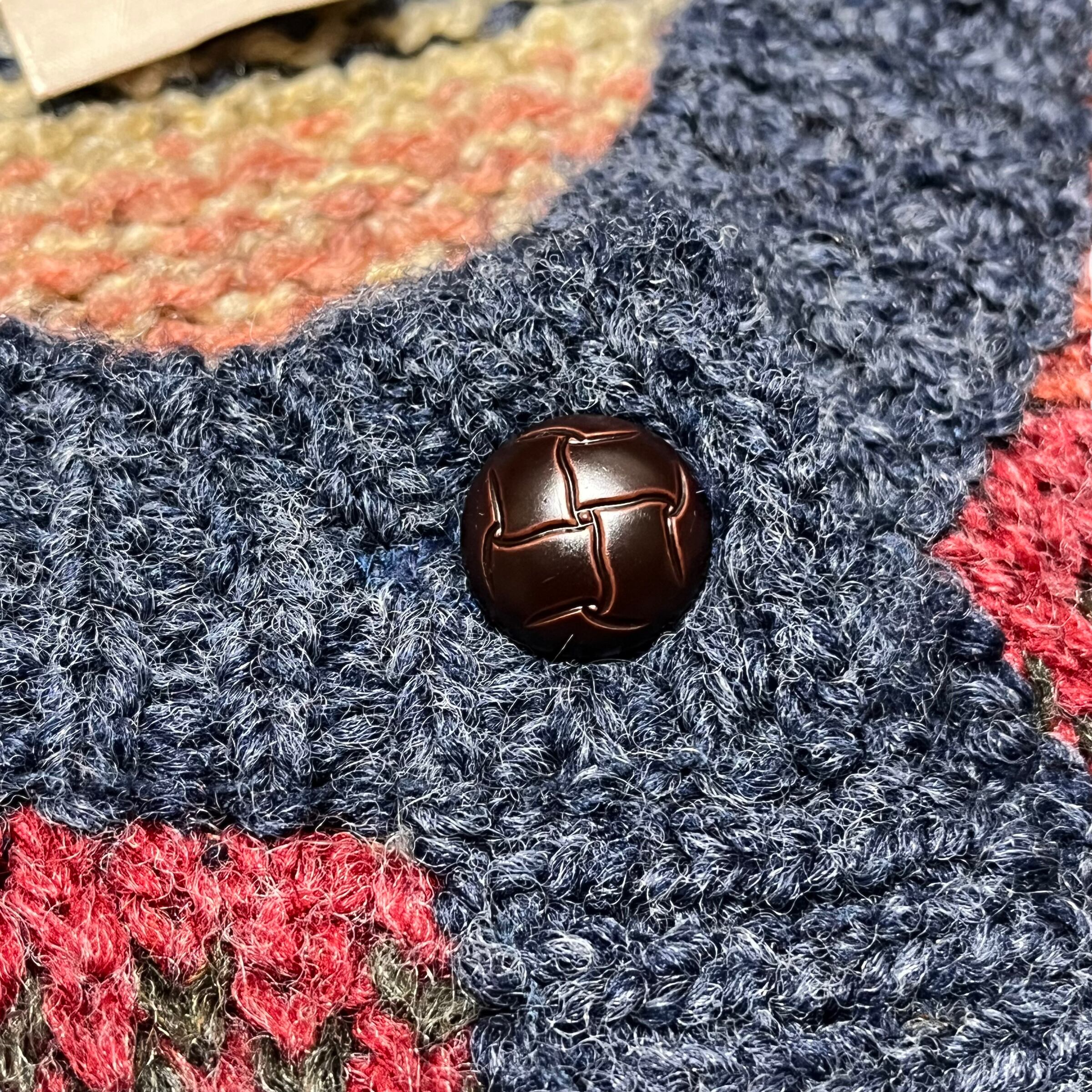 ボタンにはクルミボタンが使われクルーネックのタイプの襟も嬉しいポイントです。