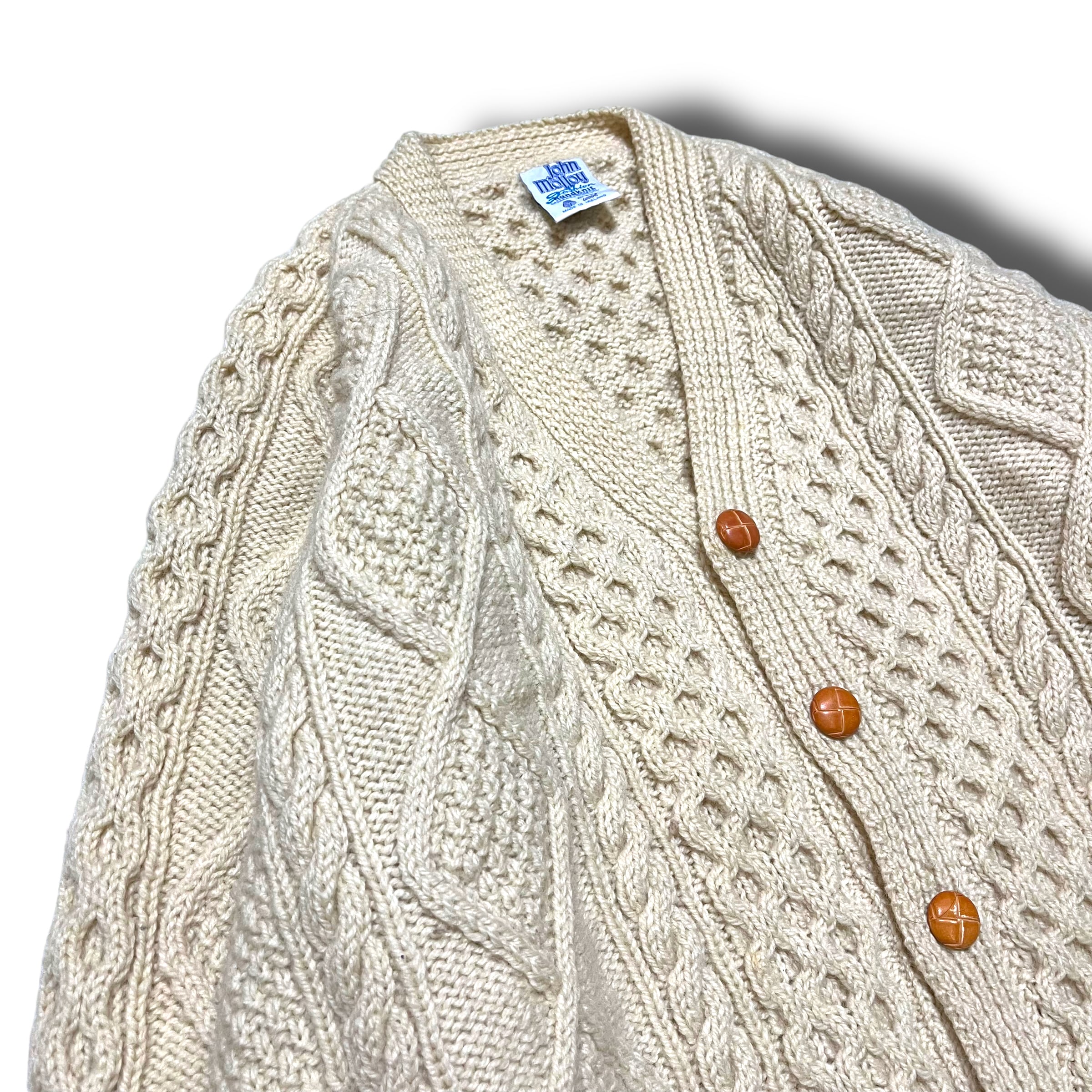 【John molloy】ラグランスリーブハンドメイドアランニットカーディガン MADE IN IRELAND