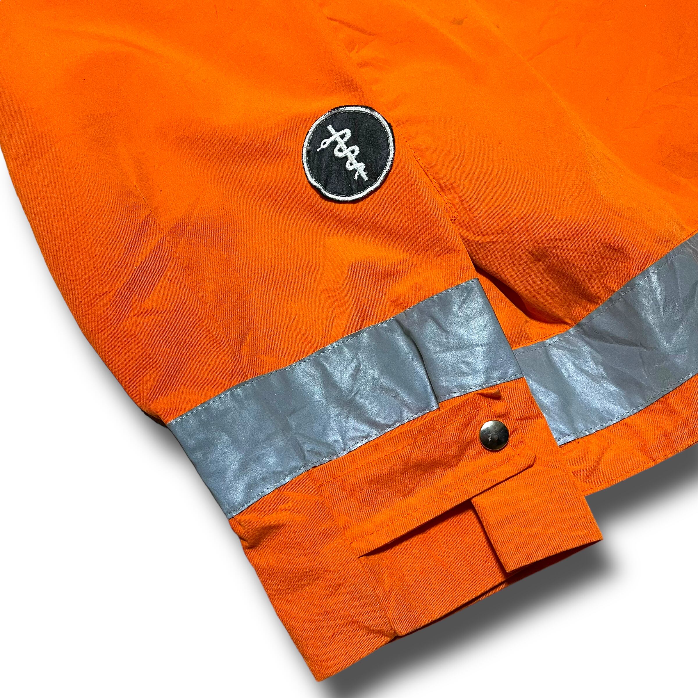 発色の良いオレンジに袖口と裾にリフレクターのついたアクセントになってくれるアイテム
