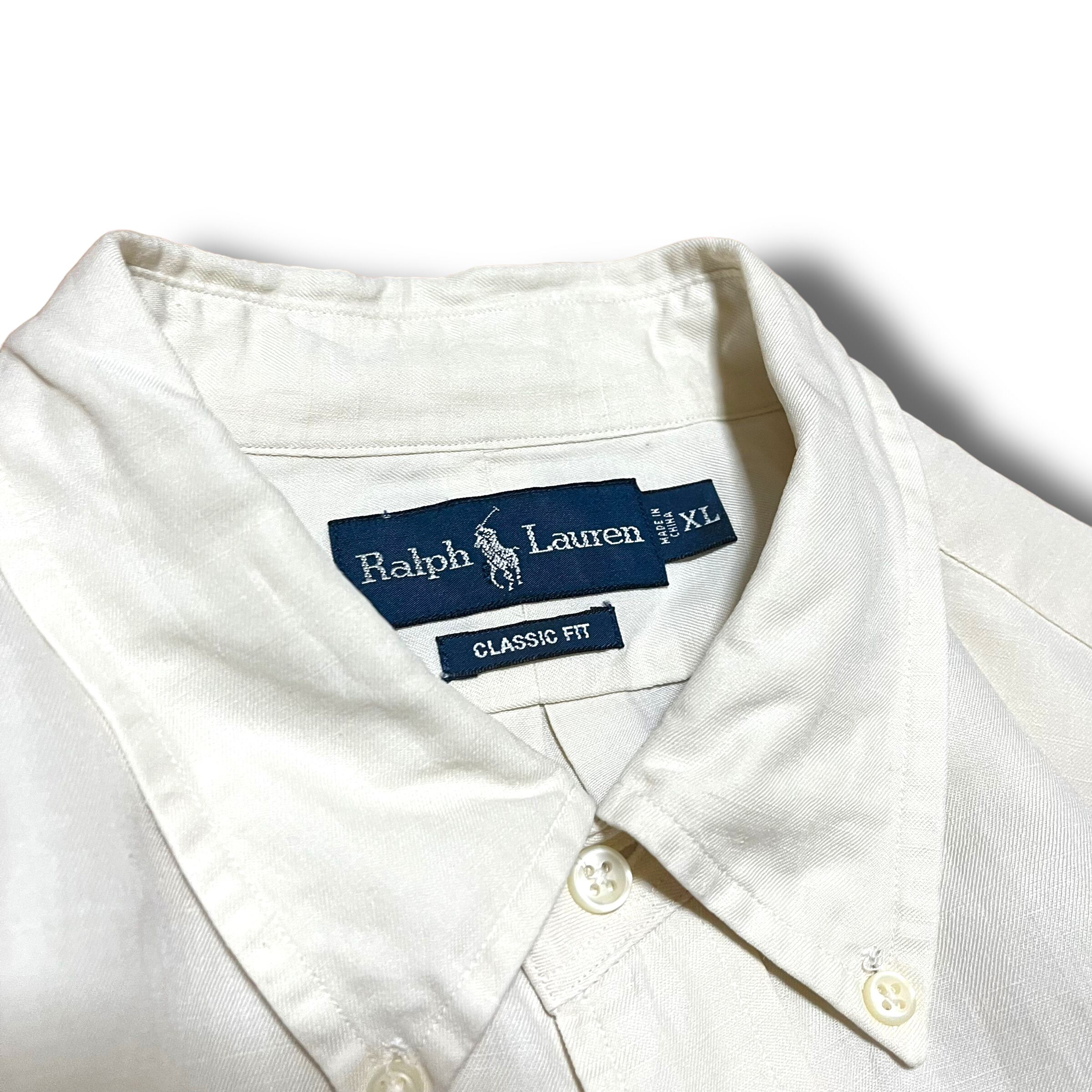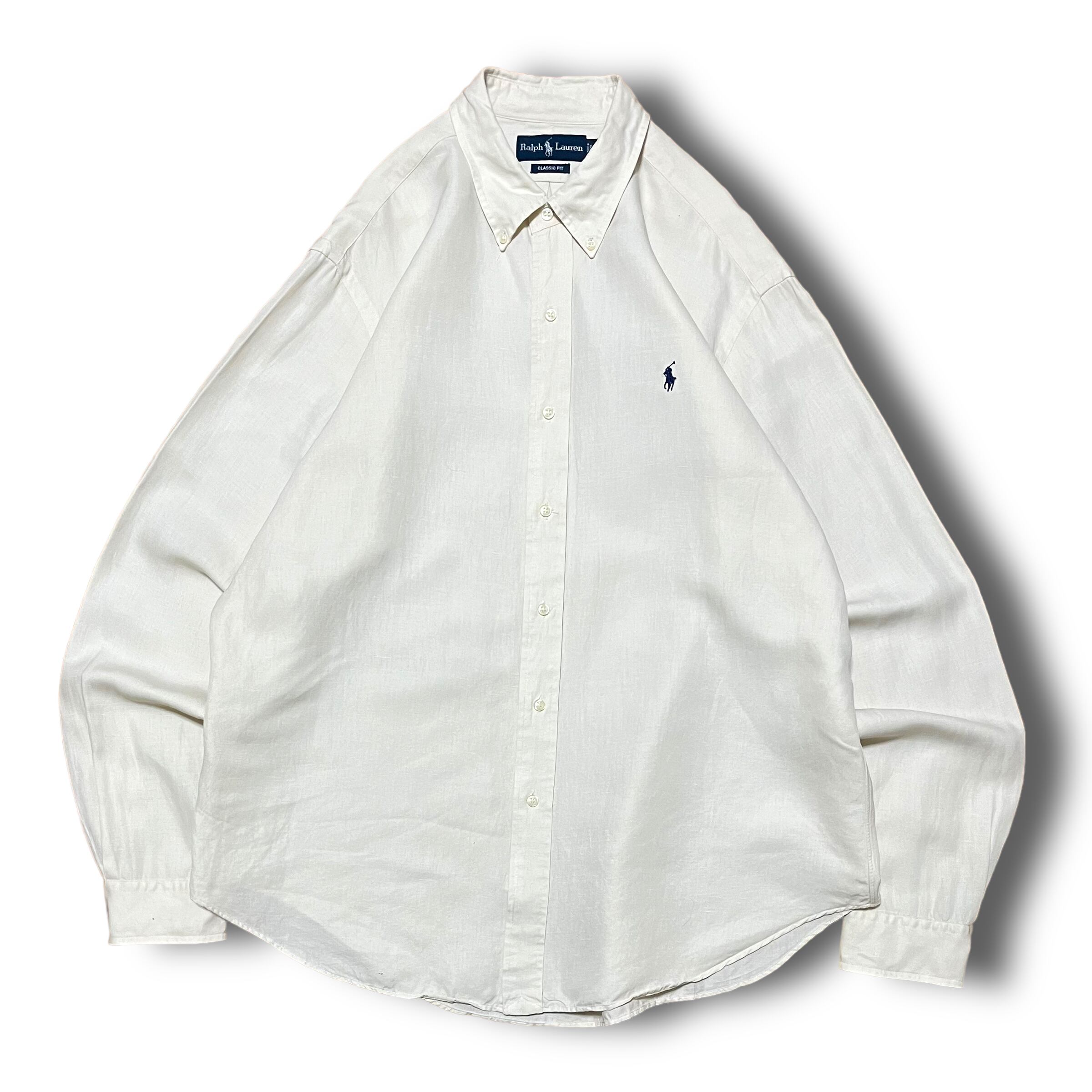 【Ralph Lauren】シルクリネンボタンダウンシャツ ホワイト