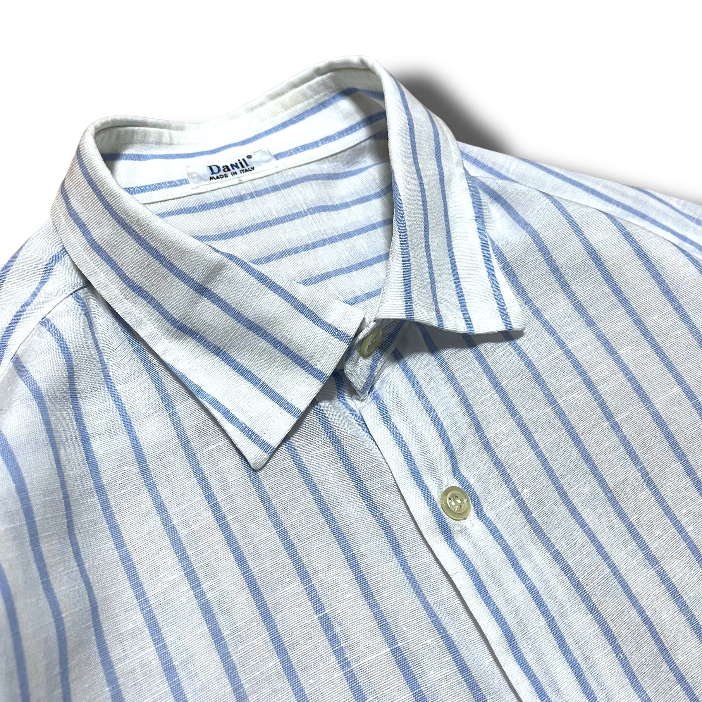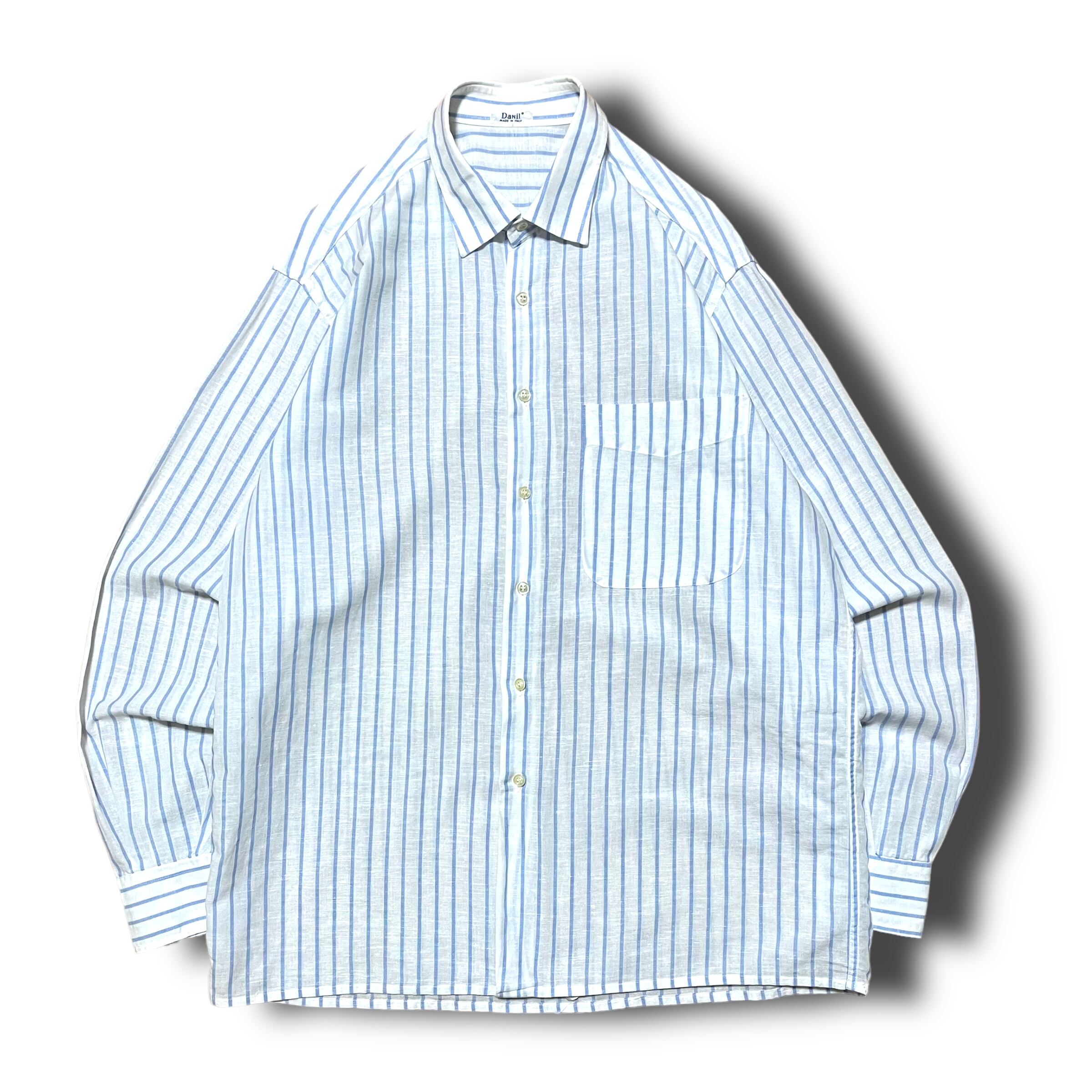 【Used】ワイドカラーストライプリネンシャツ MADE IN ITALY