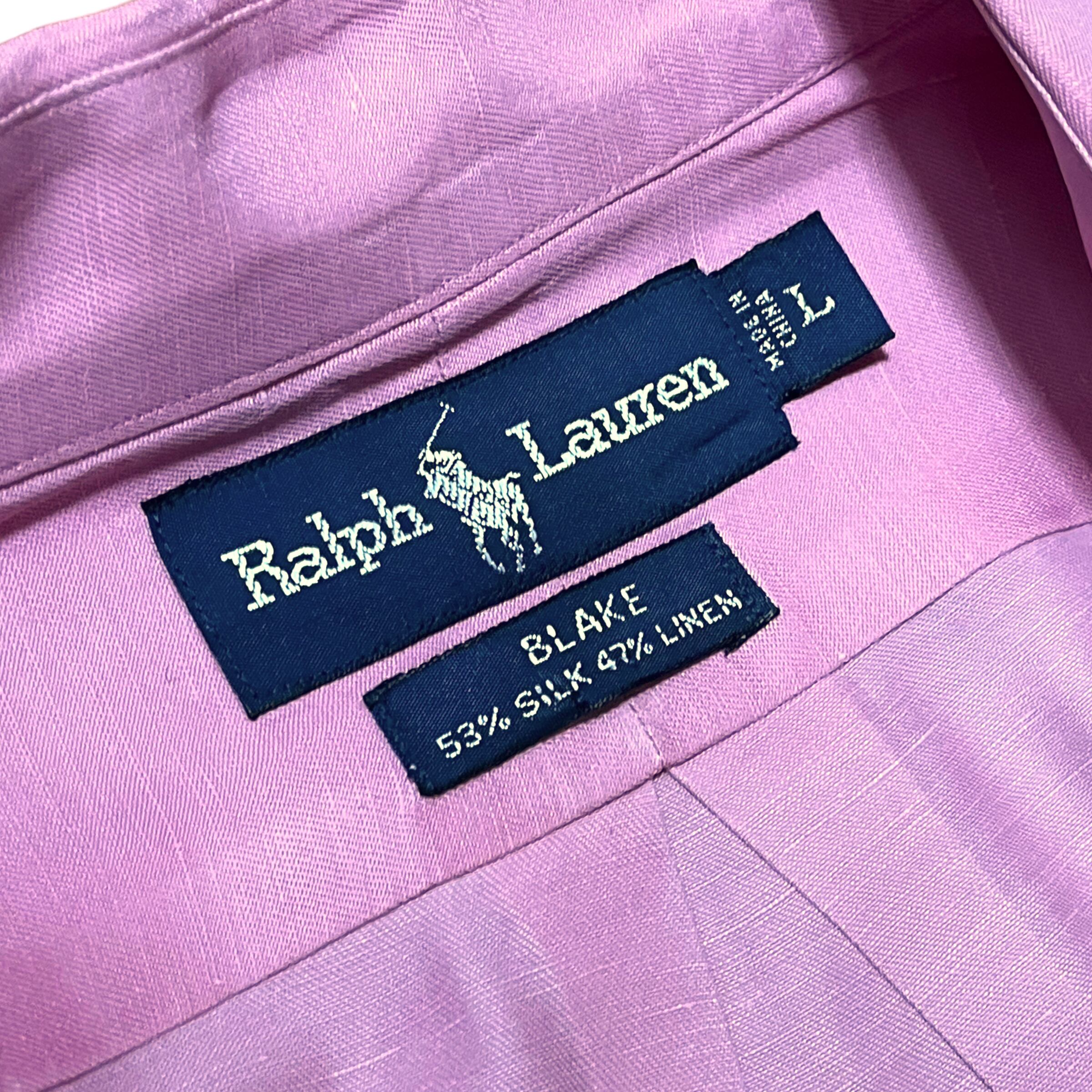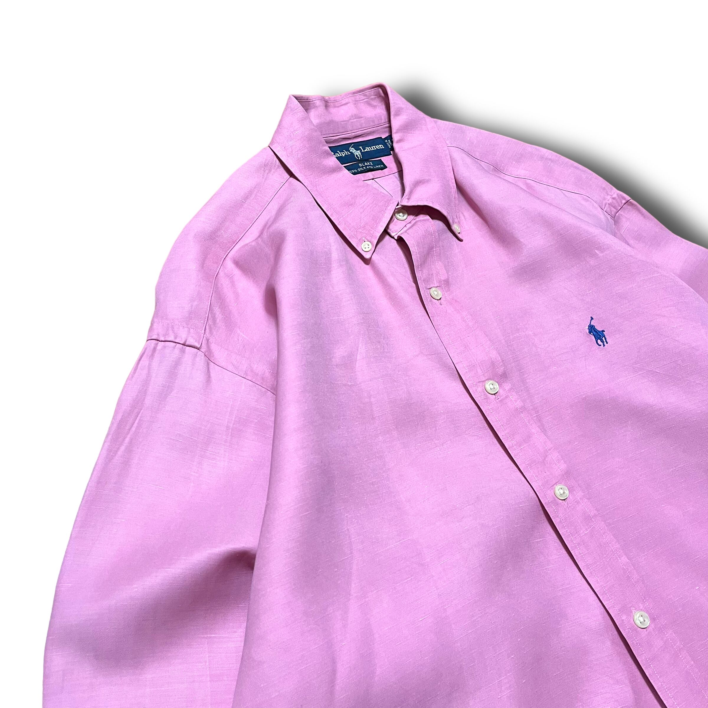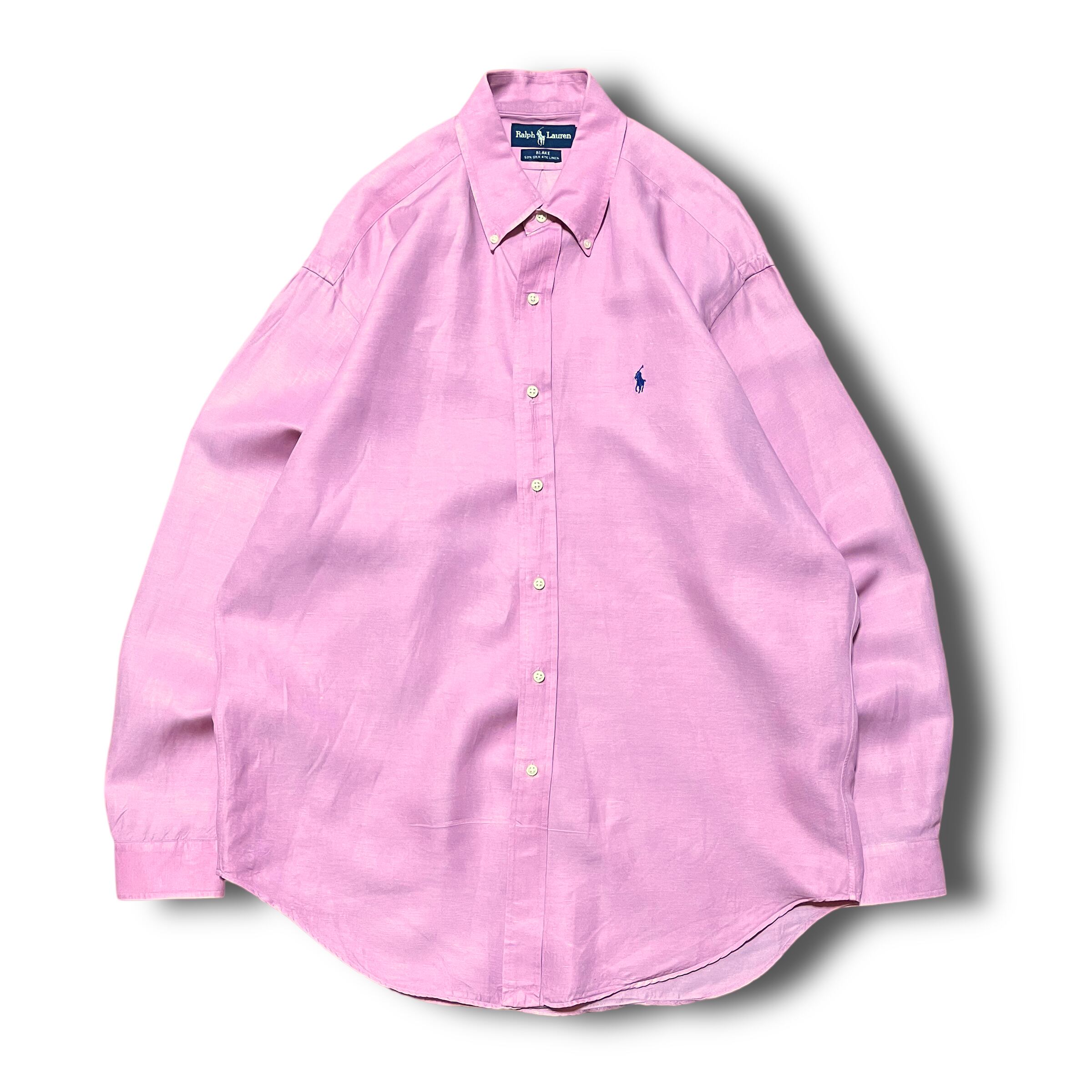 【Ralph Lauren】1990's シルクリネンボタンダウンシャツ ピンク