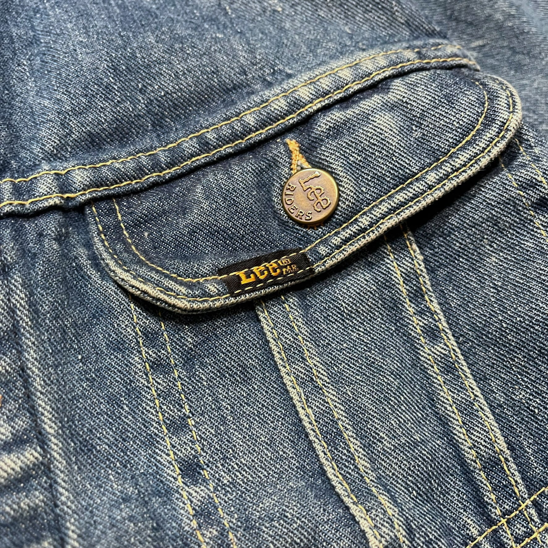 【CONDITION】使用感、スレ、色落ち、ワッペン跡、背面ボタン1つ欠損、全体に細かなシミなどがございます。