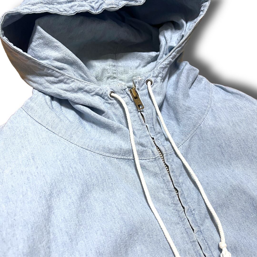 珍しい薄手のシャンブレー生地のパーカーでシャツ感覚で着用できるアイテム
