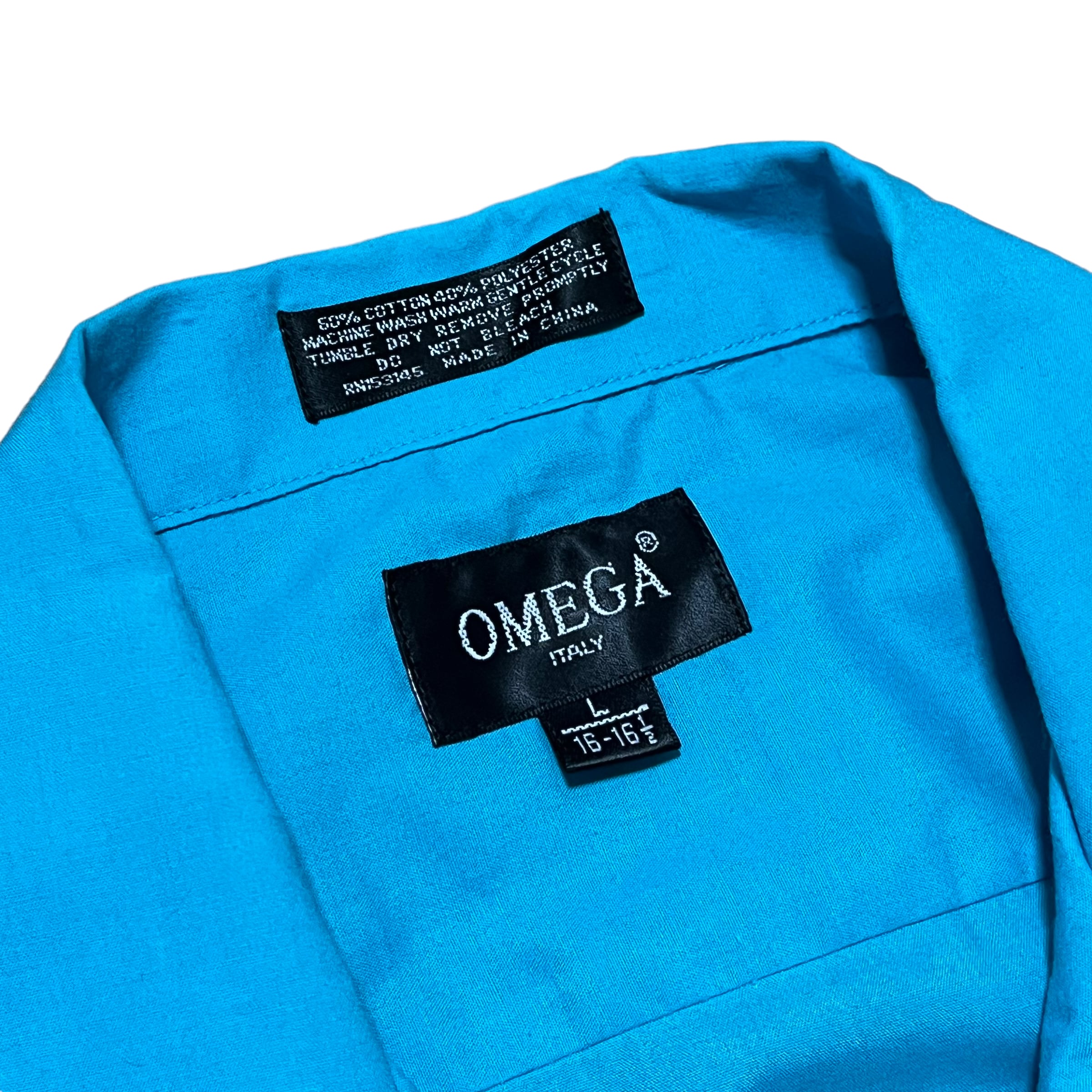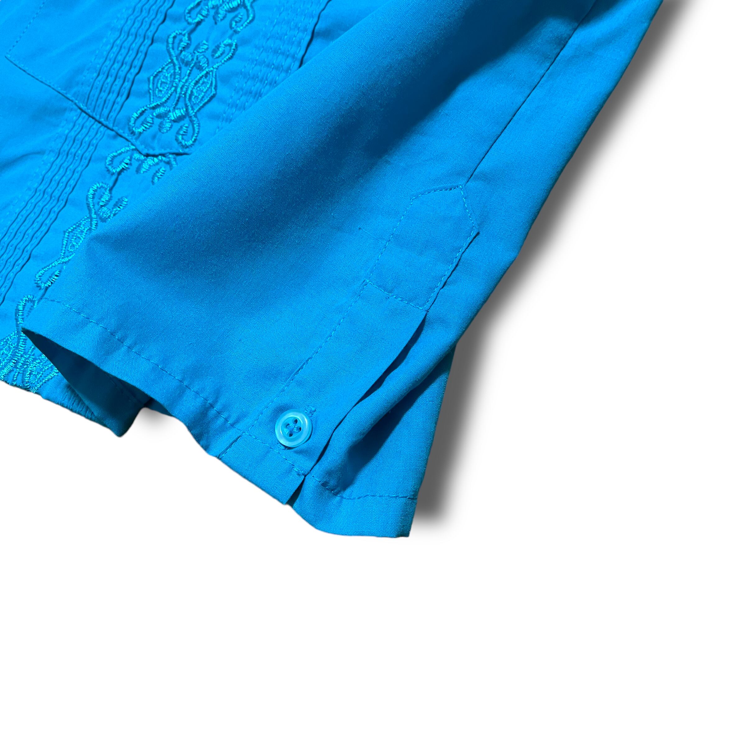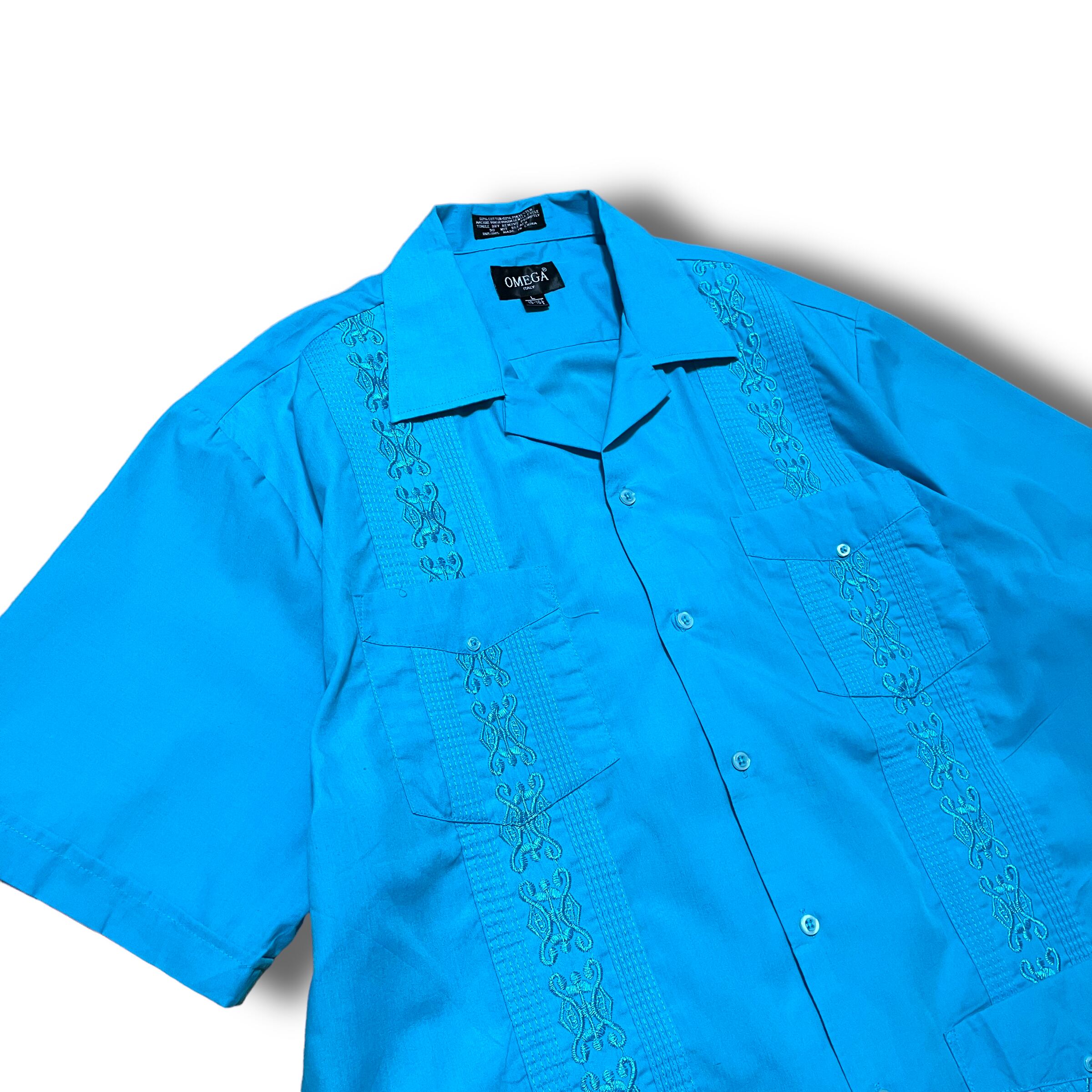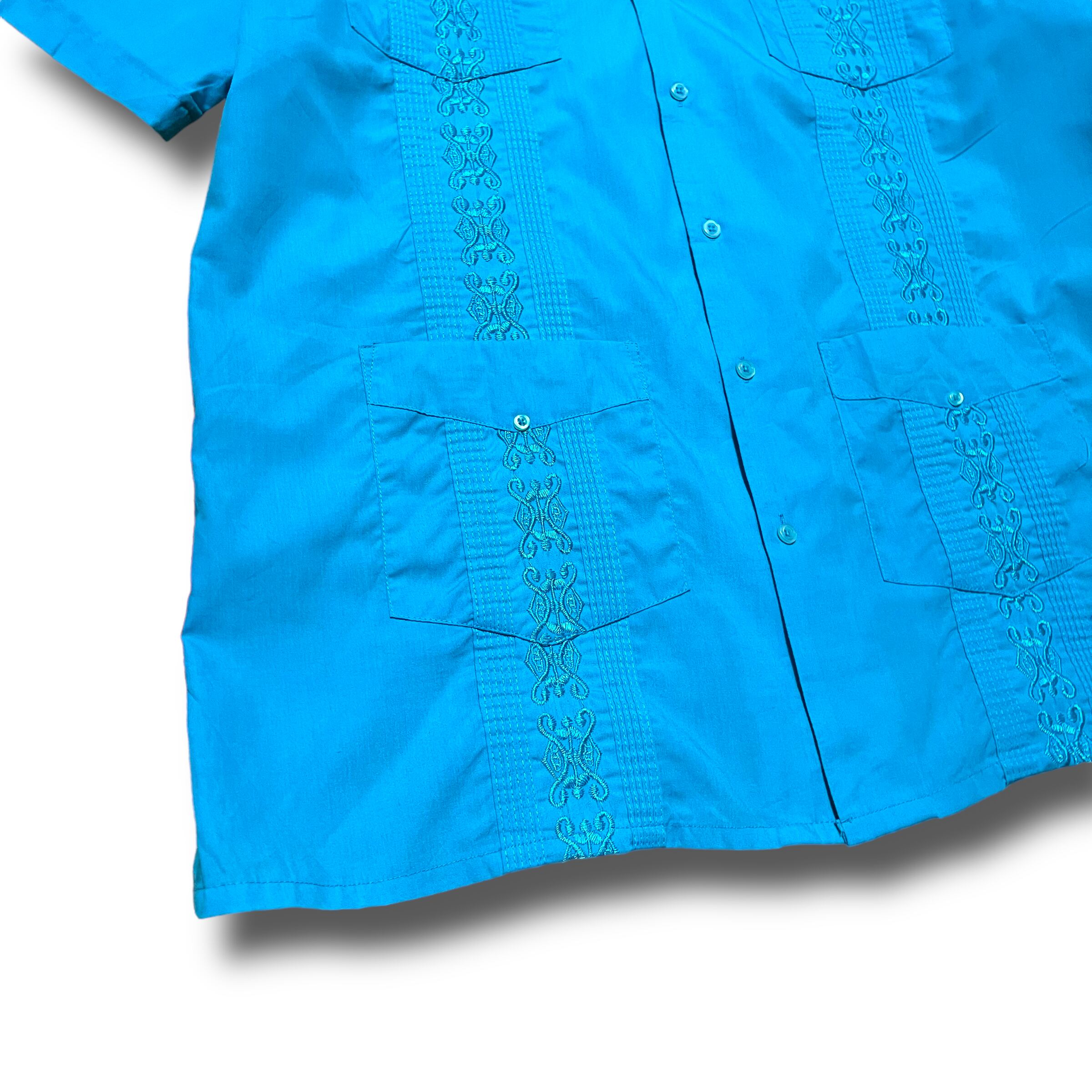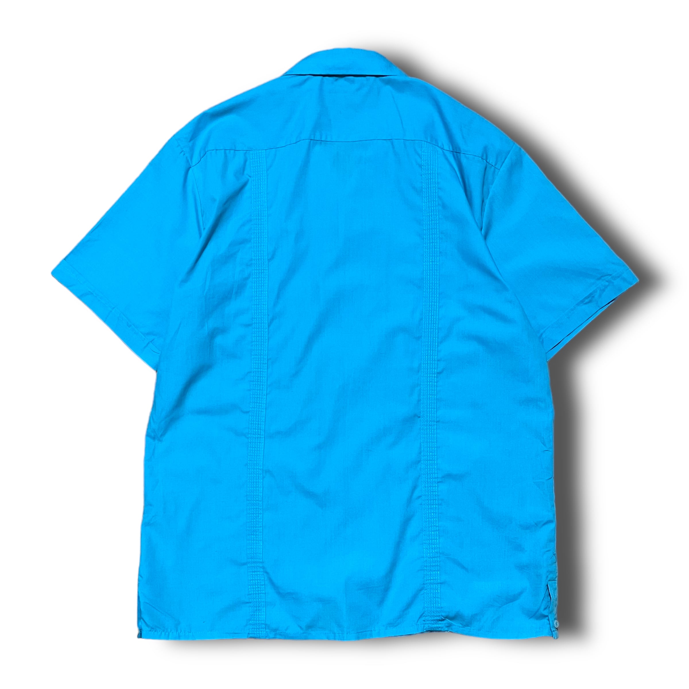 発色の良いターコイズブルーでキューバシャツでは珍しいカラーリング