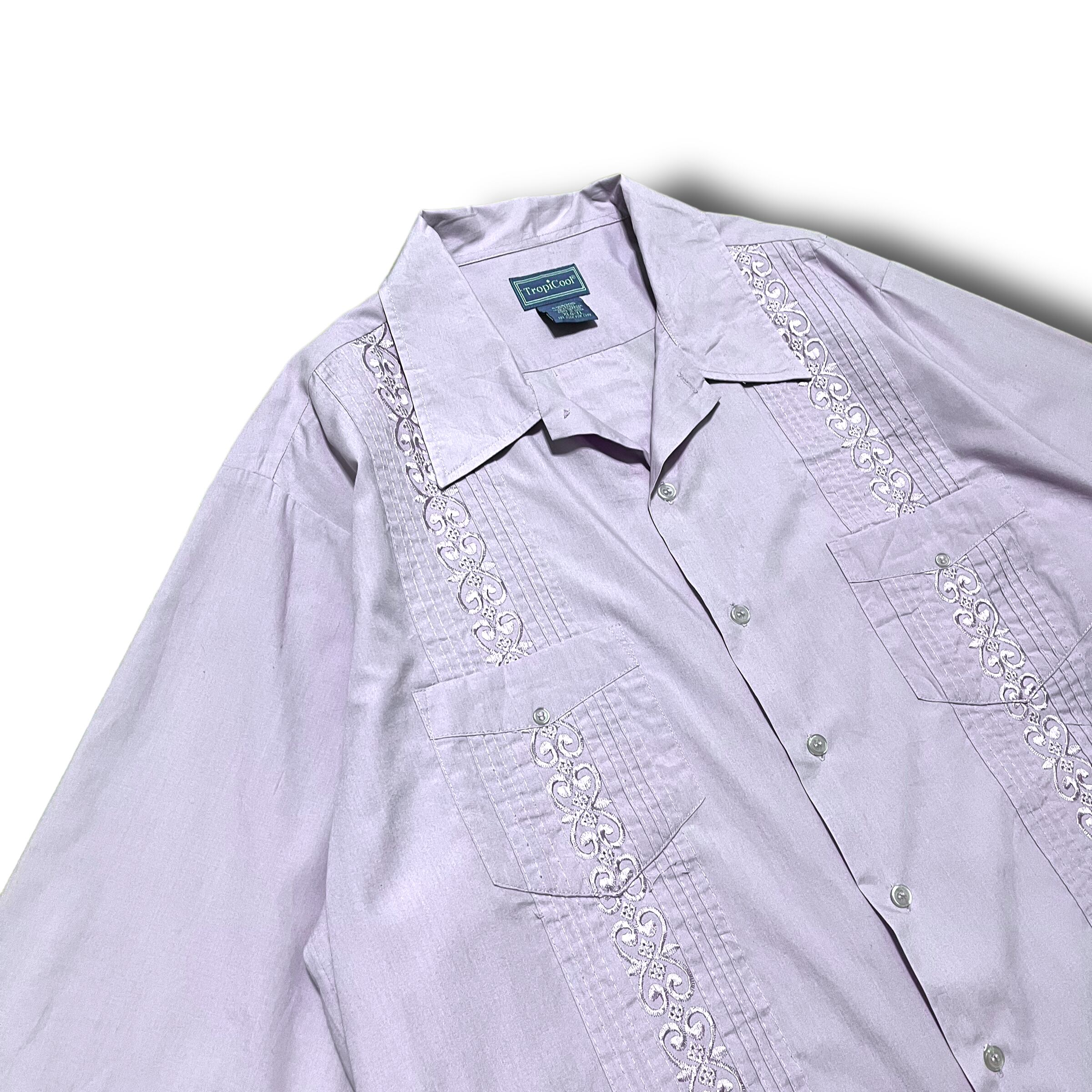 春夏の定番のキューバシャツですがラベンダーカラーだと柔らかい雰囲気となっておらまた違った雰囲気が楽しめそうな1枚です。