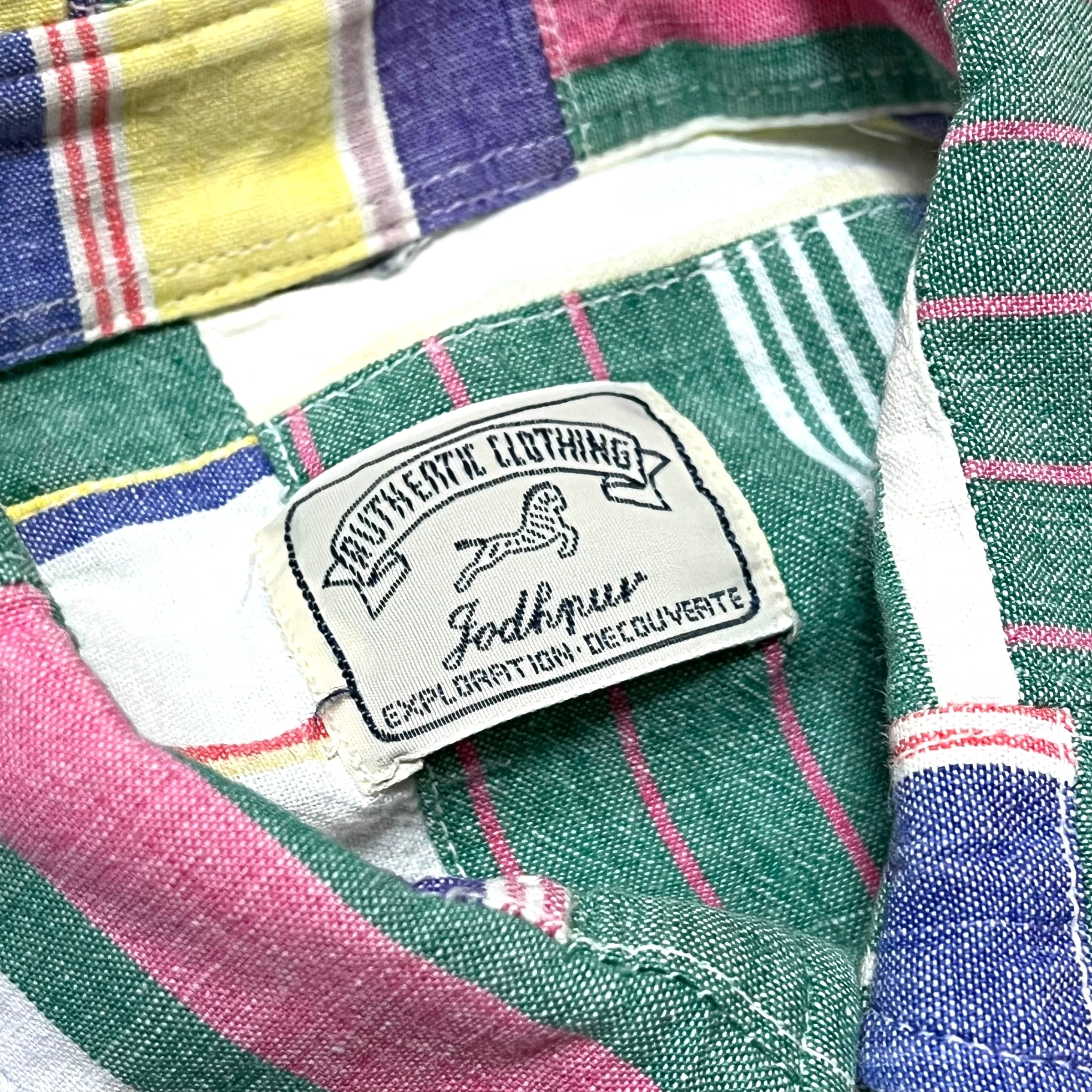 様々なストライプを組み合わせて作られたパッチワークで一点物感溢れる1枚