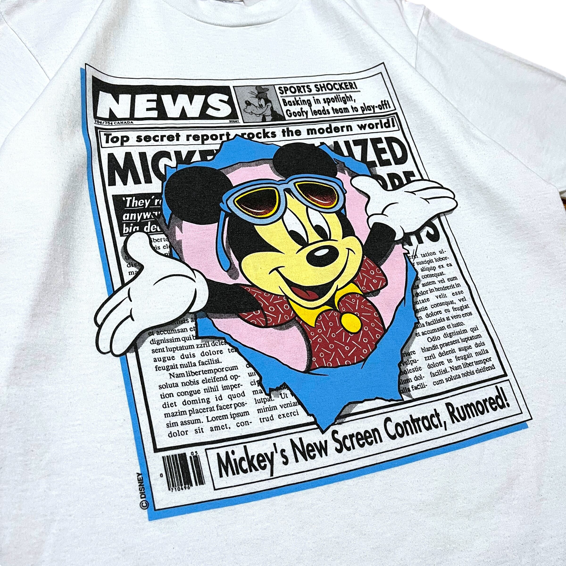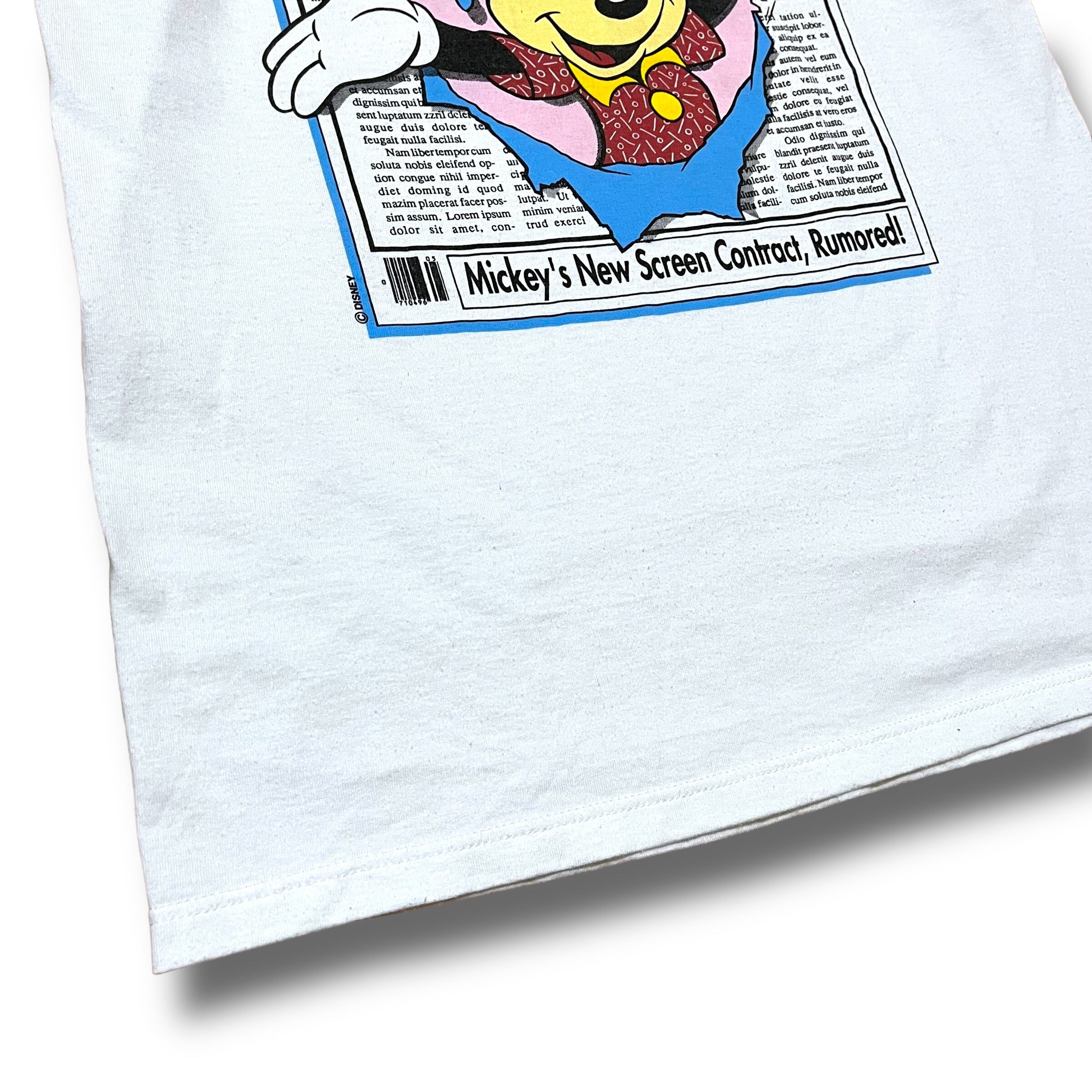ニュースペーパーからミッキーが飛び出たポップな雰囲気のTシャツ