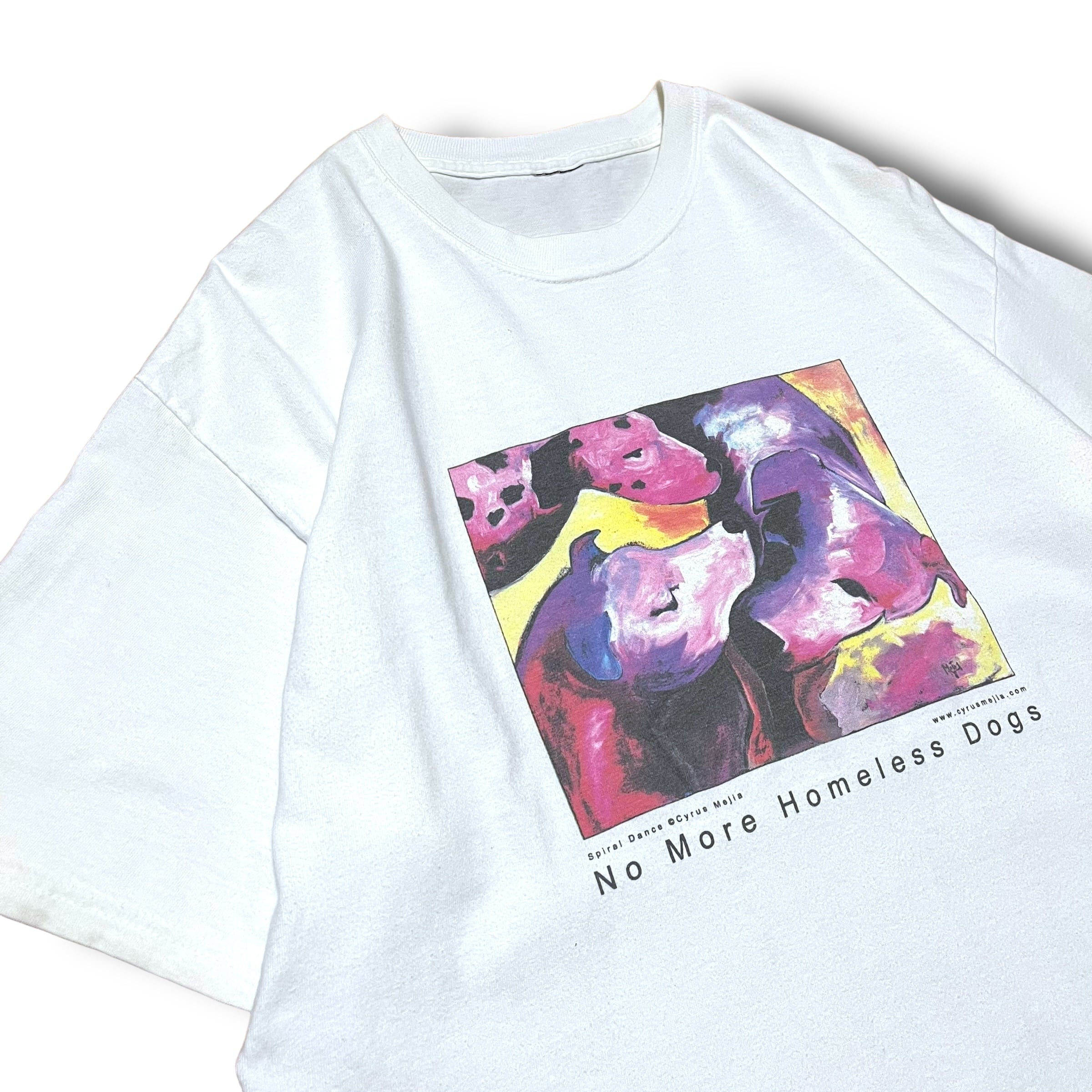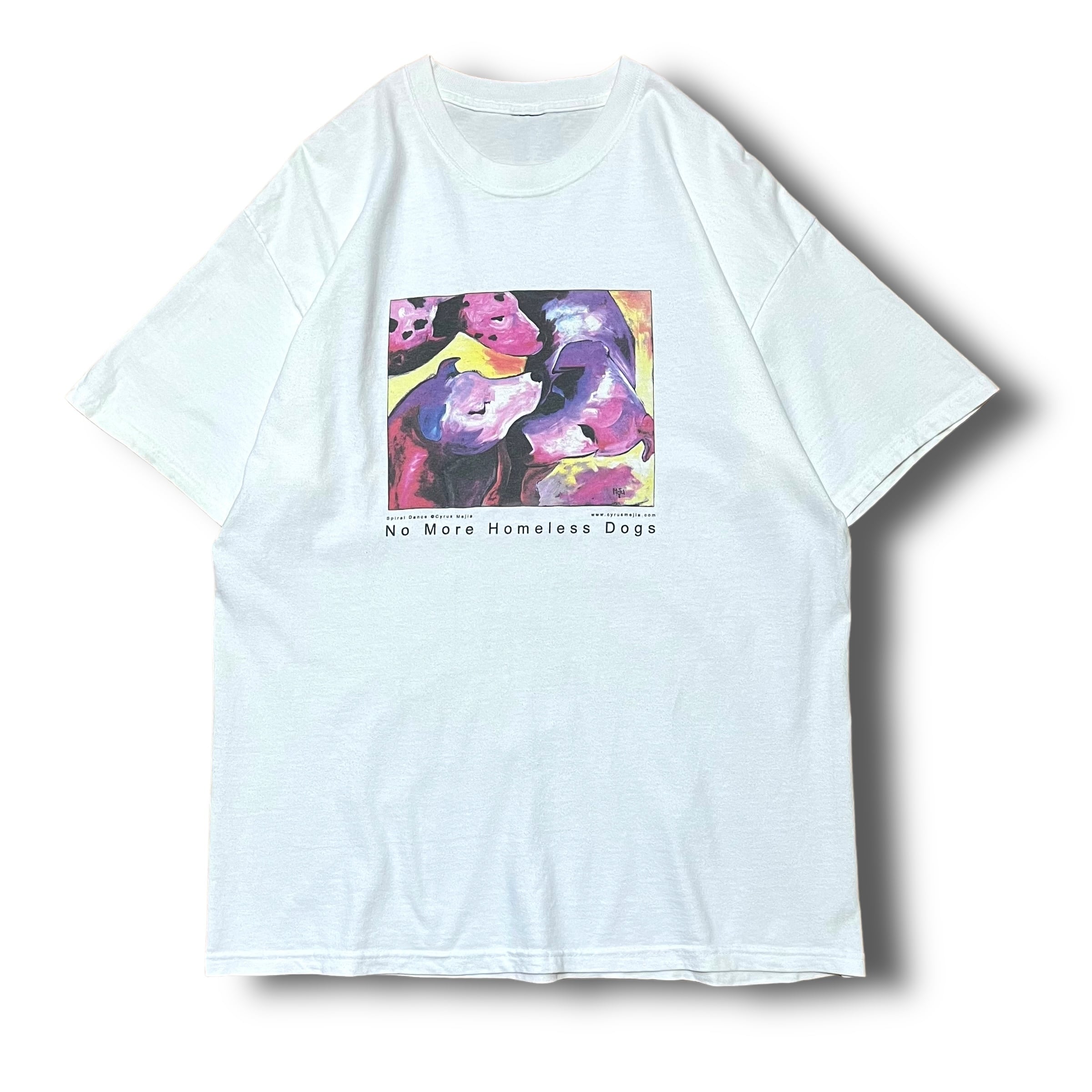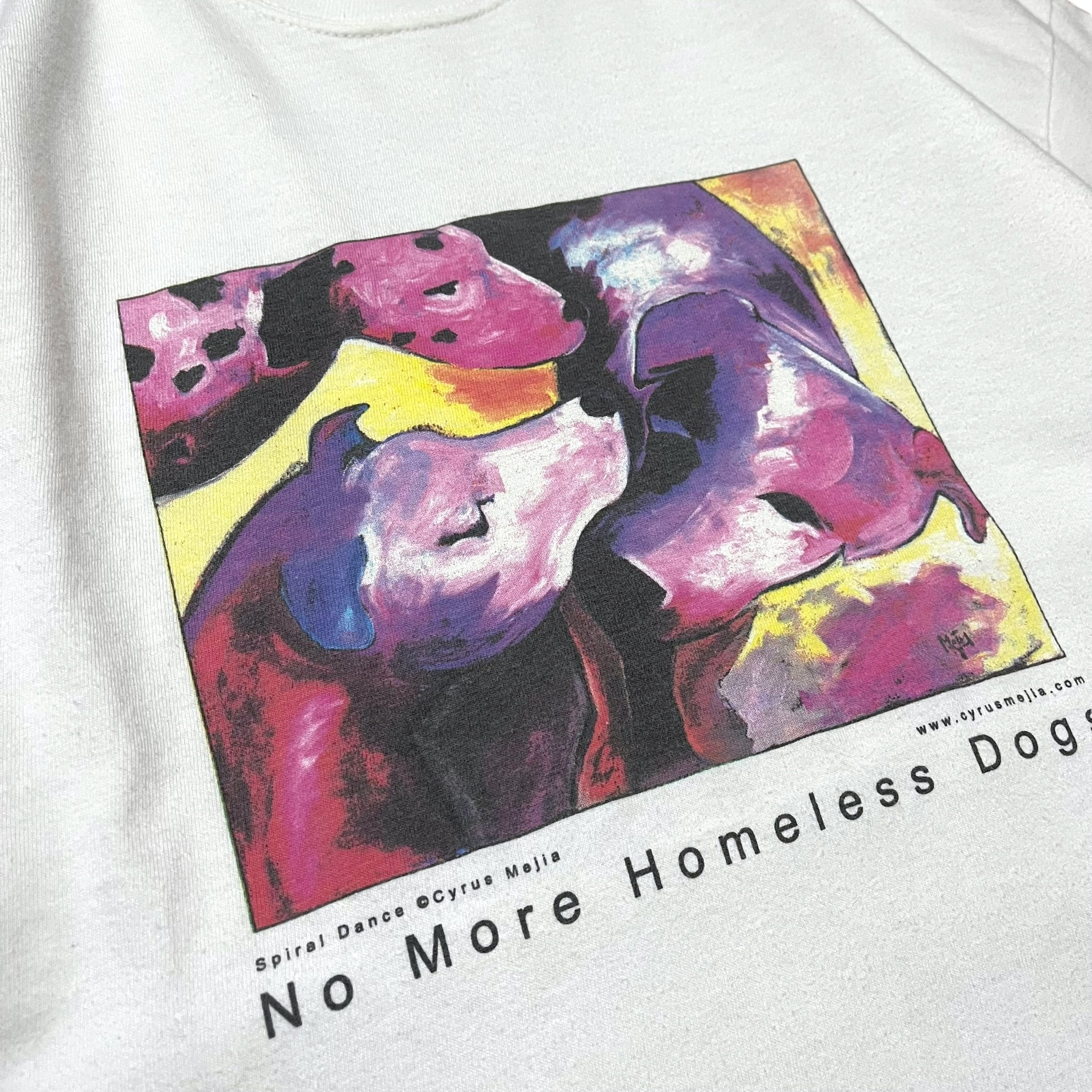 "No More Homelees Dogs"というメッセージと共に描かれたアート感のある犬のイラストがとても魅力的です。