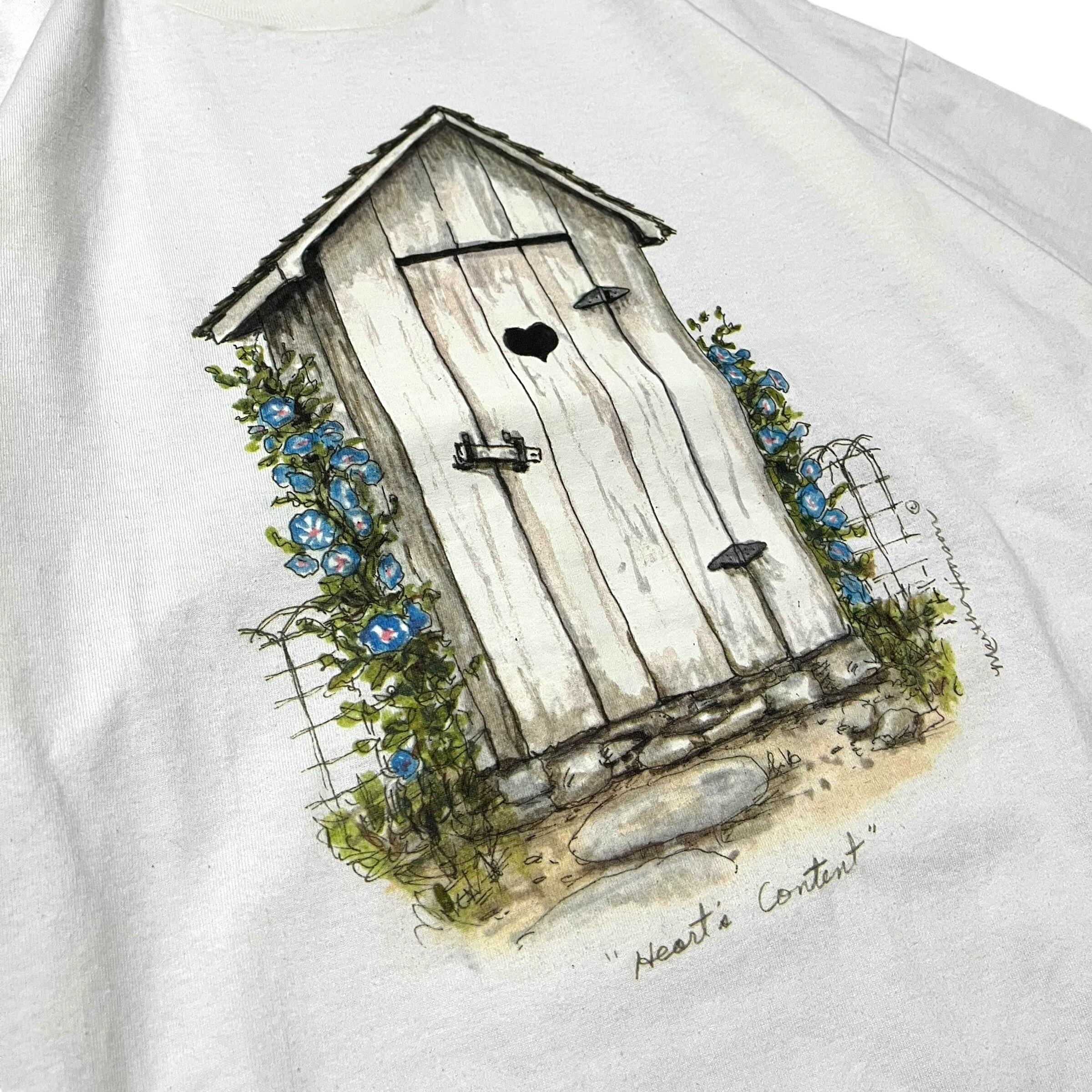 【COMMENT】不思議な雰囲気漂う小屋のプリントTシャツです。