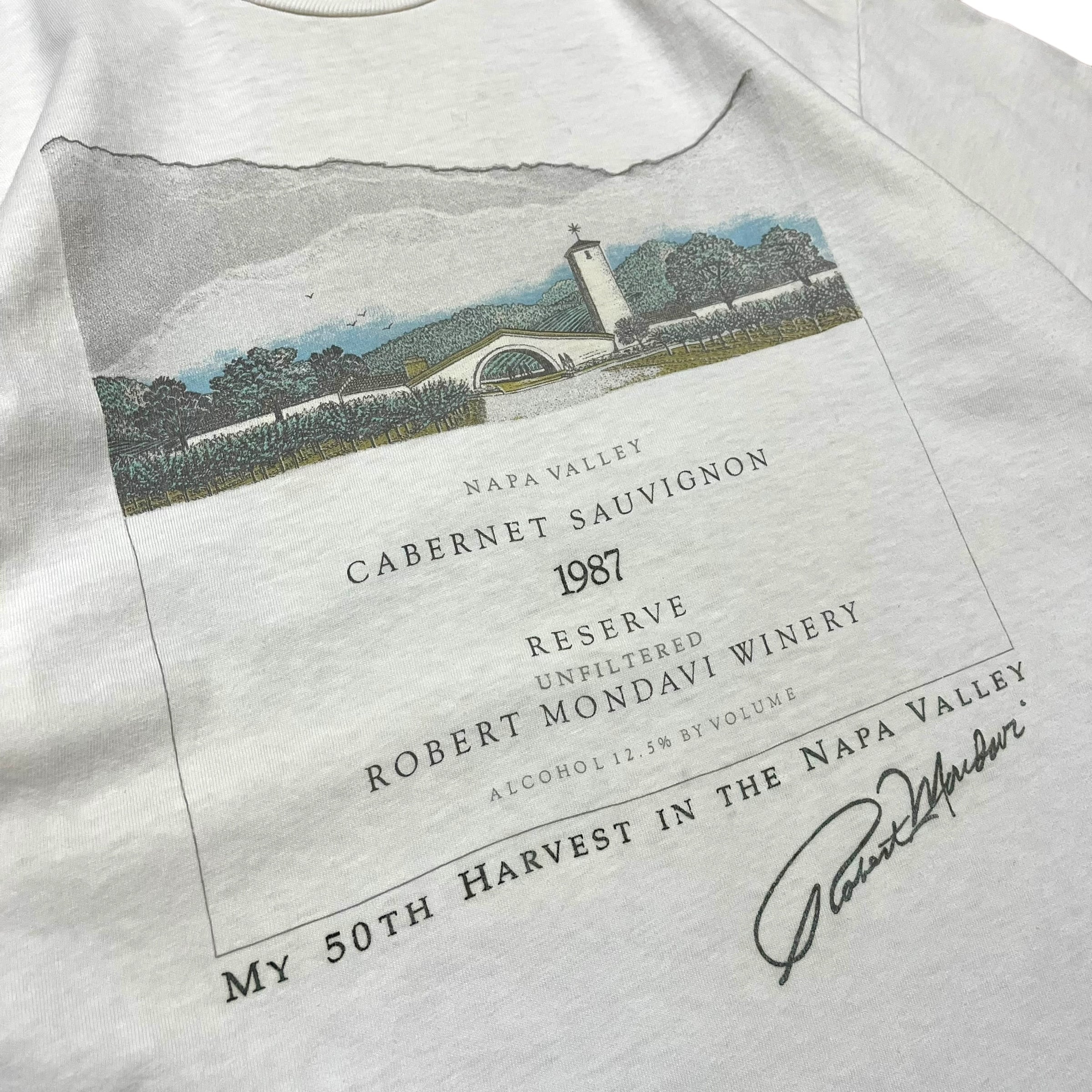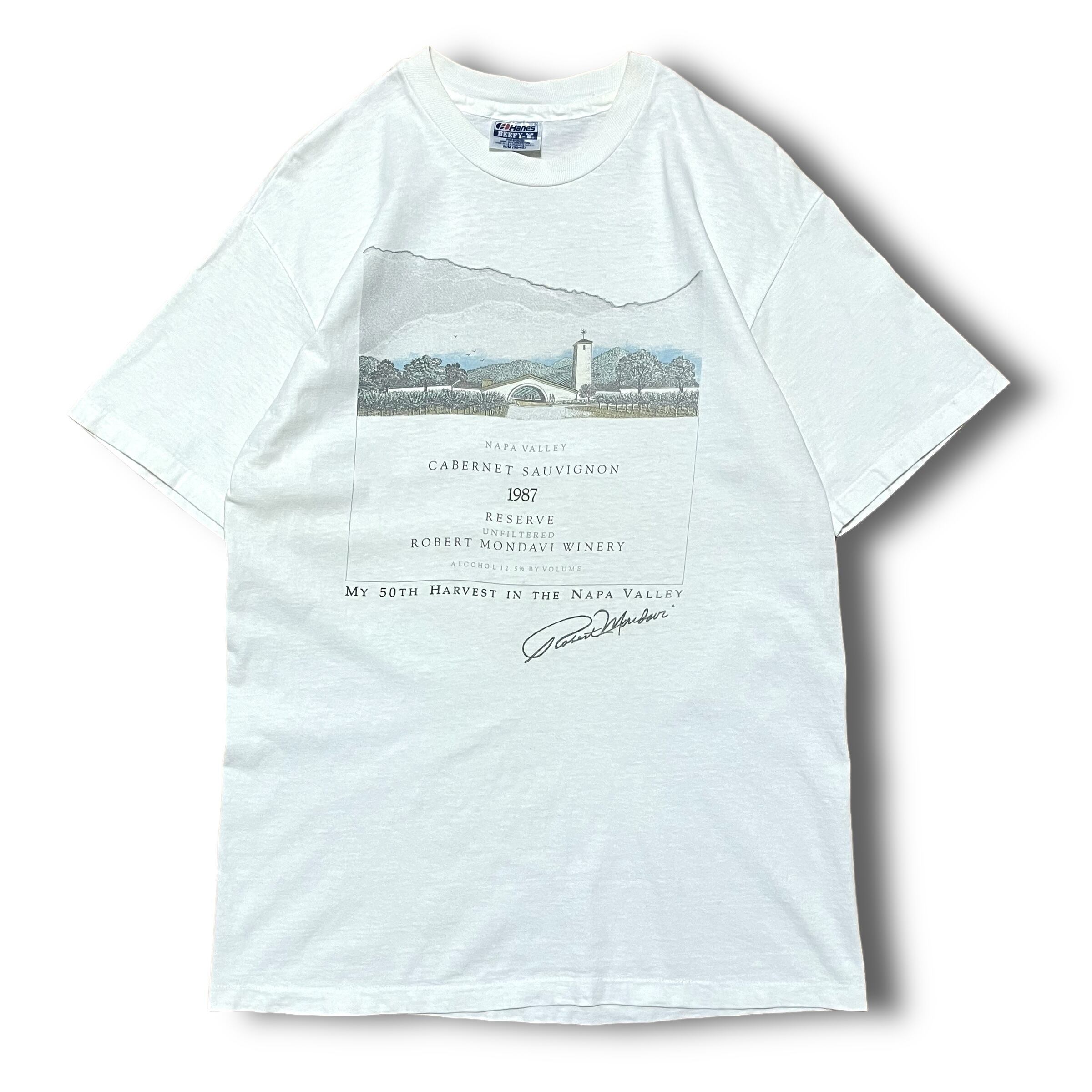 ワイナリーのプリントとなっており雰囲気のある風景のプリントに上品なフォントの英文字が魅力です。